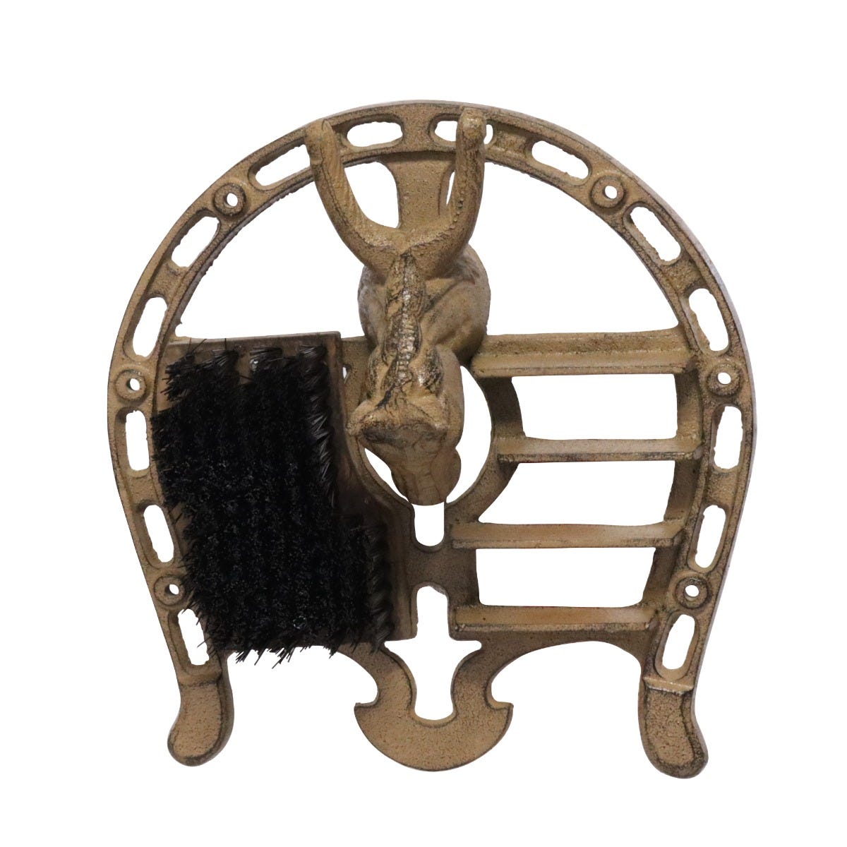 Cast Iron Horse Shoe Boot Holder Scraper & Brush