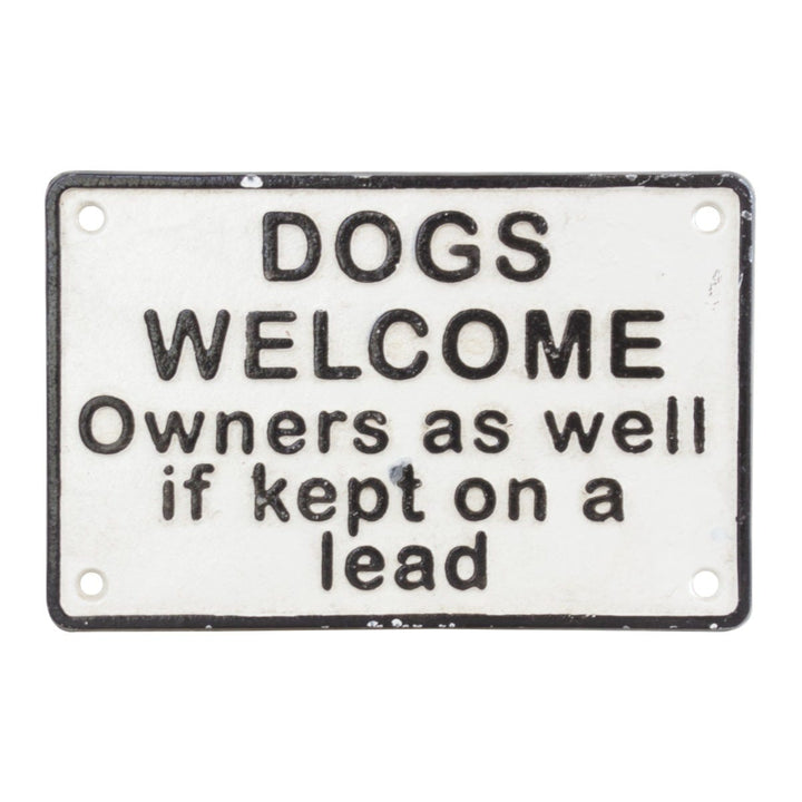 Dogs welcome, Owners as well if kept on a lead sign.