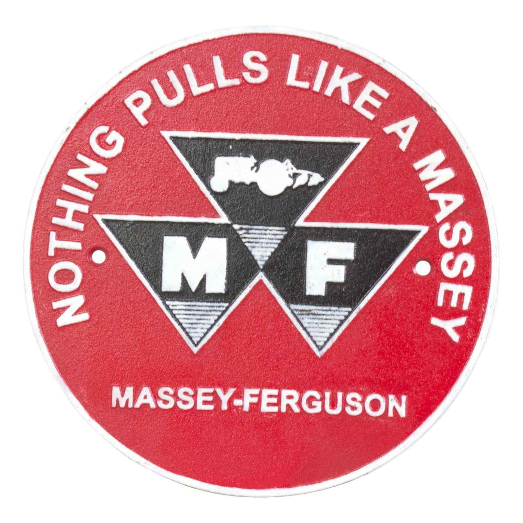 A reproduction Massey Ferguson 'Nothing pulls like a Massey Ferguson' advertising slogan metal sign/wall plaque.