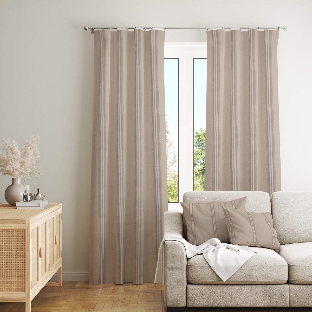 Donan Stripe Beige/White Fabric