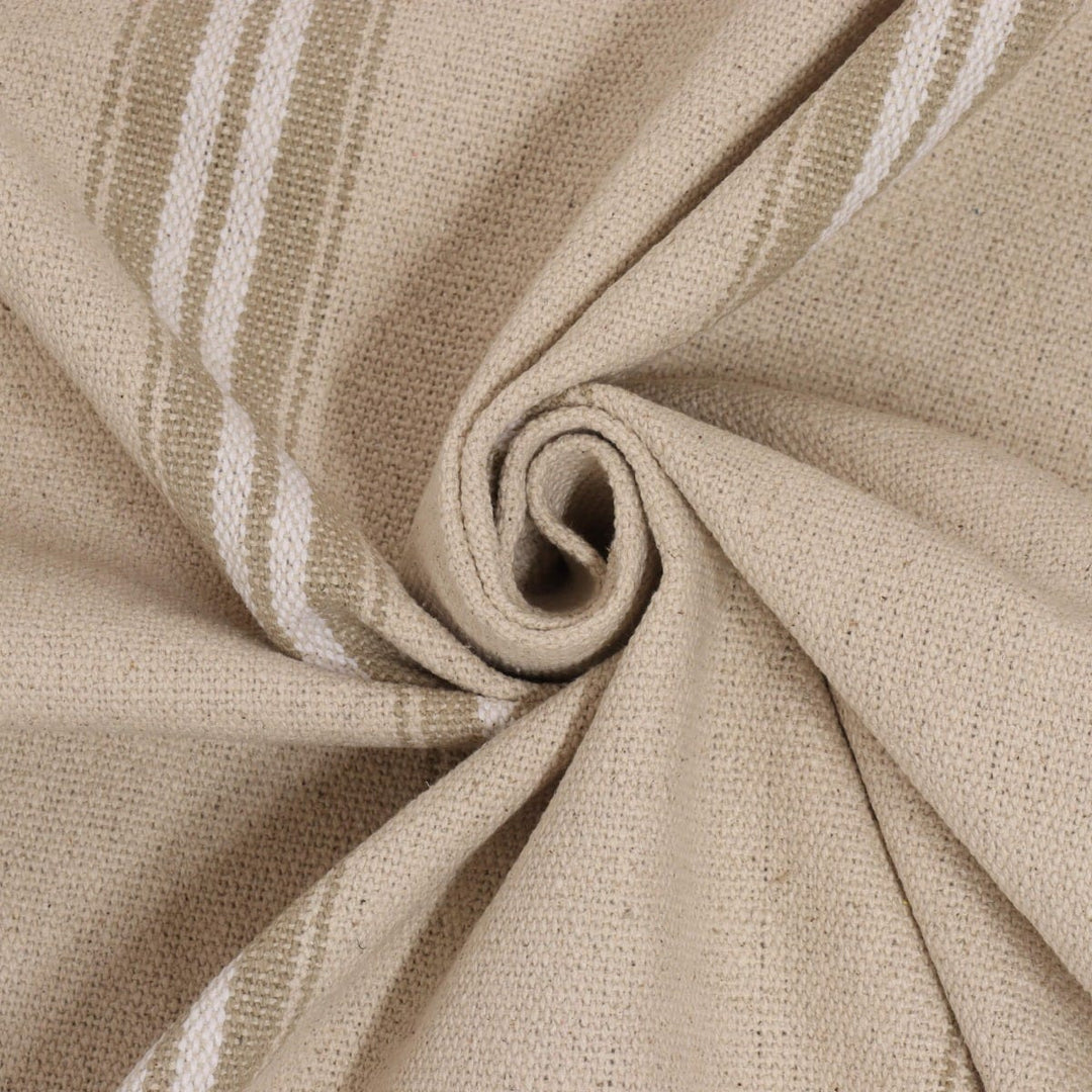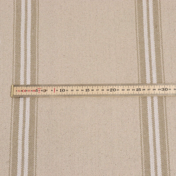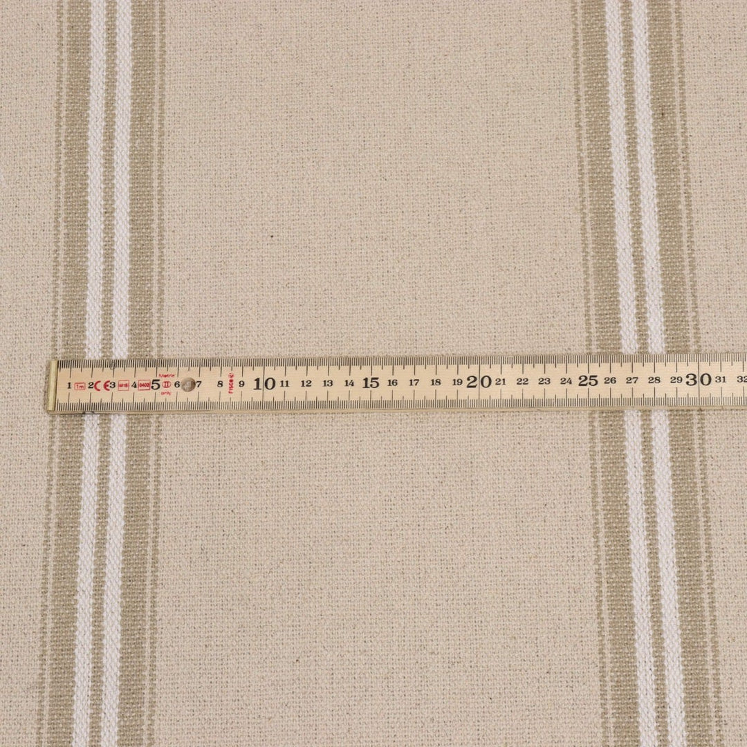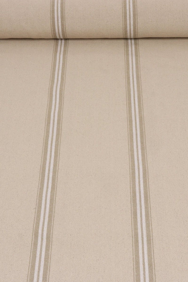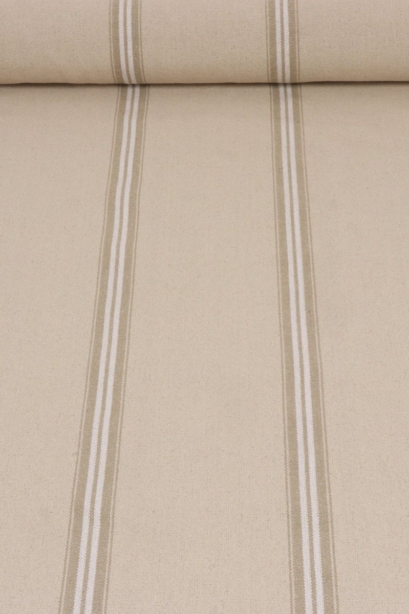 The Donan's double stripes are woven using a gorgeous French cotton cloth to create a superbly durable, grain sack style fabric. This fabric works particularly well on upholstery but can also be used for curtains and cushions.