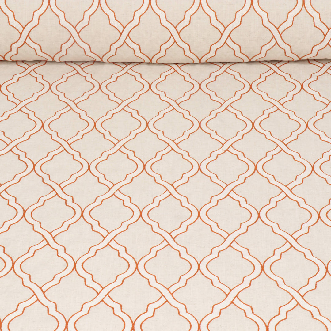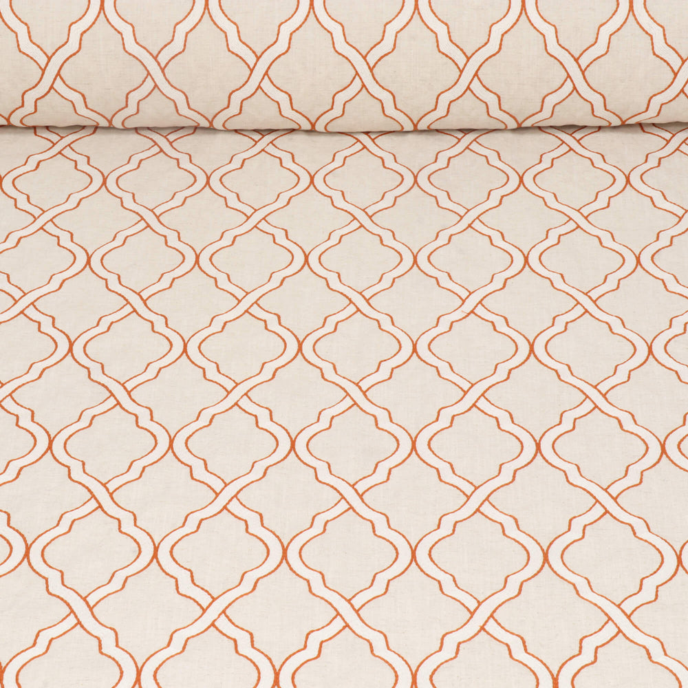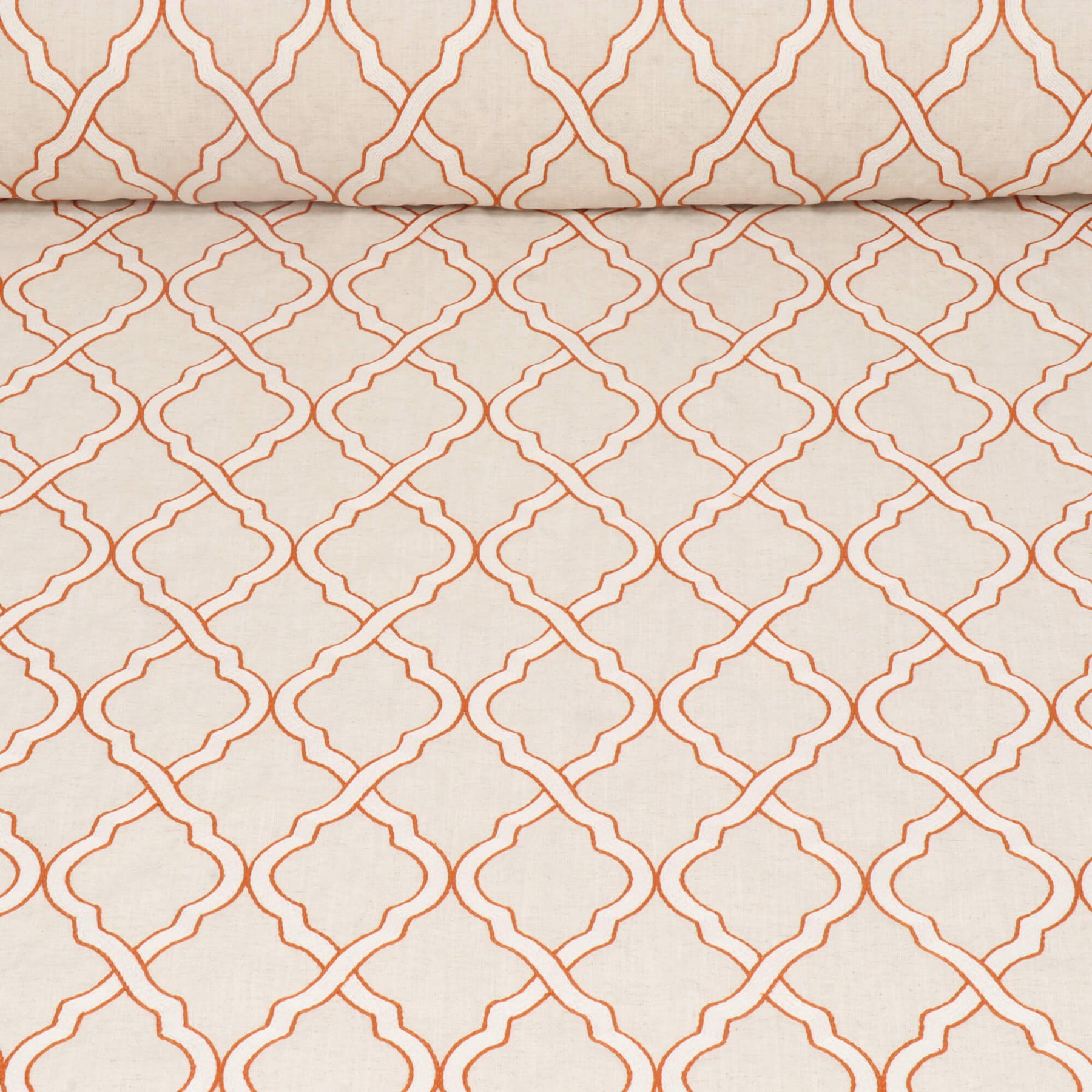 Gala features interlocking ogee shapes, outlined with double lines that add a sense of depth and texture to the fabric. This elegant geometric motif is both timeless and versatile, making it an excellent choice for upholstery, drapery, or accent pieces in spaces that aim for a touch of understated luxury.