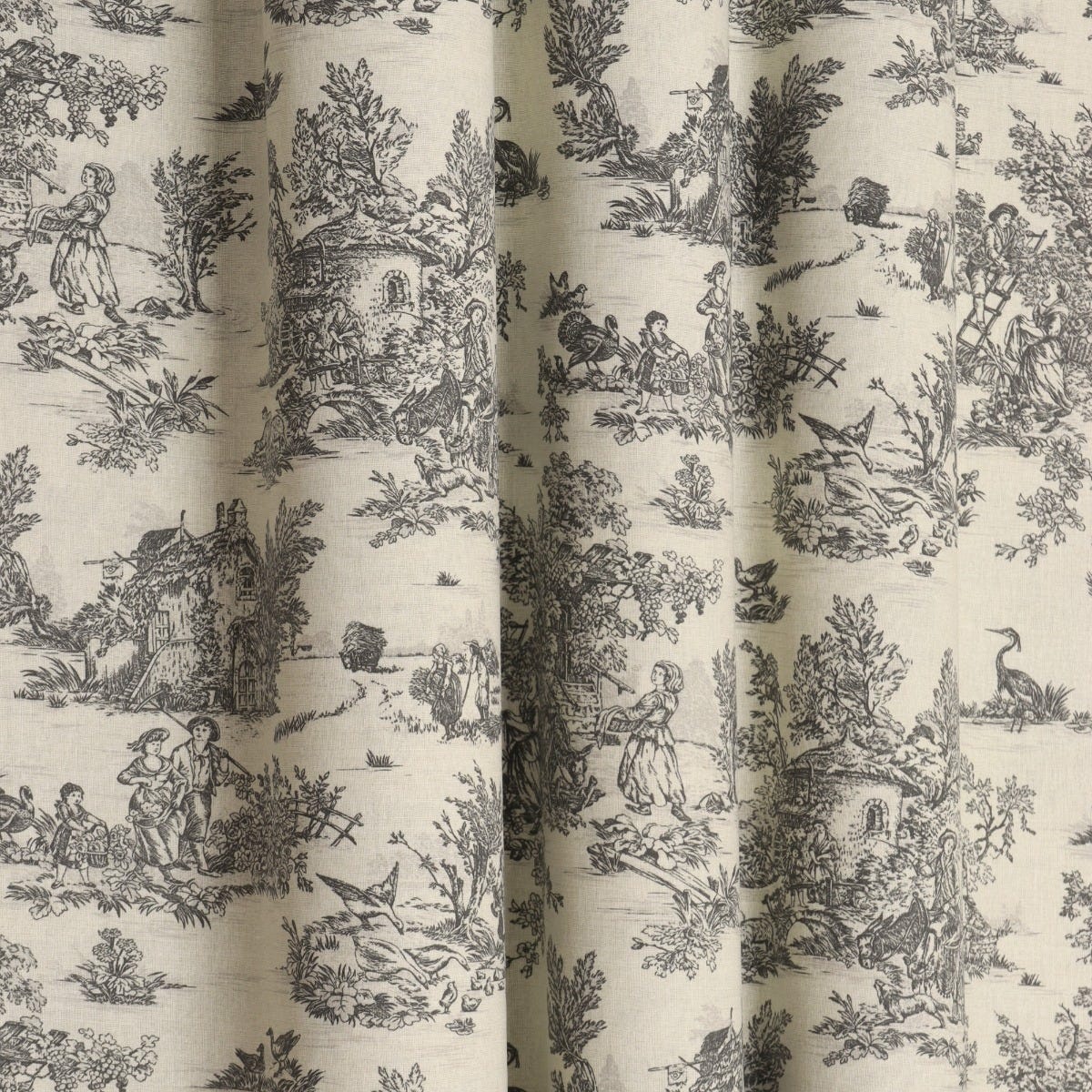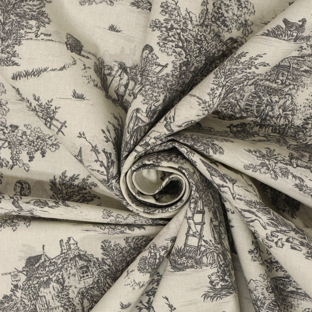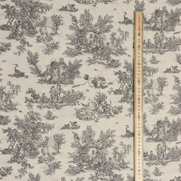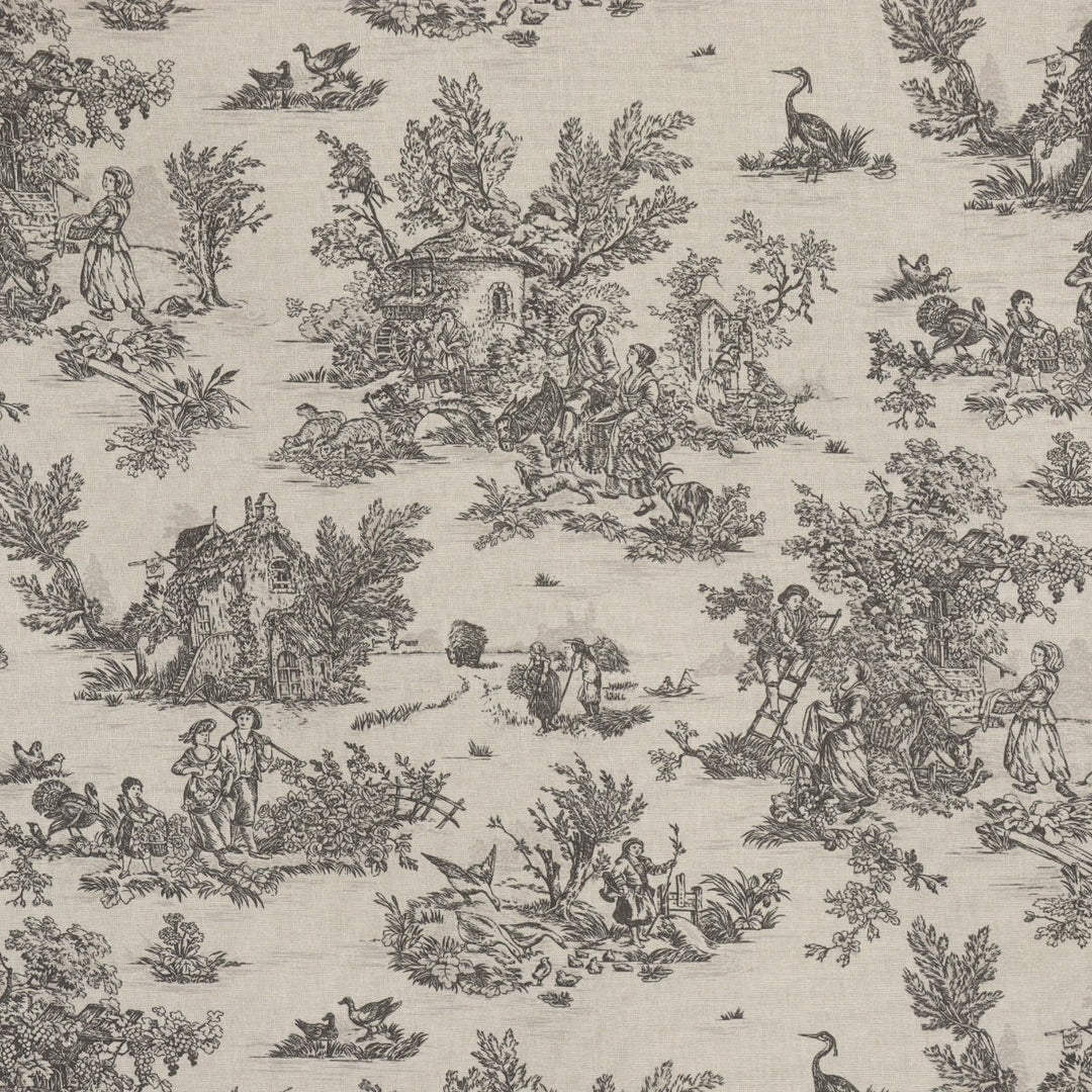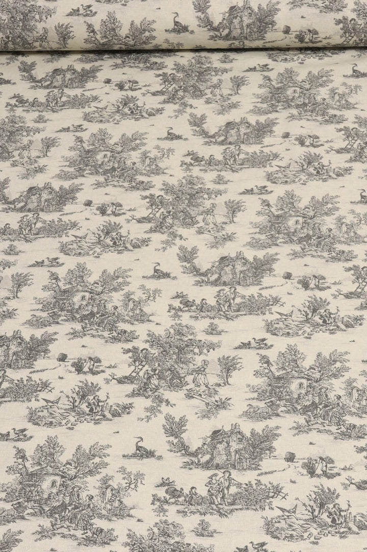Mini French Toile De Jouy Charcoal 160cm Fabric