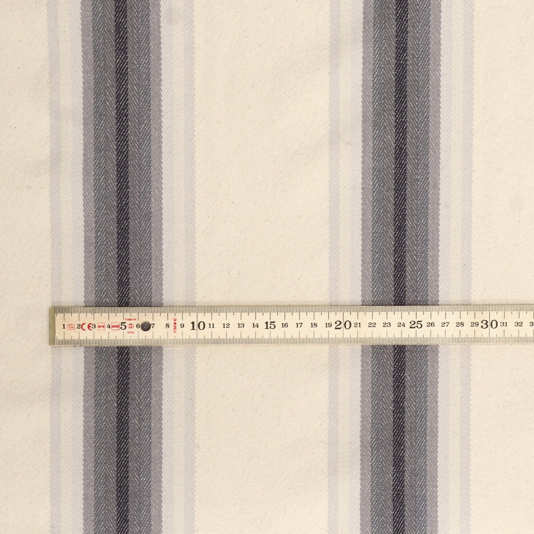 Nevada Stripe fabric features a rustic, earthy stripe design set against a soft, creamy background. Vertical bands of colour create a balanced, repeating pattern that feels both rustic and refined.