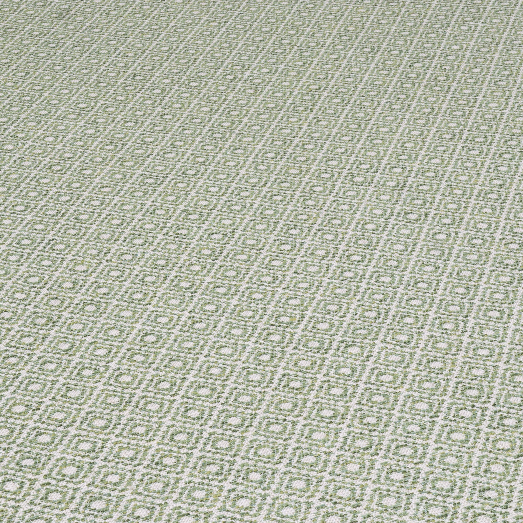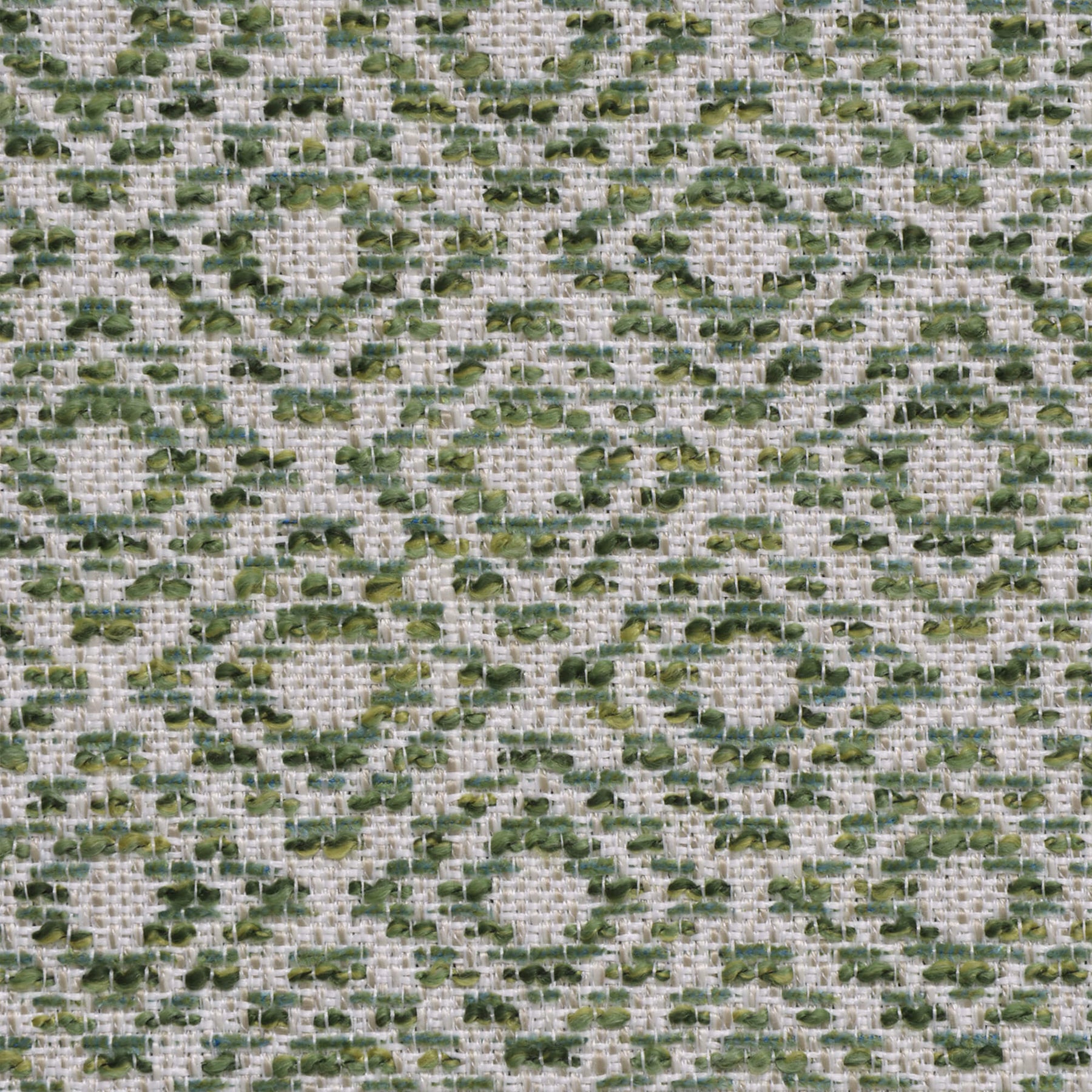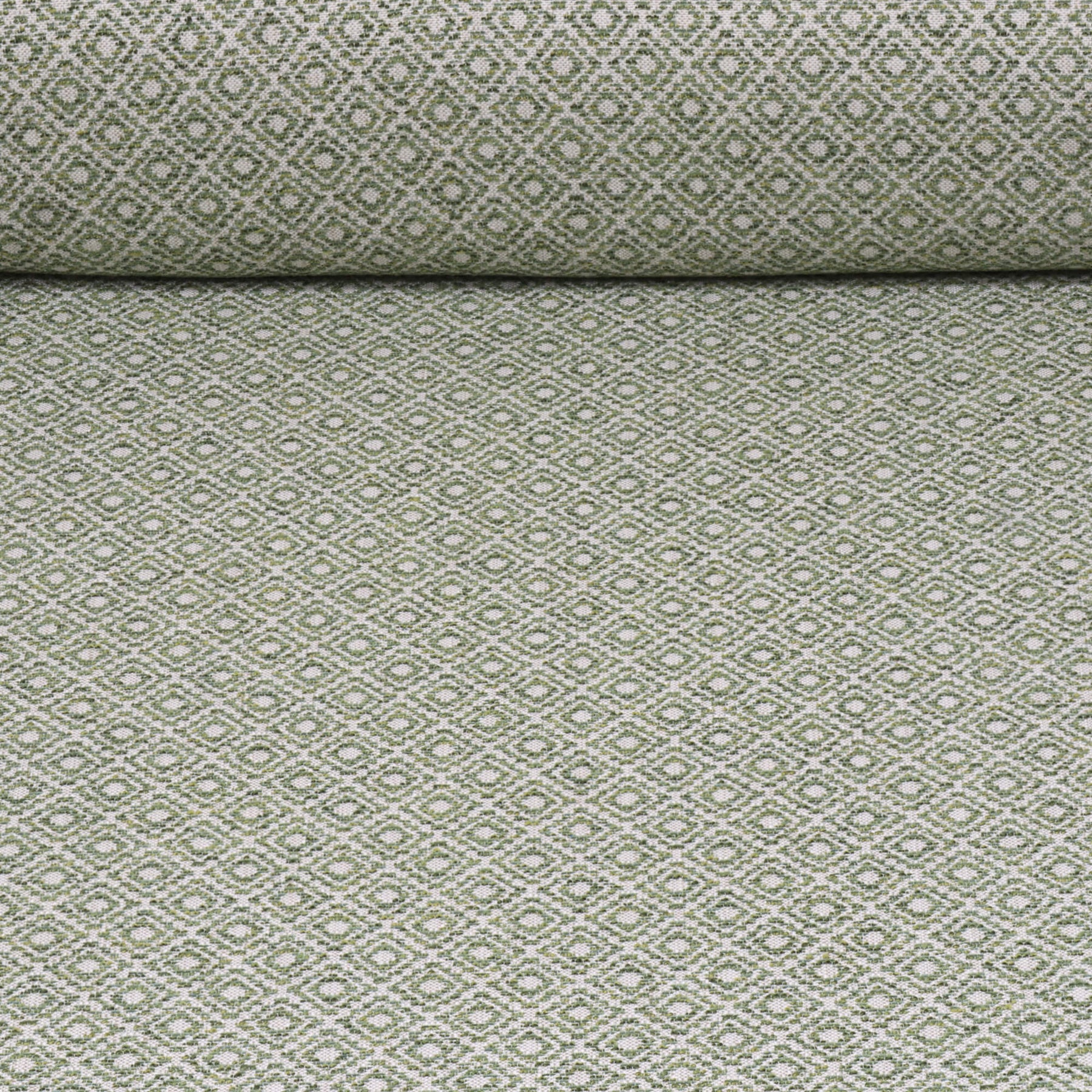Prestigious Textiles Amir Oasis is a stylish patterned upholstery fabric featuring a delicate geometric design woven in soft green tones against a natural backdrop. The repeating motif creates a subtle yet decorative texture, making it an excellent choice for both modern and traditional interiors.