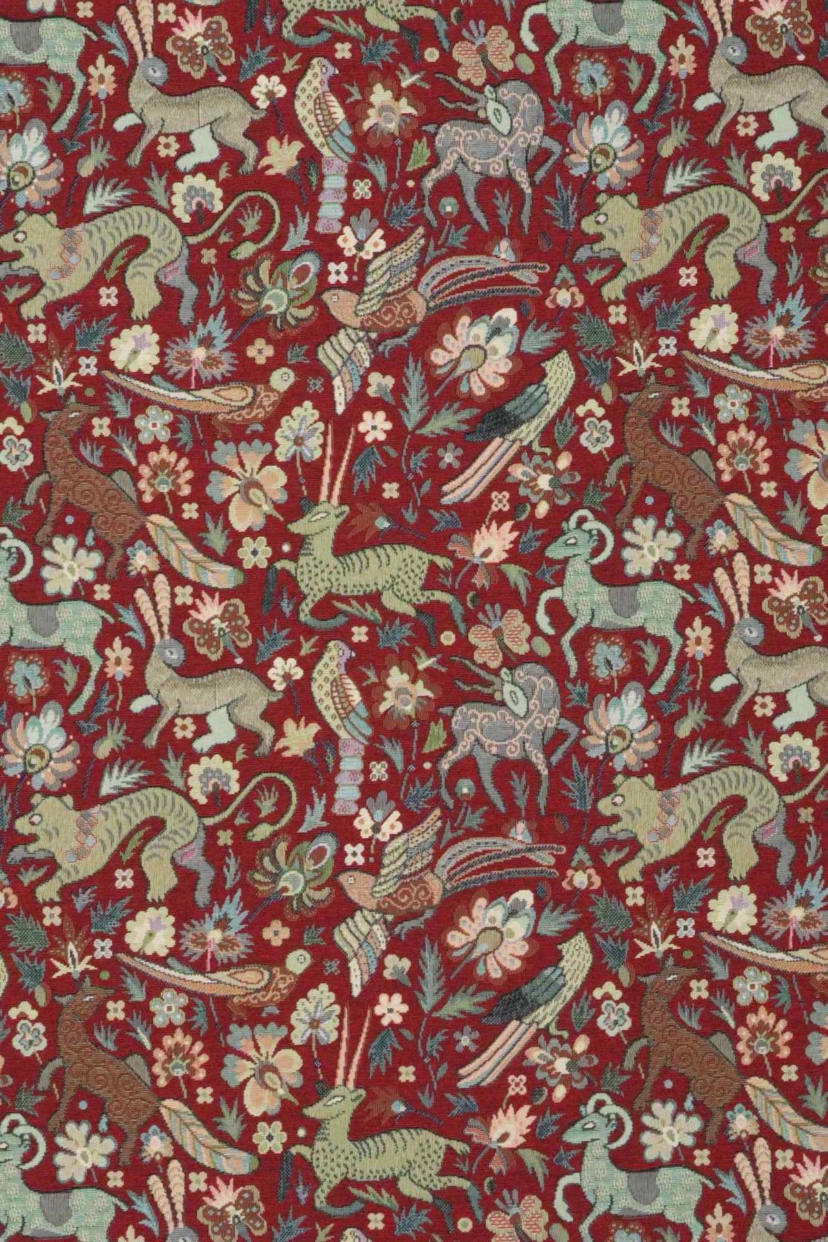 Inspired by the famous Gobelin fabrics, hand-woven tapestries once made near Paris. Tudor Forest is a stunning fabric that radiates quality and richness. Mythical like creatures of the forest play amongst a background of intricately woven flowers and trailing plants, its high quality detail and superior quality making it so beautiful you might as well hang it on the wall.