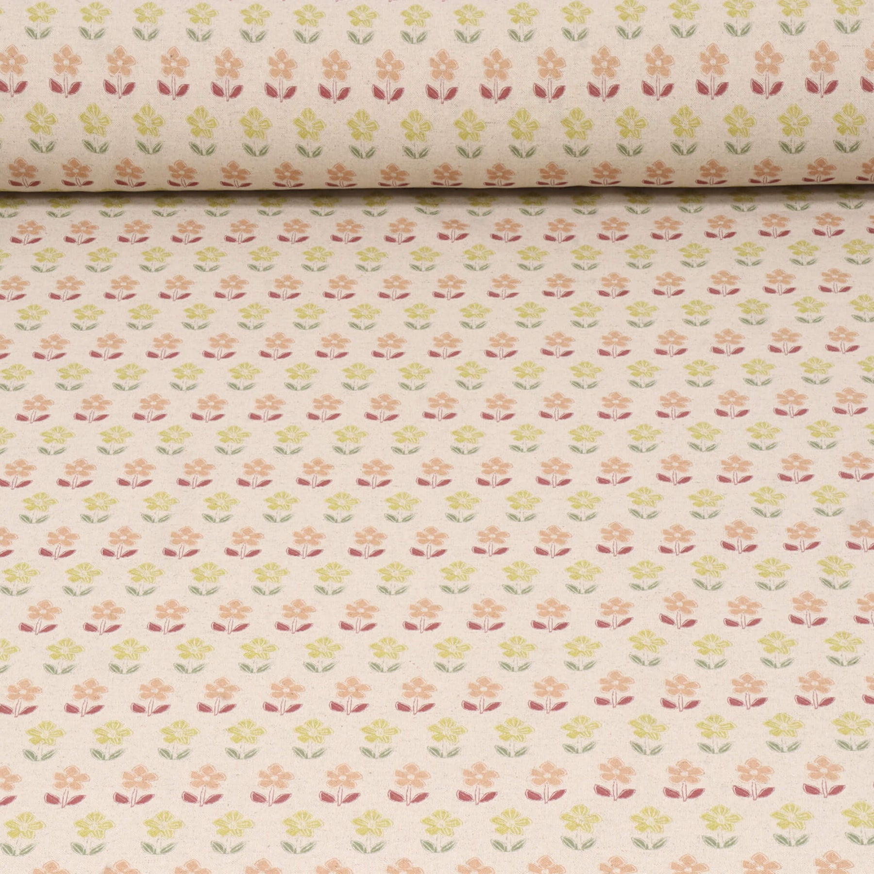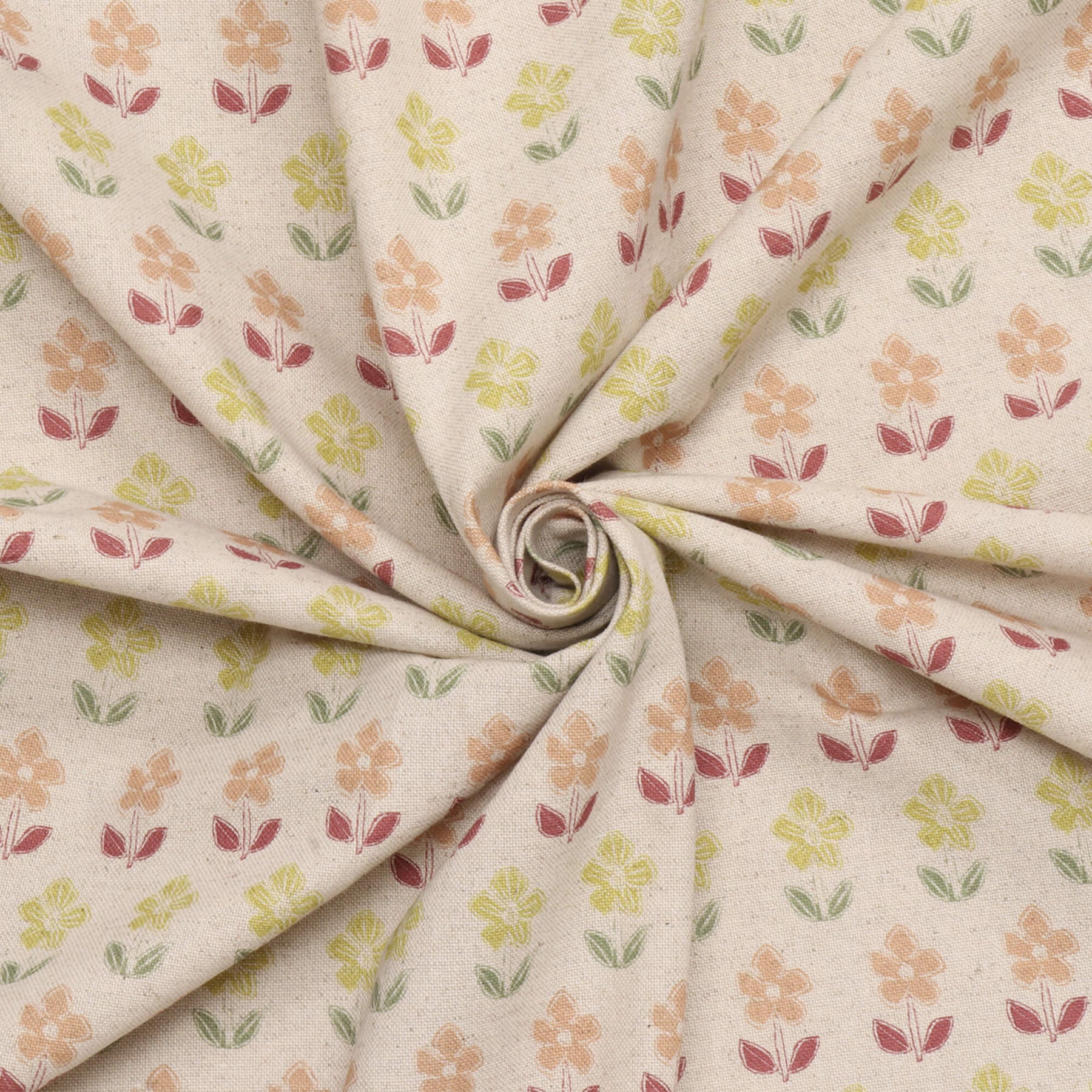 The repeating floral pattern gives it an uplifting, playful charm — ideal for country-style spaces, children’s rooms, craft projects, or anyone wanting a cheerful, easy-to-use fabric that brightens the home without overwhelming it.