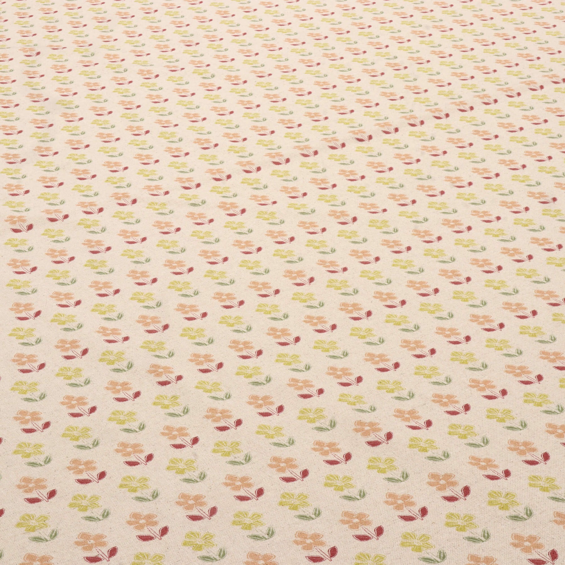 Prestigious Textiles June Raspberry is a charming printed fabric featuring a small-scale floral motif in soft raspberry pink, fresh lime, and warm red tones. Set against a natural cotton-linen ground, the design has a gentle hand-drawn look that brings a lovely touch of character and colour to any room.