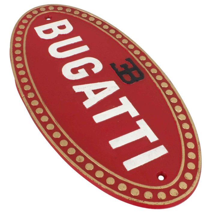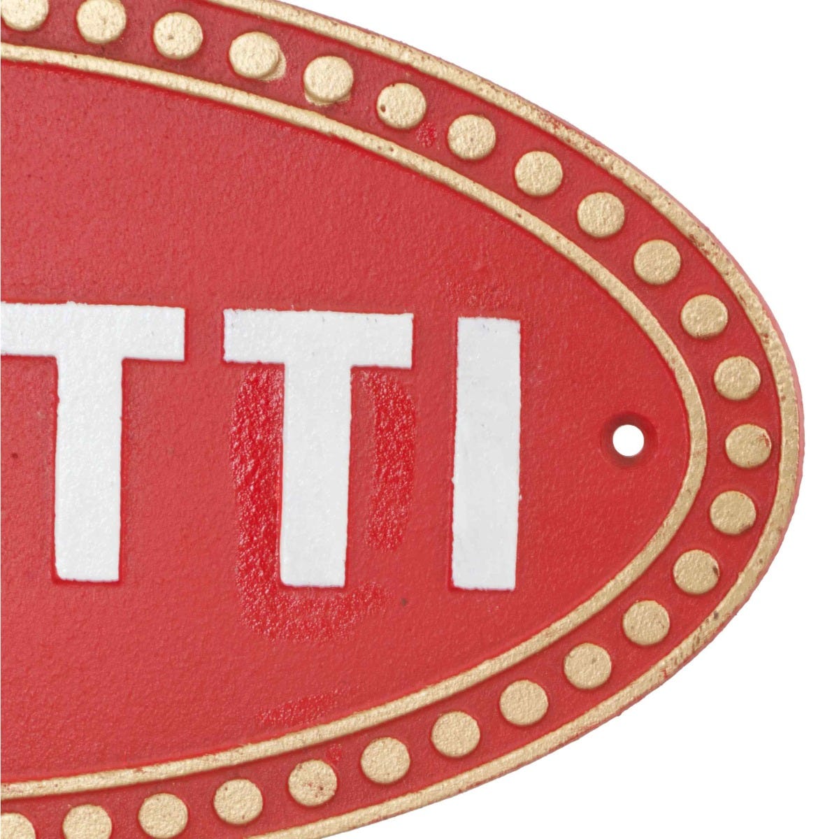 The retro style sign is made from solid cast iron and has been painted in red, white and gold colours. Each sign has been hand painted, making each plaque unique.