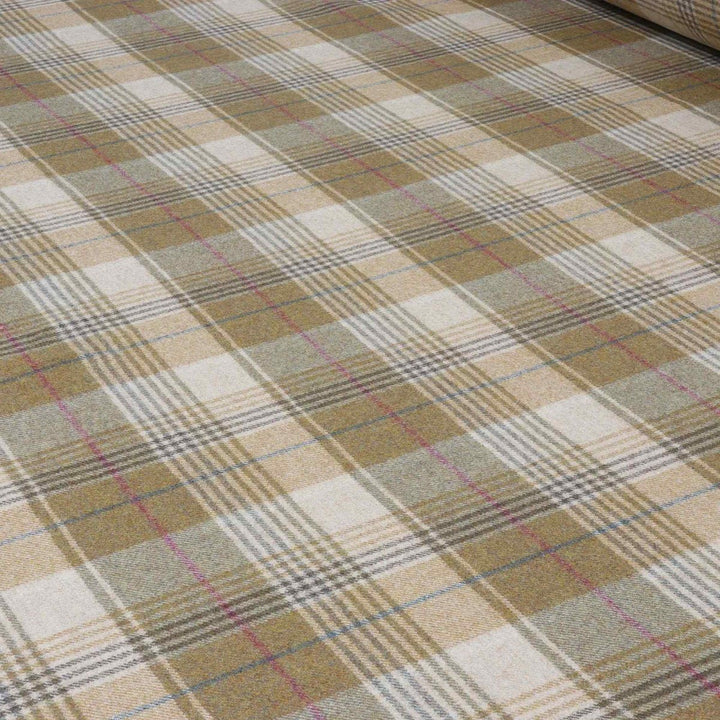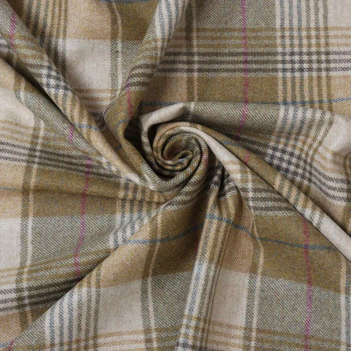 This high quality, British made wool features an intricate plaid design in warm complimentary colours.