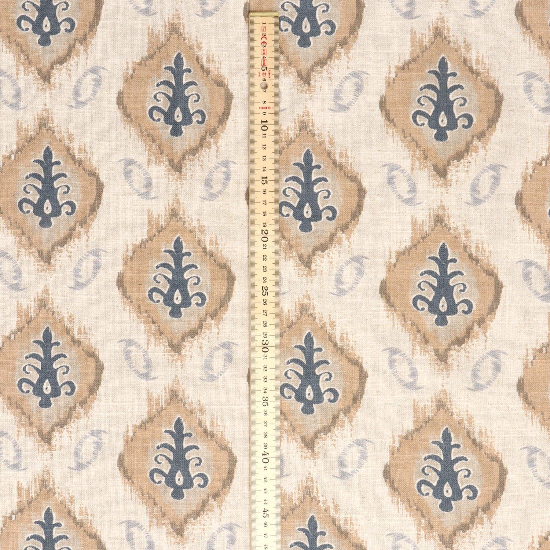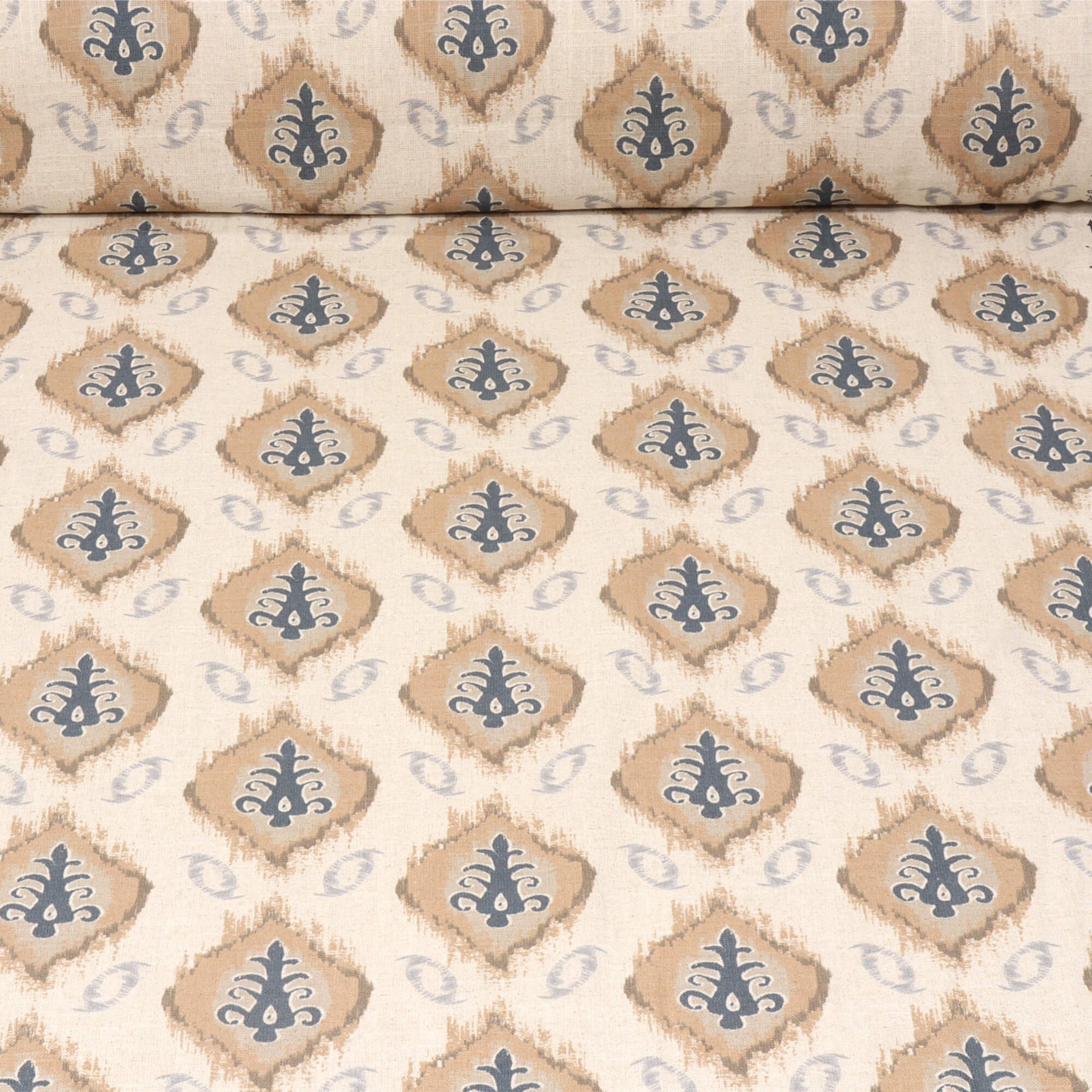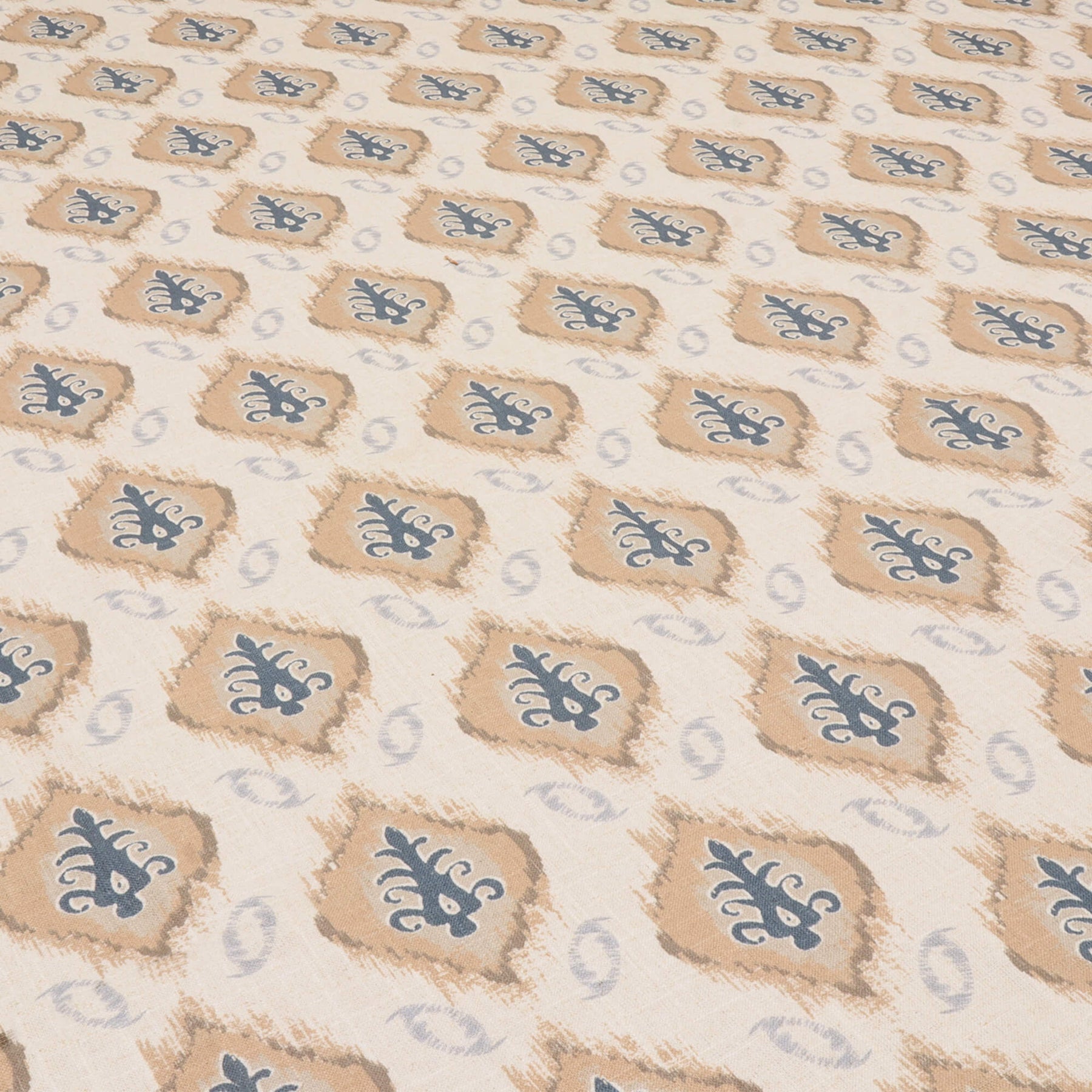 Bukari from Chess Designs is a decorative printed design from the Persian Collection. Featuring a repeating kilim-style motif on a linen viscose fabric.