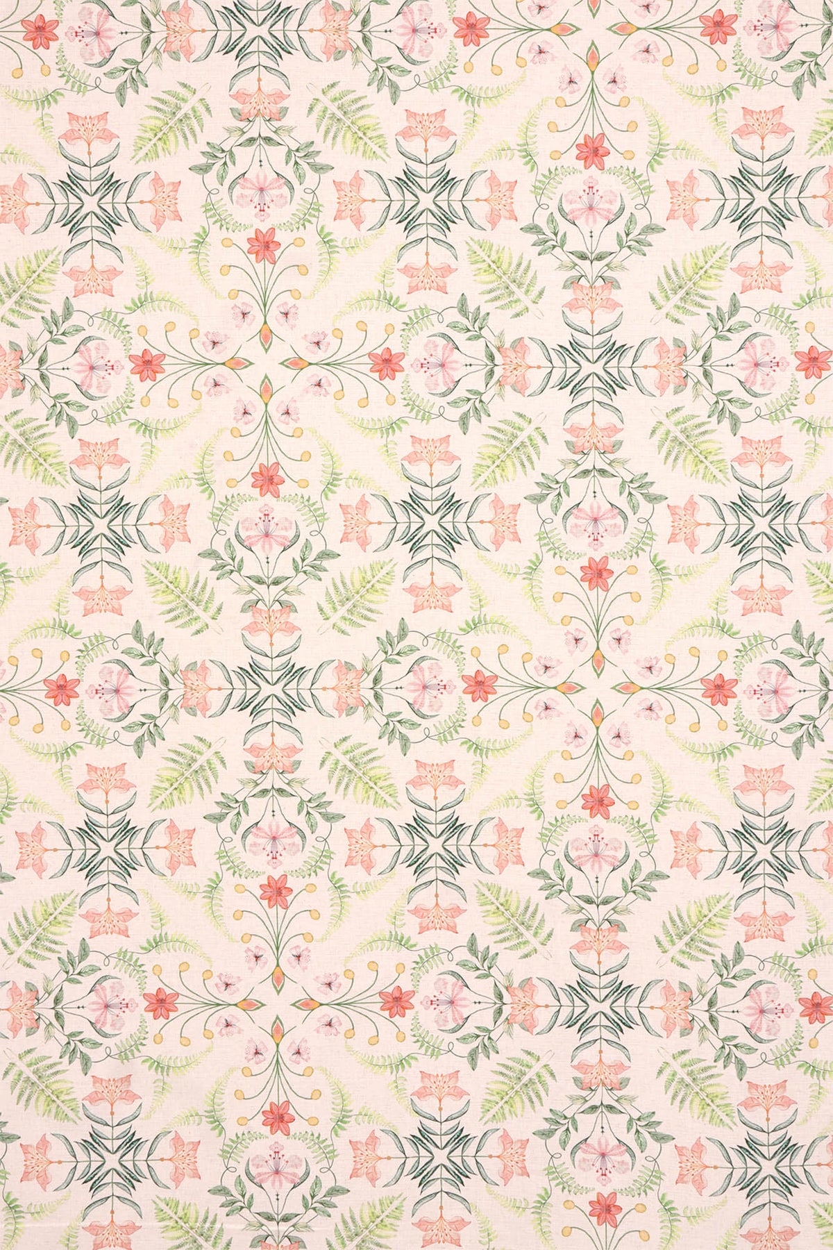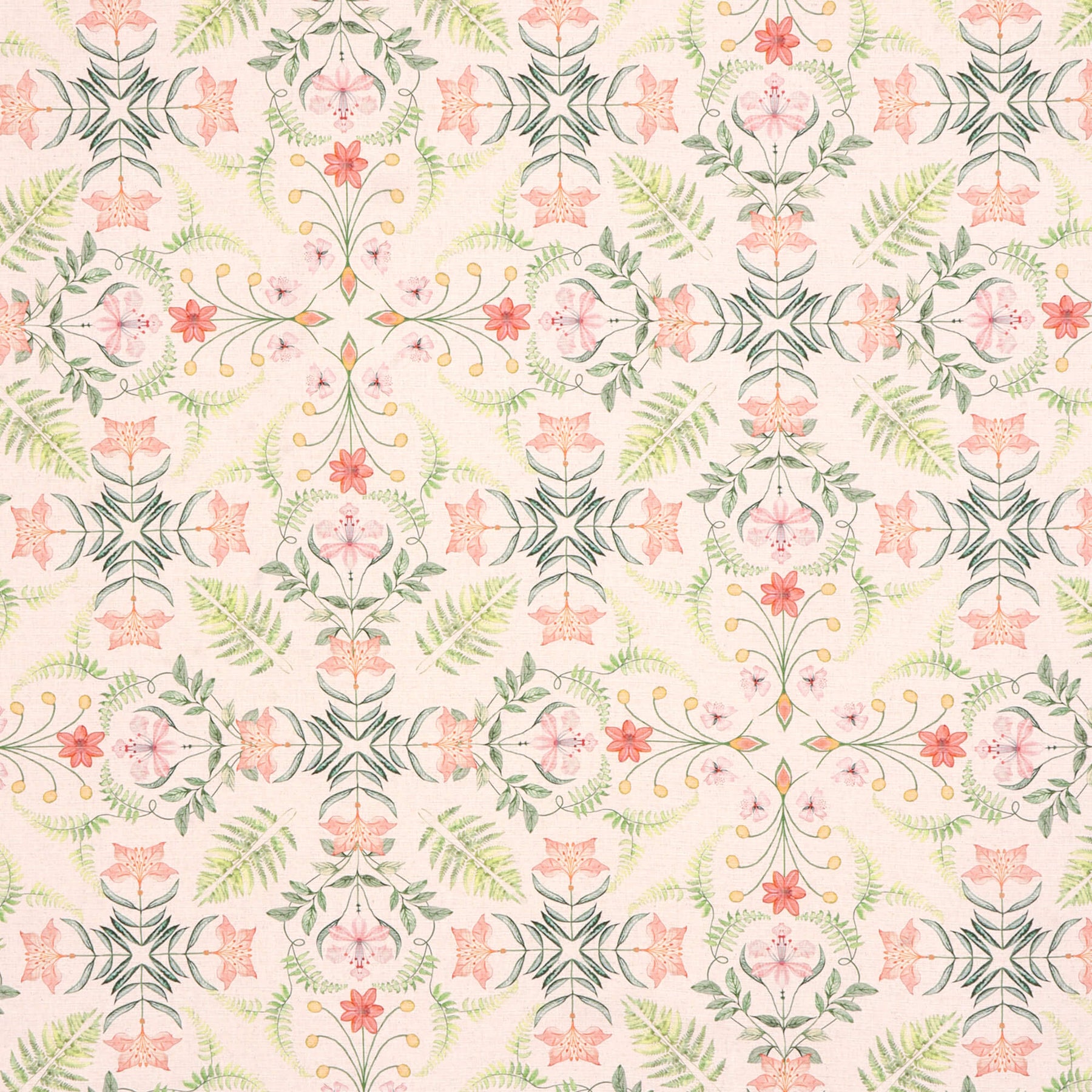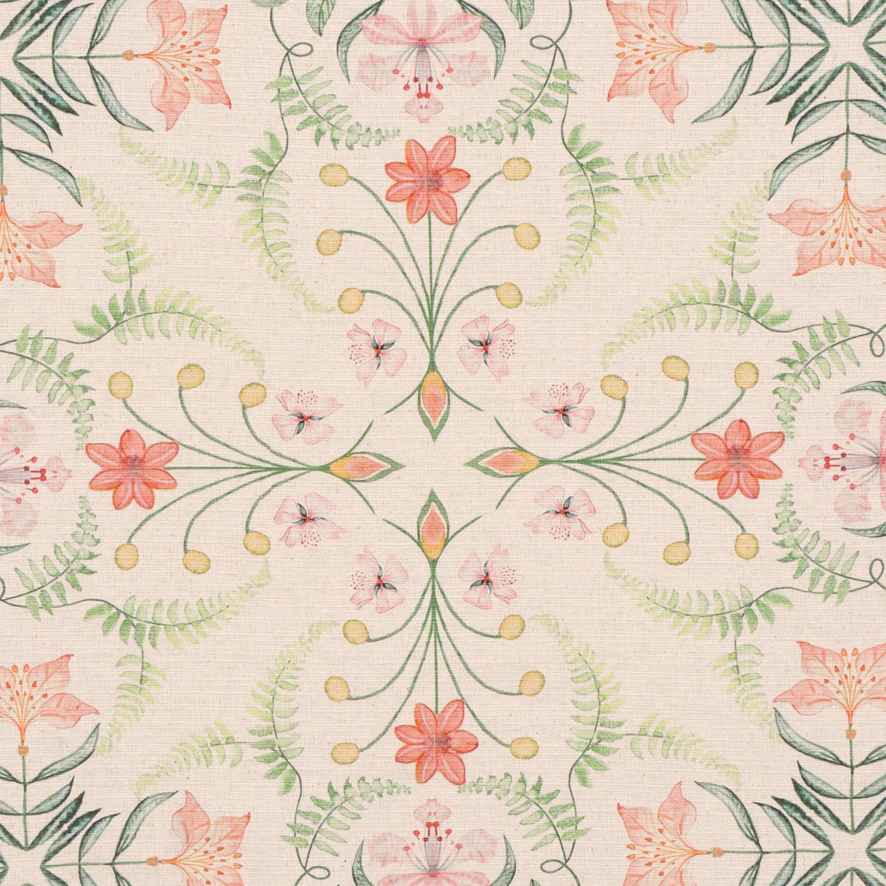 Fresco Apple is a striking symmetrical floral design printed on a natural blend of 90% cotton and 10% linen. The Apple colourway combines rich green tones with soft pink, creating a warm and inviting look that works beautifully in both traditional and contemporary interiors.