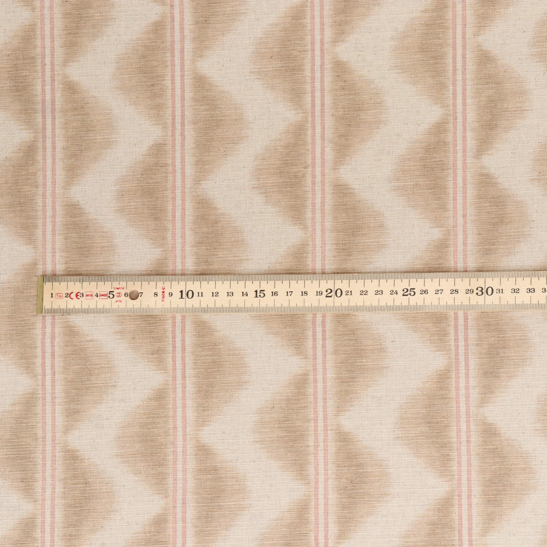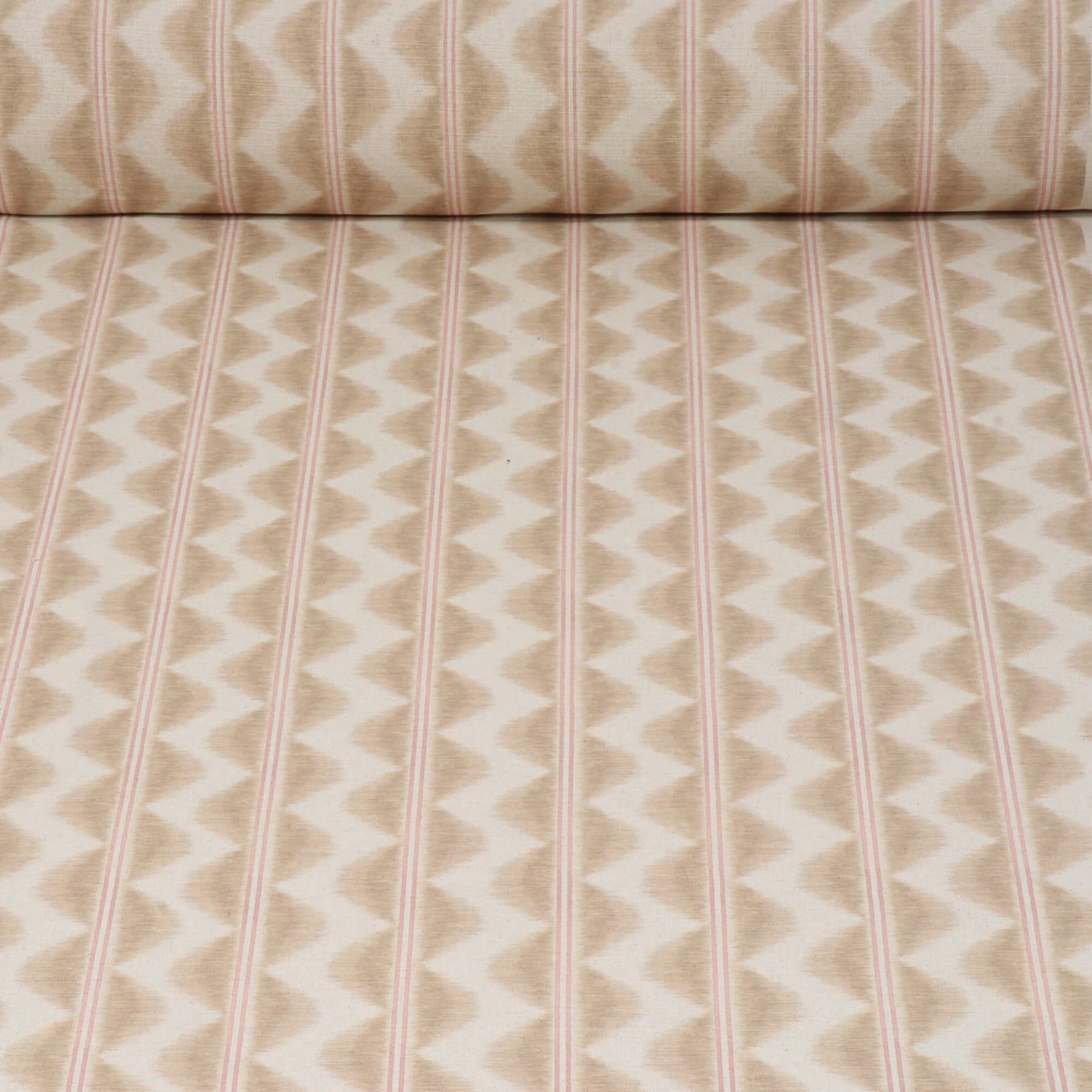 Legato features a soft wave and vertical stripe design printed on a natural cotton-linen blend. The Latte colourway combines warm beige tones with gentle touches of blush pink, creating a calm and elegant look. Made from 90% cotton and 10% linen, this fabric offers both texture and versatility with a natural look and soft handle. Ideal for curtains, cushions, and light upholstery.