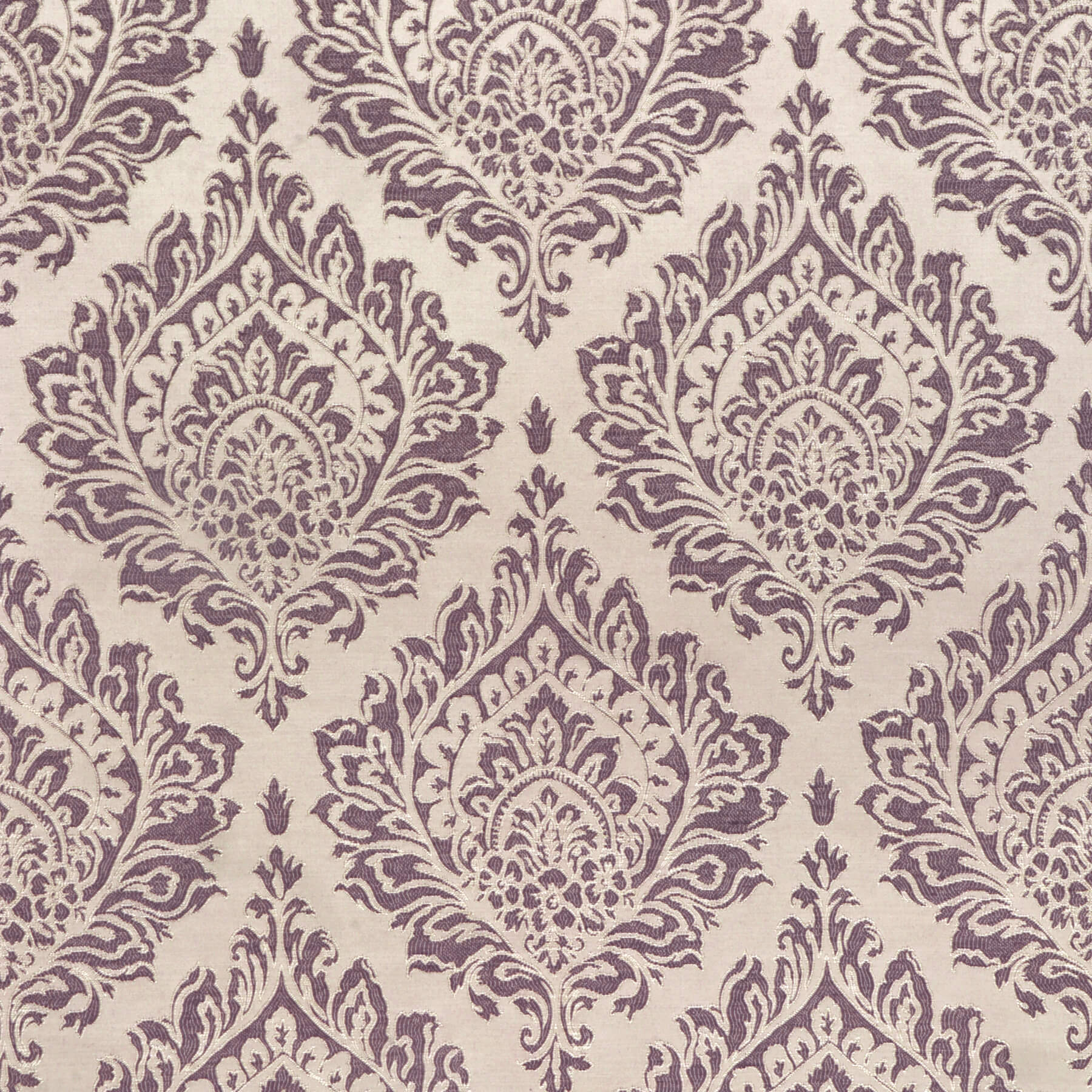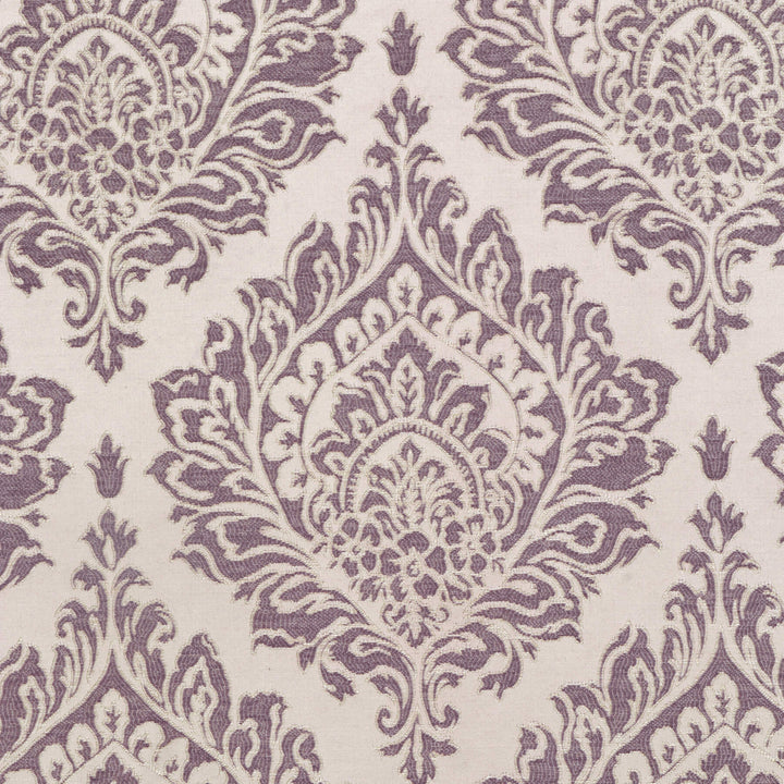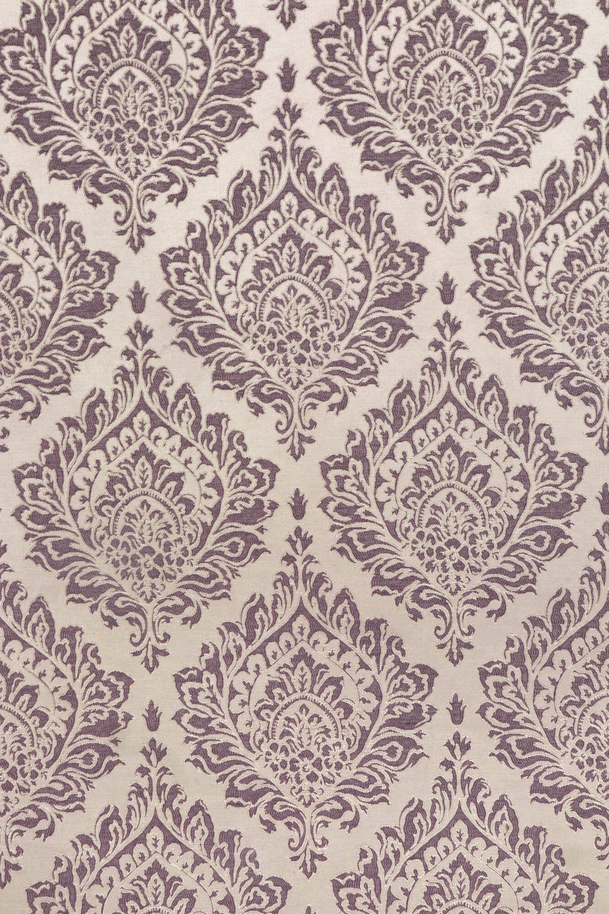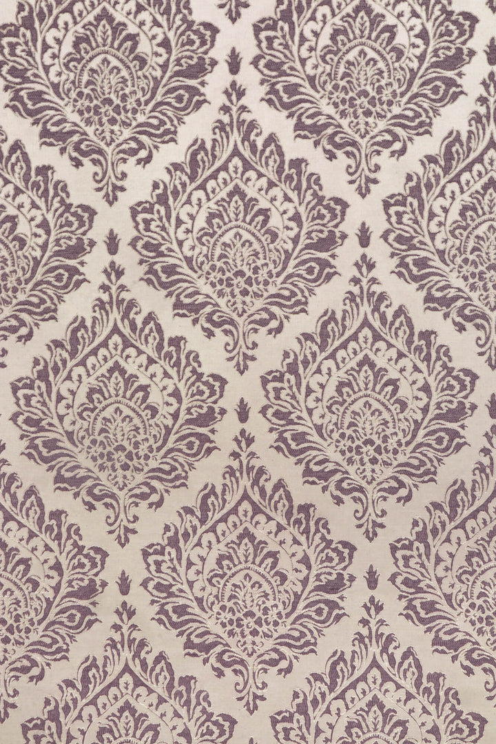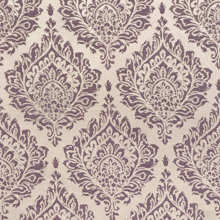 Desire Damask features a classic damask pattern with intricate floral and leaf motifs arranged in a symmetrical, repetitive design.