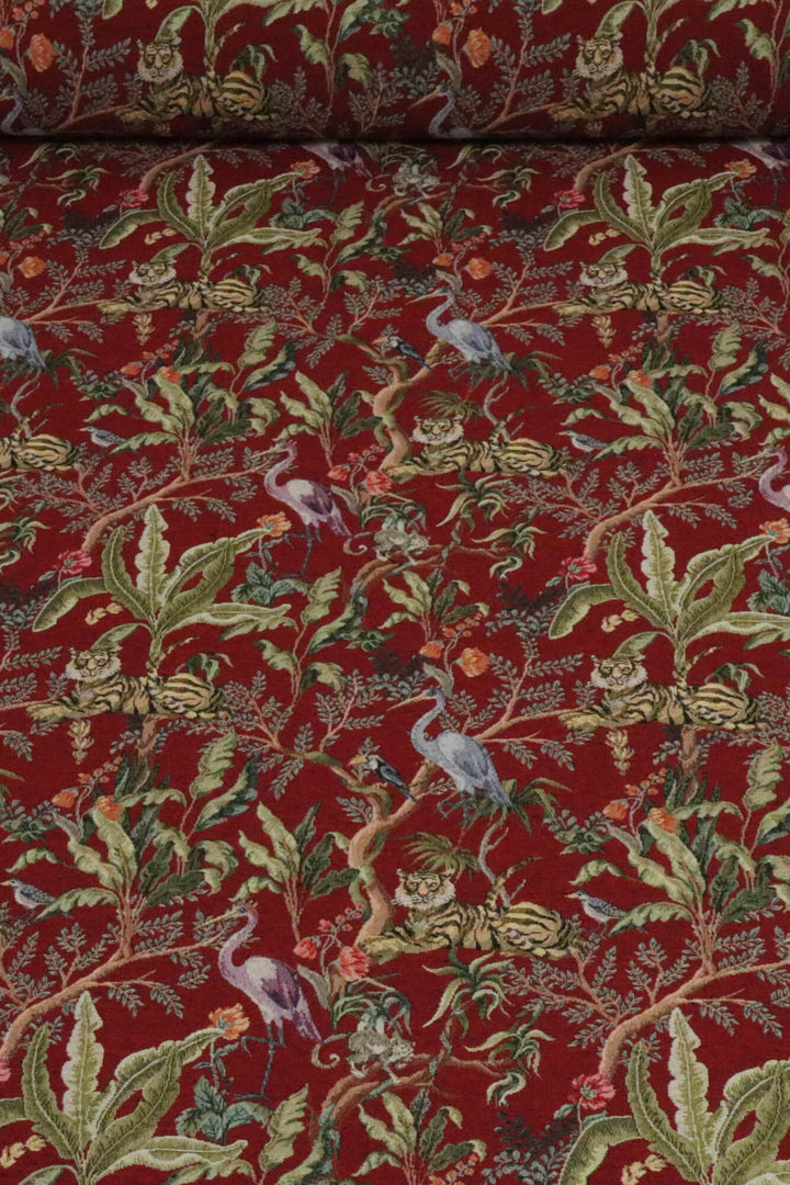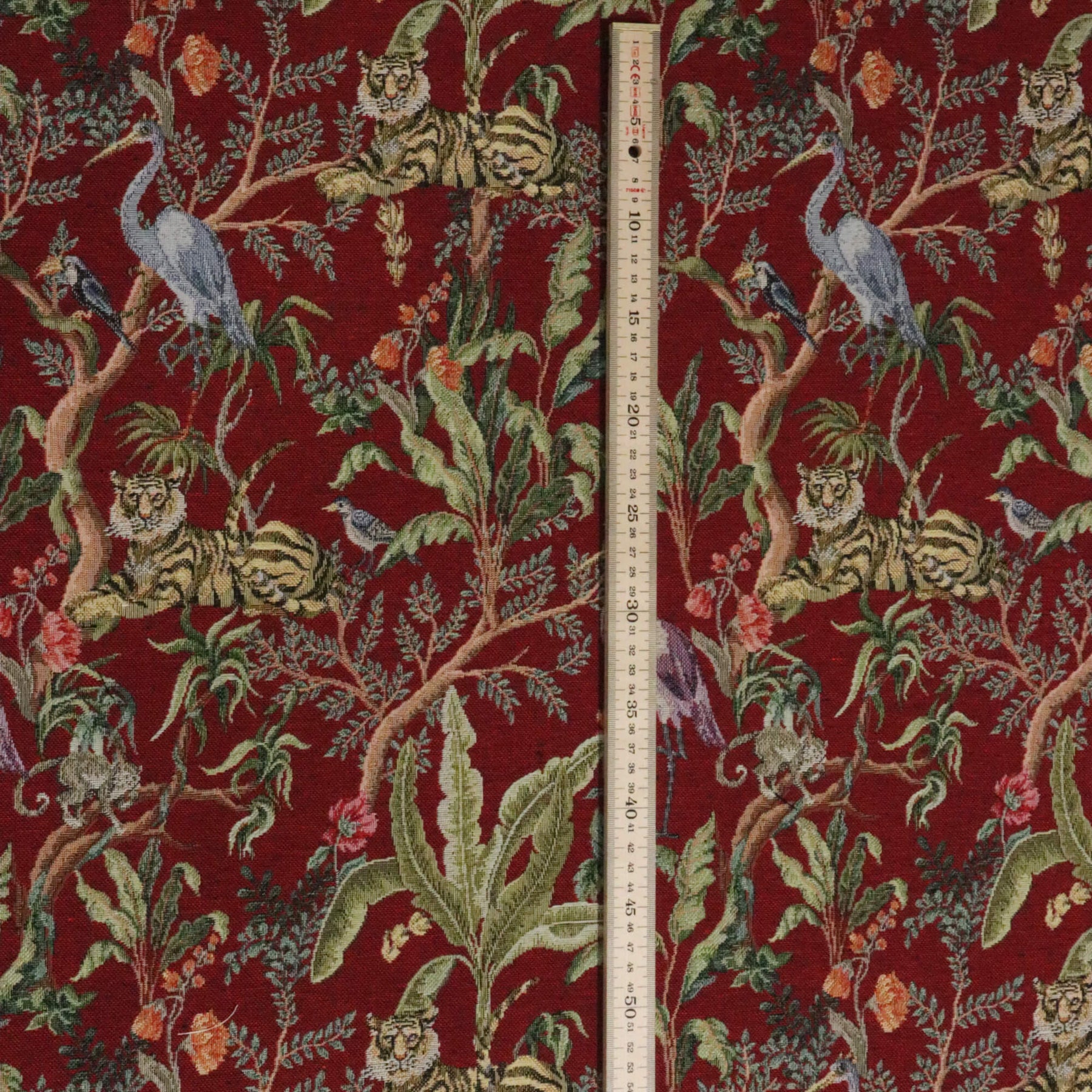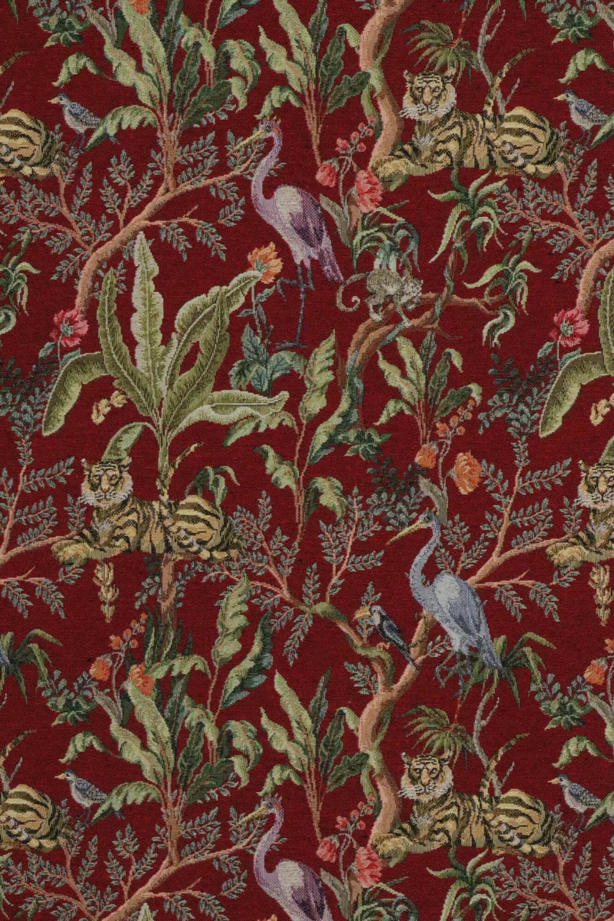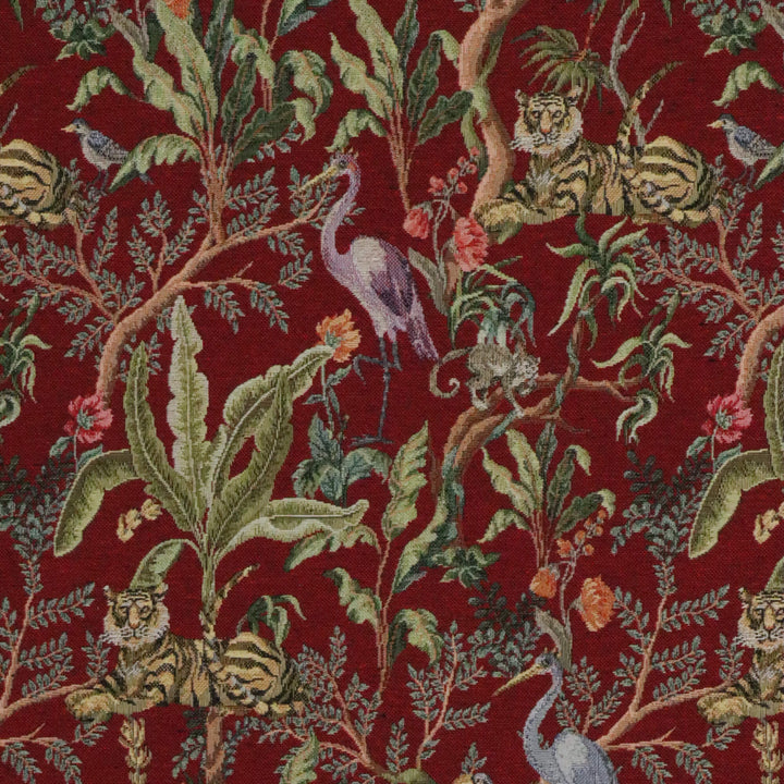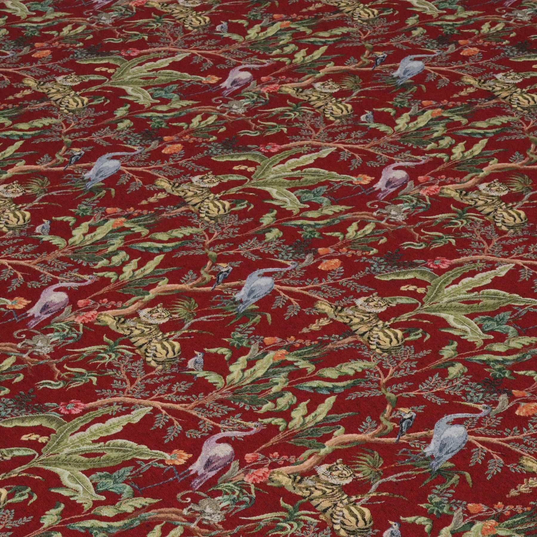 A vibrant tapestry-style fabric with an array of exotic jungle animals set amongst tropical foliage. A wonderful contemporary design, perfect for curtains, furnishings and durable enough for upholstery.