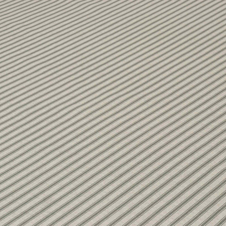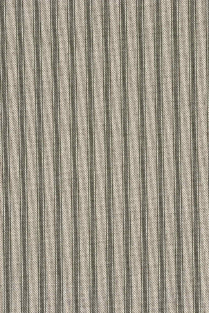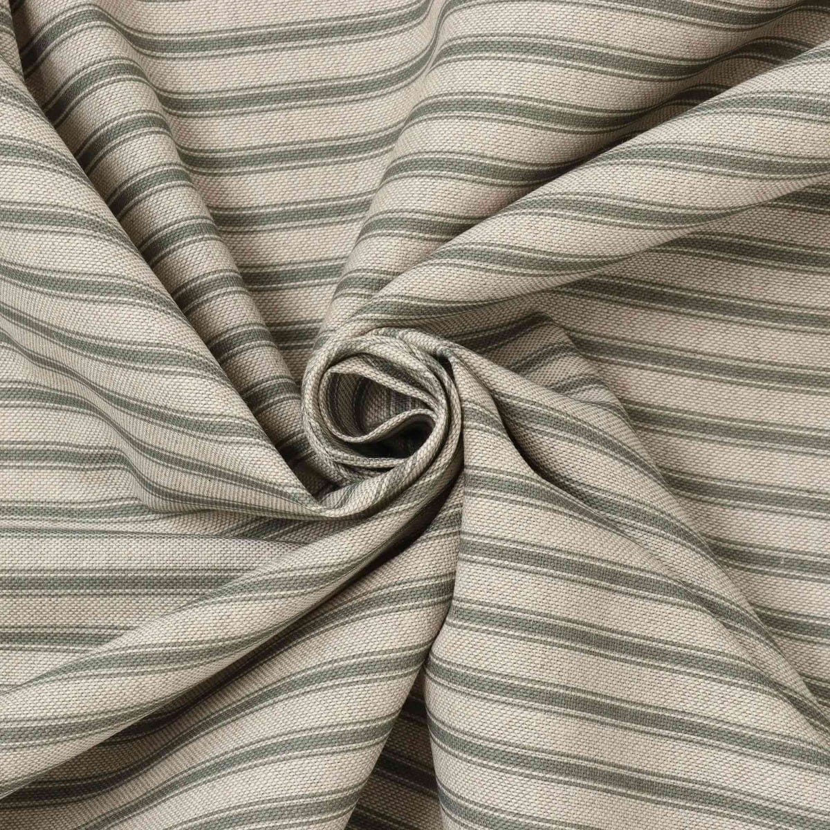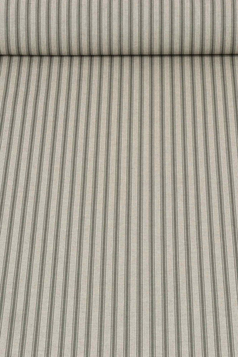 A gorgeous deck stripe fabric featuring a green stripe on a rich linen coloured cloth.