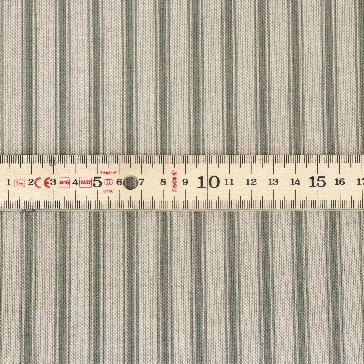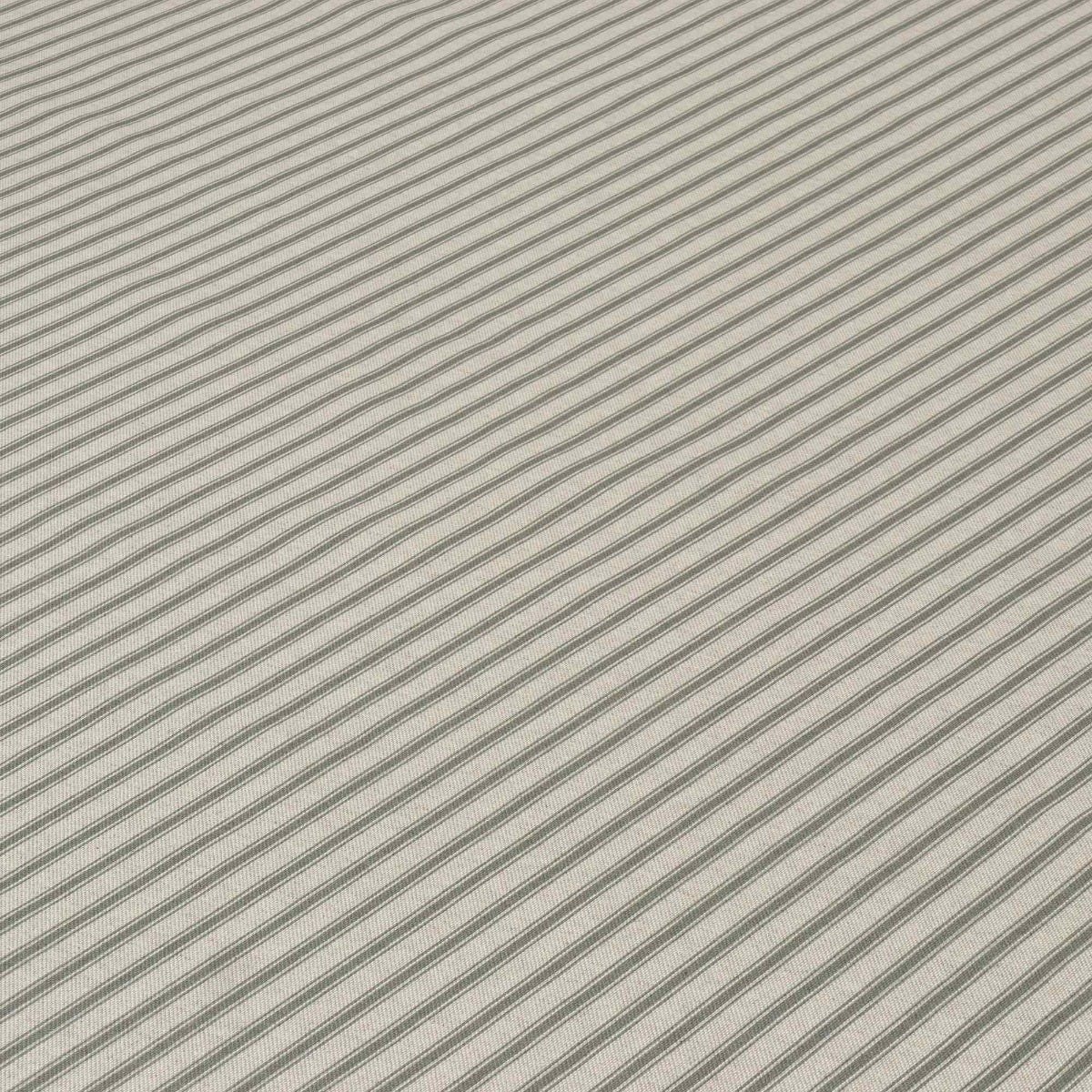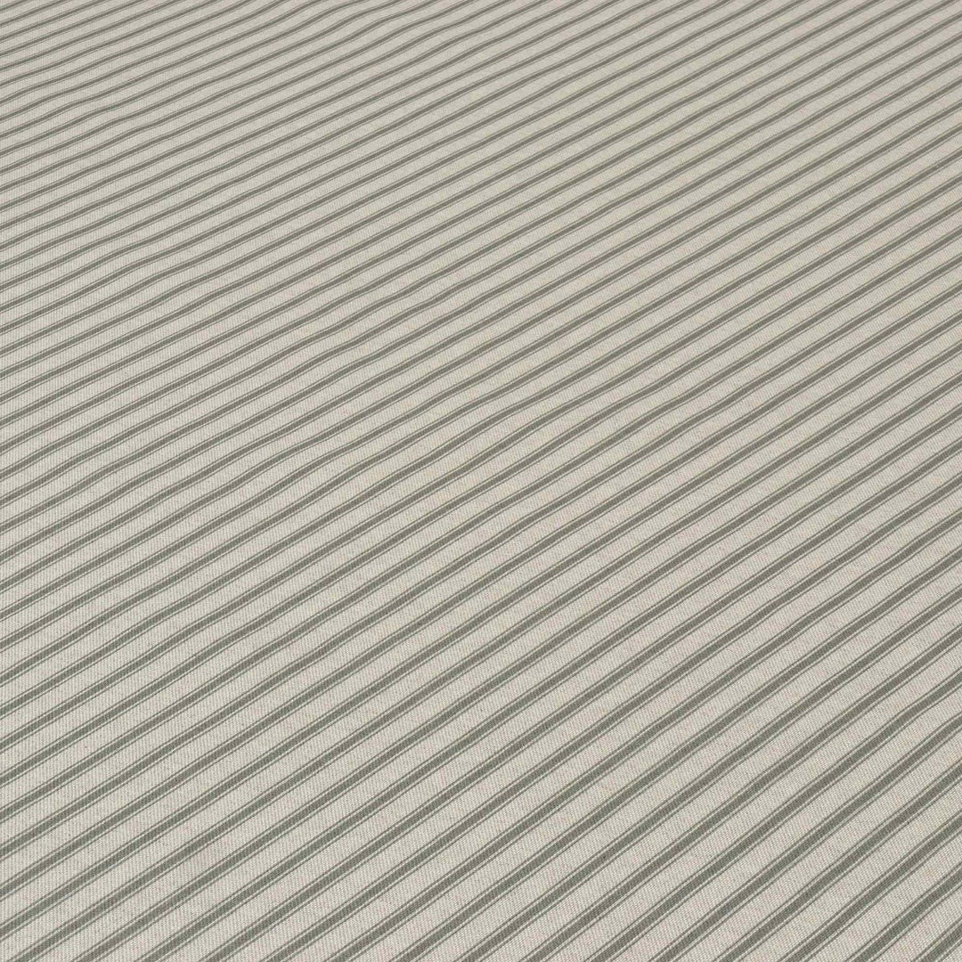 A gorgeous deck stripe fabric featuring a green stripe on a rich linen coloured cloth.