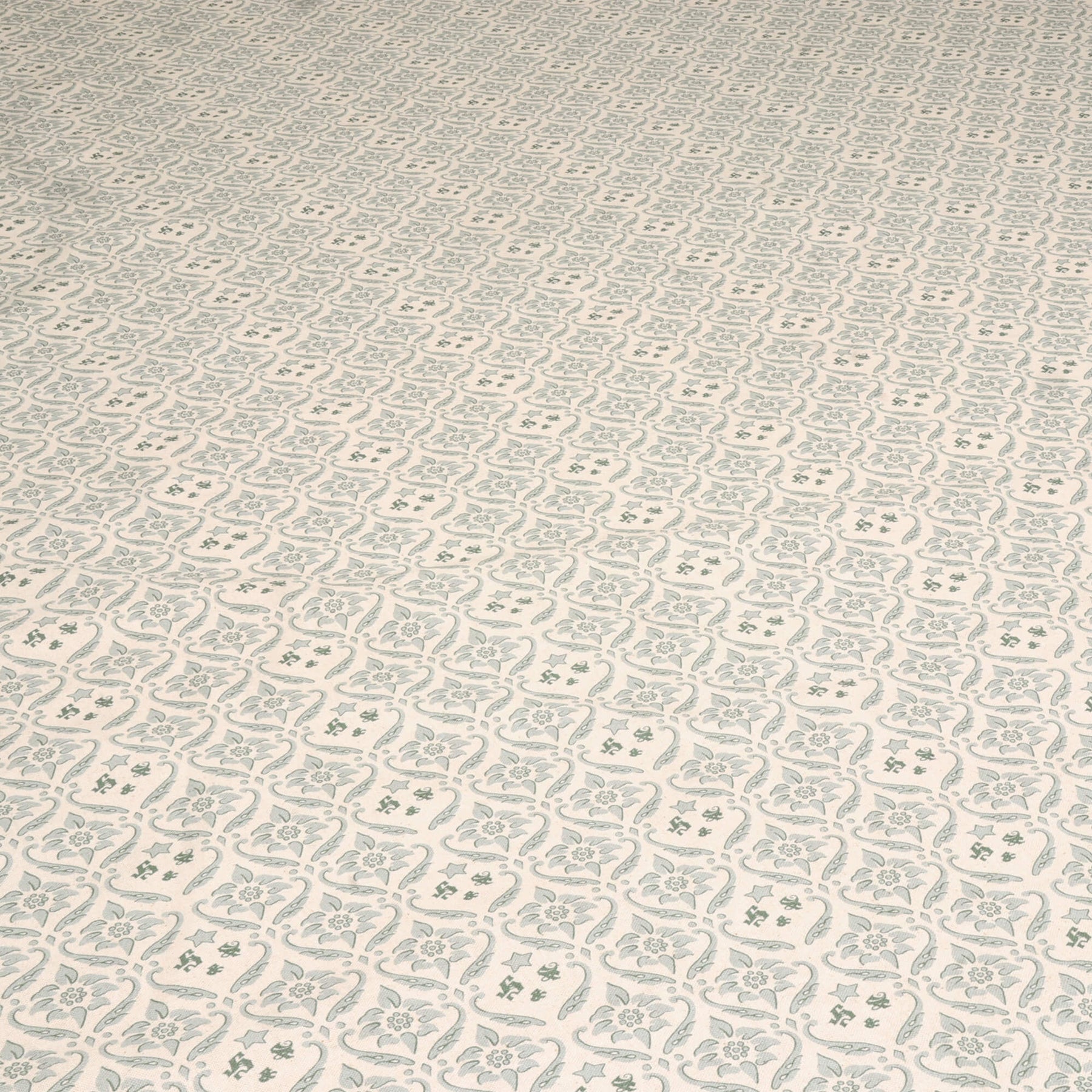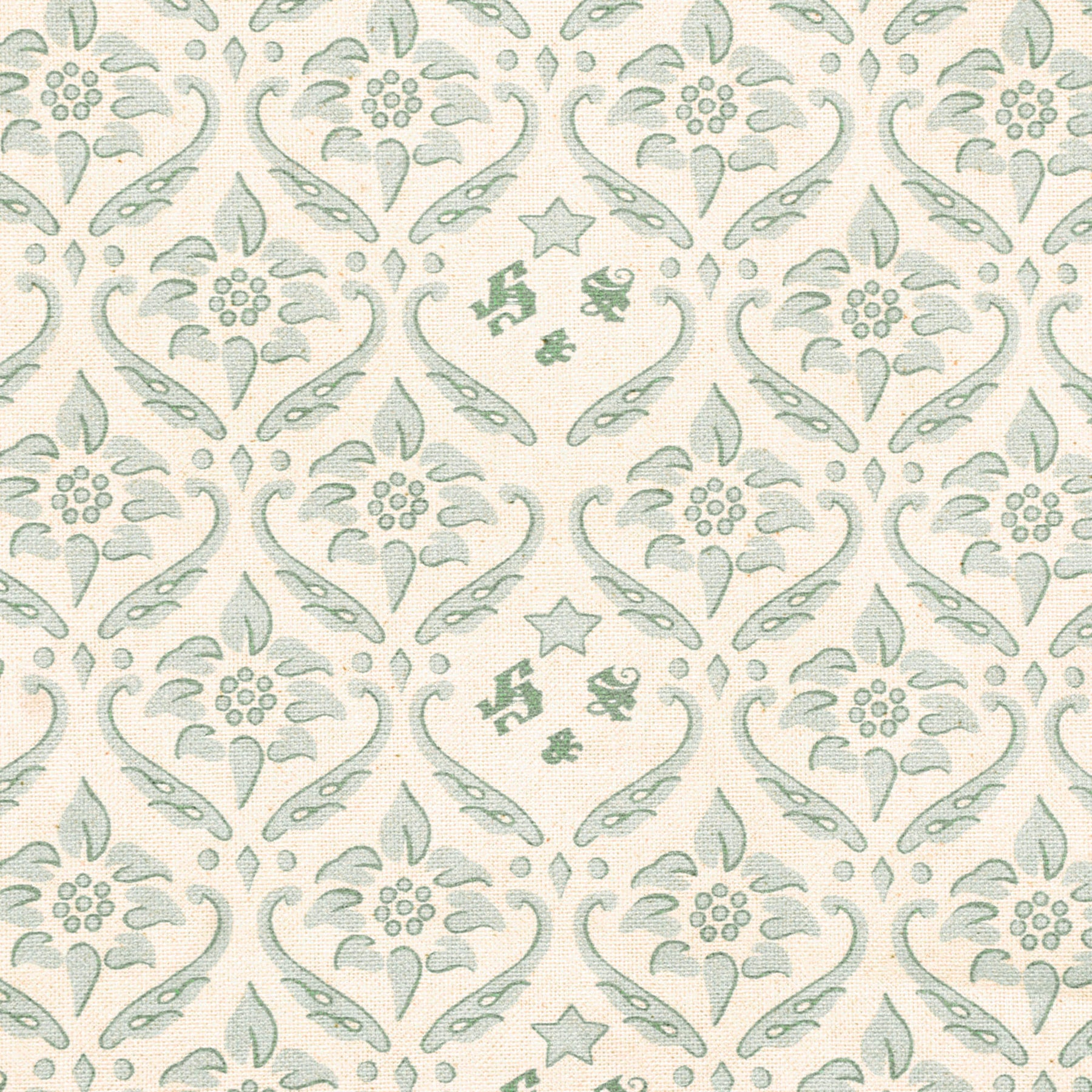An updated version of our original design printed on a new cloth, Howard Olive fabric features a repeating pattern that showcases stylised blossoms framed by graceful, scrolling vine shapes, forming a symmetrical, lattice-like design