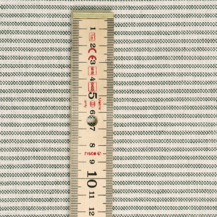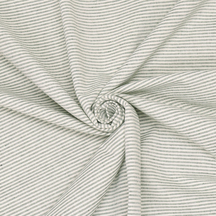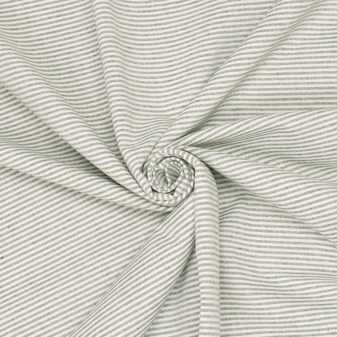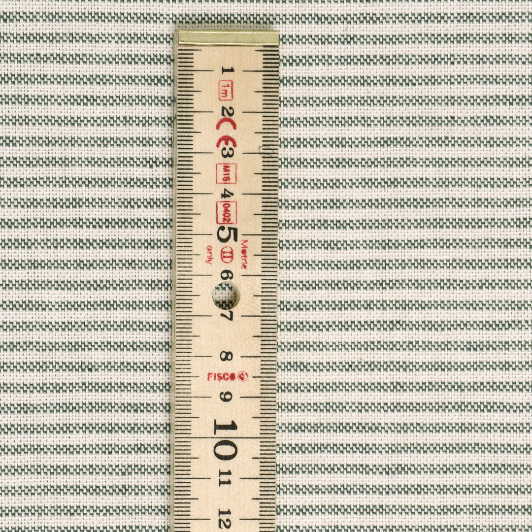Oxford Pinstripe Green with its single 0.2cm width stripe is a simple yet classic woven fabric with a beautifully soft feel to it. A versatile choice for rooms, Oxford Pinstripe is double width (280cm) and is suitable for curtains, blinds, cushions and upholstery projects such as chairs, footstools and headboards.