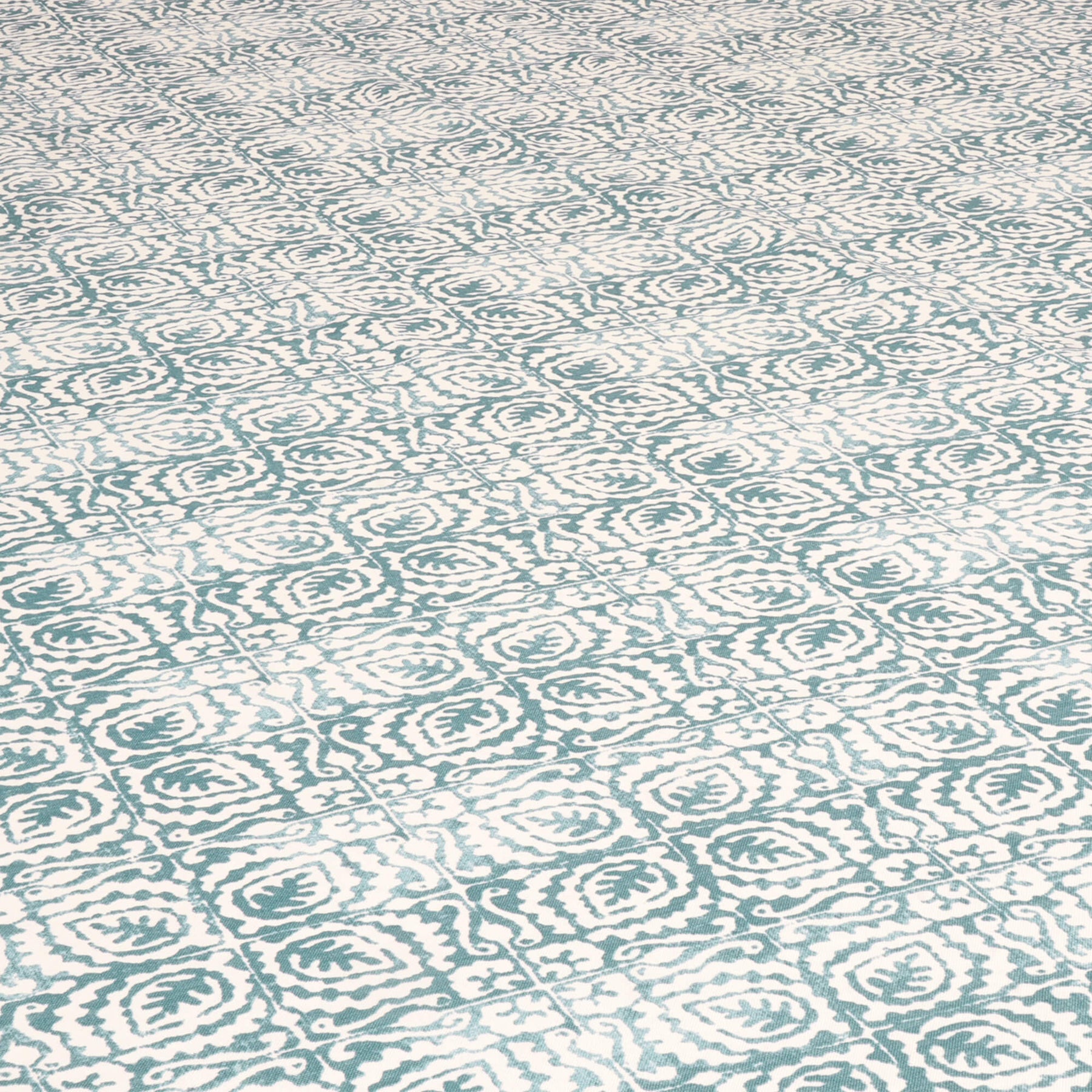 Margot from Prestigious Textiles features a batik-style design, which showcases repeating stylised leaf and paisley-inspired motifs arranged in a geometric grid, creating a balanced blend of organic shapes and structured symmetry.