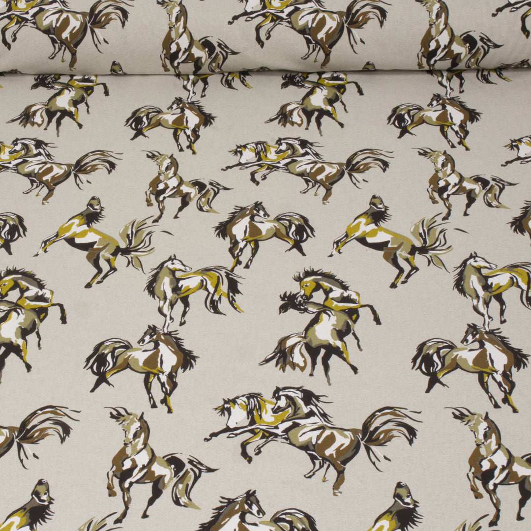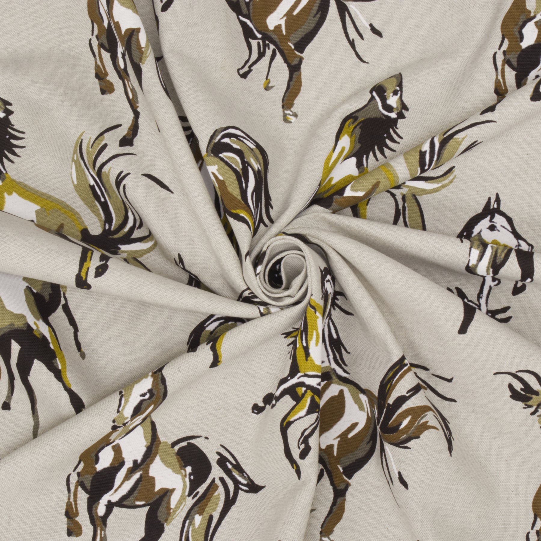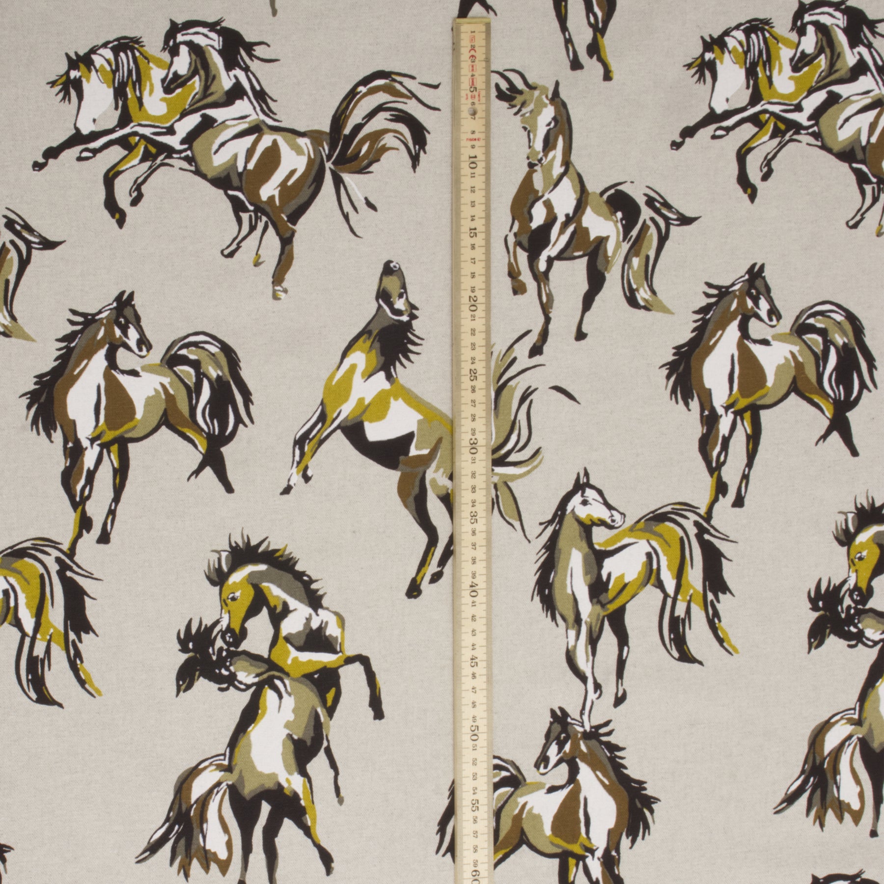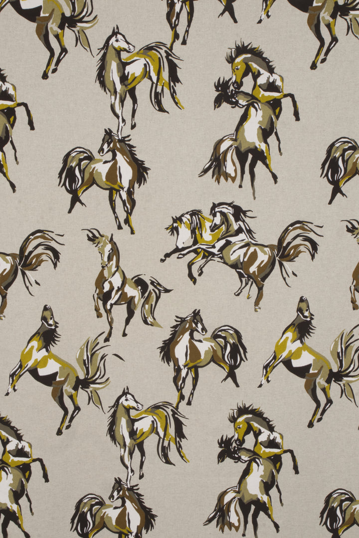 A fantastic equestrian themed fabric, Wild Horses is printed on a wide cotton blend base cloth. This stylish fabric is ideal for curtains, blinds, furnishings and upholstery.