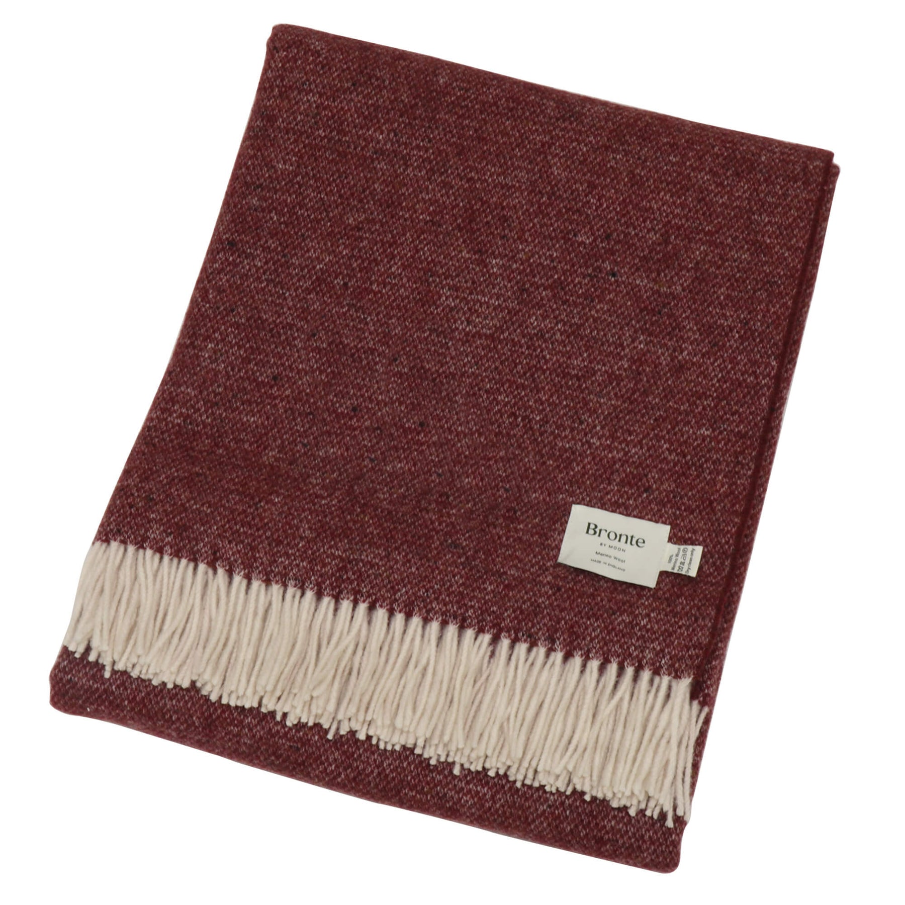 Crafted from 100% merino wool, the Bronte by Moon Donegal Wool Throw in burgundy offers warmth, texture and timeless British craftsmanship. Woven in England, the throw features a classic Donegal-style weave with subtle flecks of colour running through the rich brown base, creating depth and character.