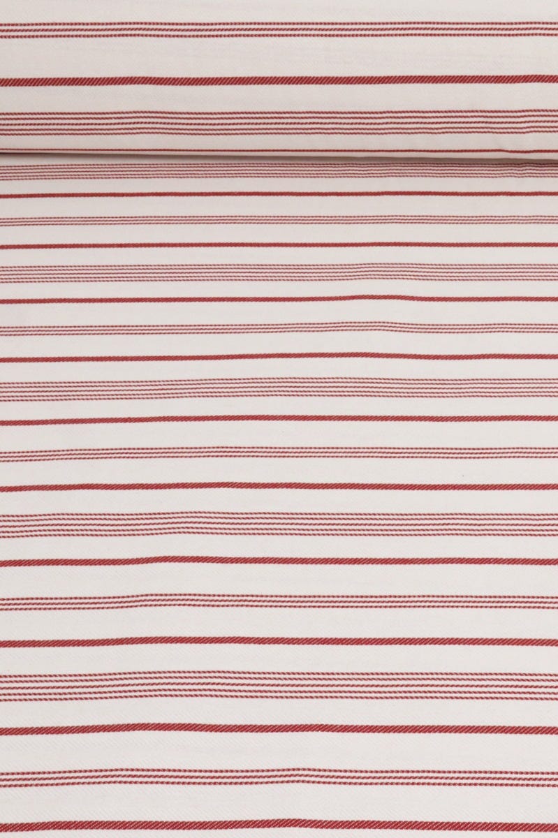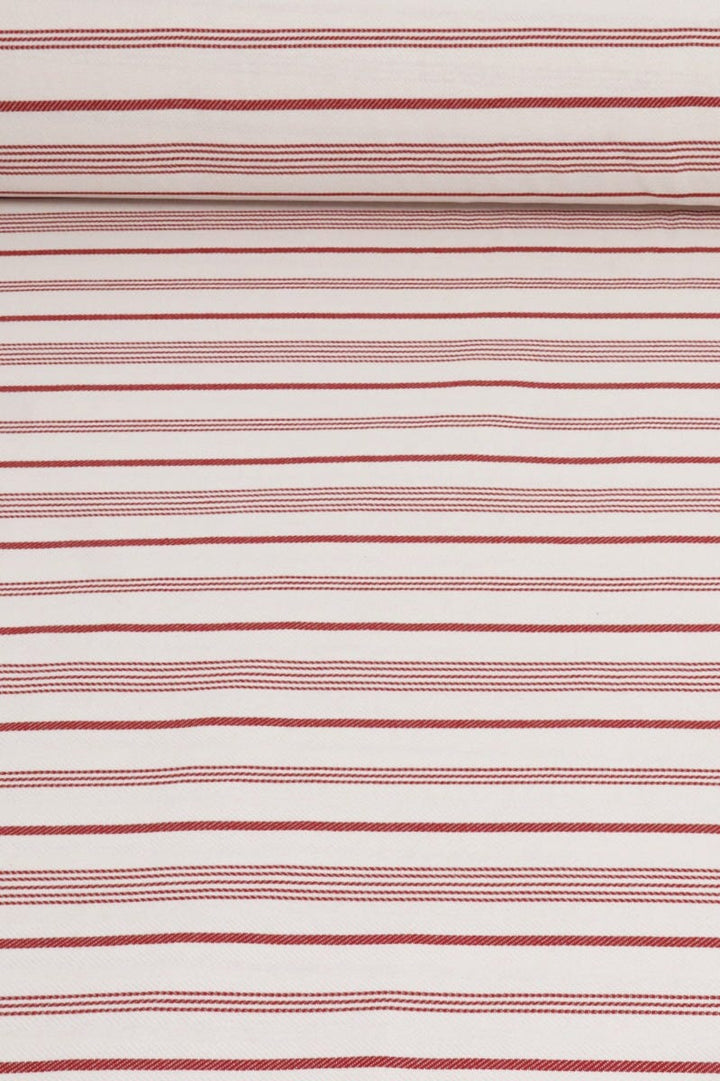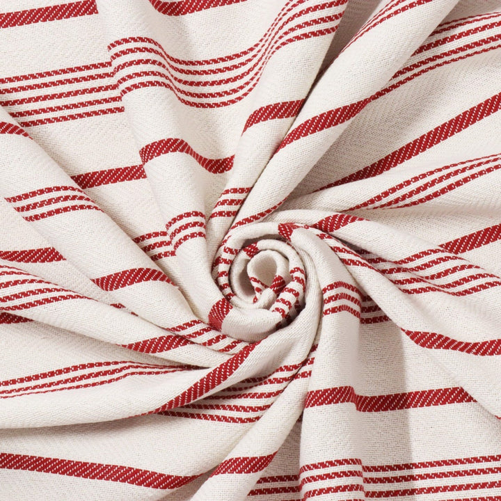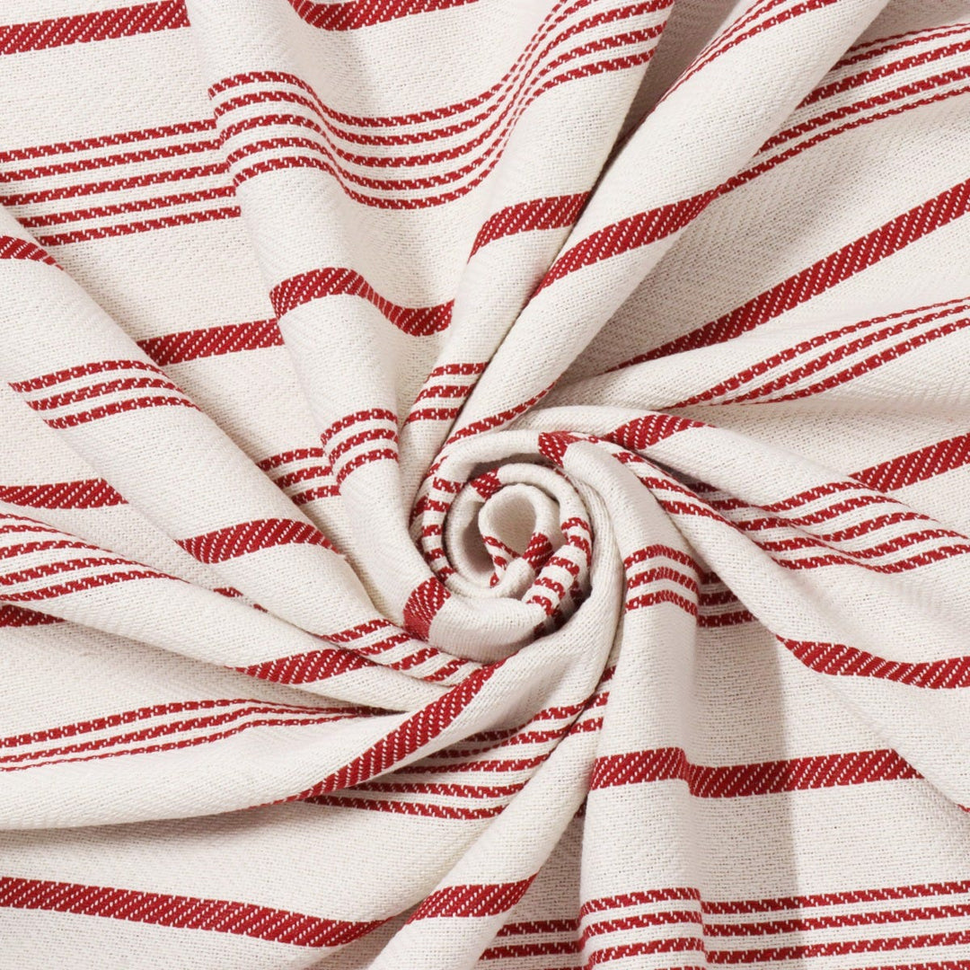 A classic woven stripe in blue and white, a lighter-weight fabric that has a lovely herringbone weave. This is a double width fabric at 280cm, making it particularly useful when making extra wide curtains and blinds.