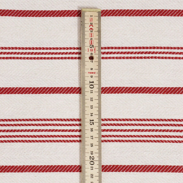 Please note the stripe runs selvage to selvage, common on some French fabrics. Turn the fabric and use the width as the drop to achieve a vertical stripe.