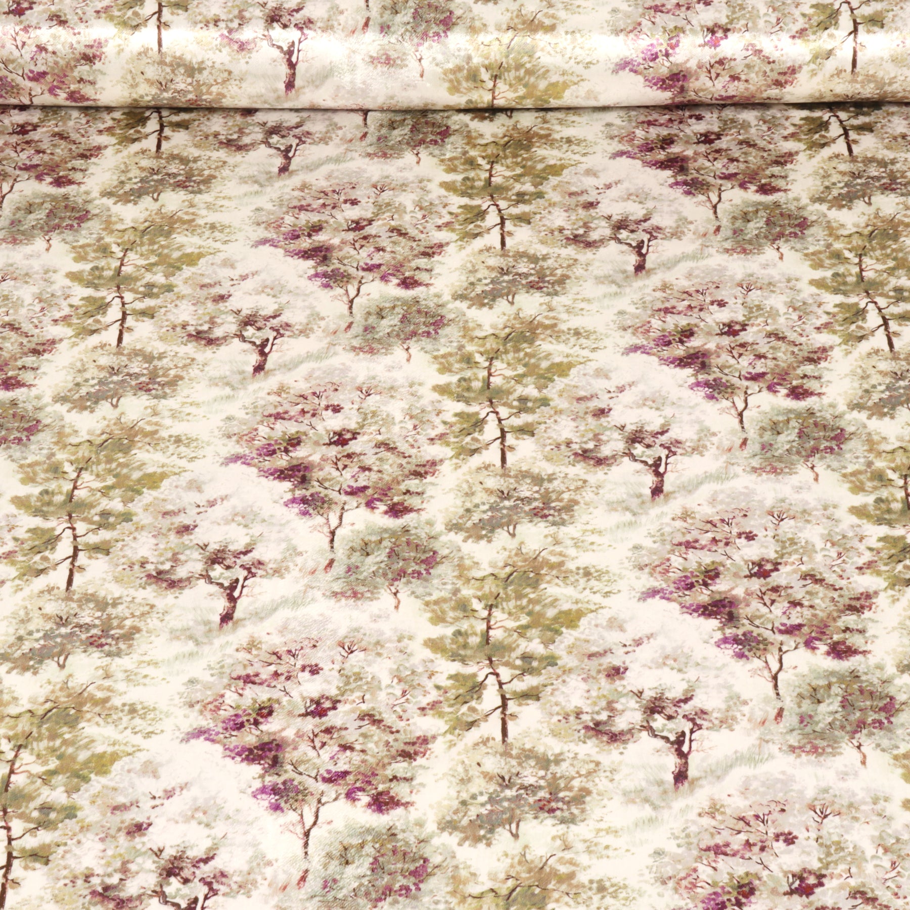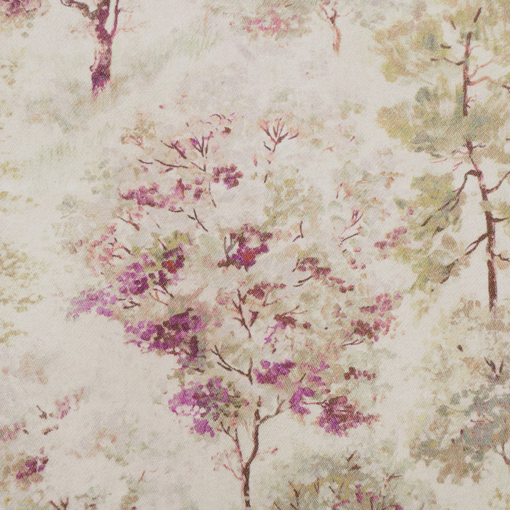 An elegant nature-inspired pattern, Wildwood from Beaumont Textiles features a woodland-inspired design showcasing a serene and painterly pattern of trees, rendered in soft, natural shades with delicate tones of mulberry pinks and purples. Wildwood evokes a romantic and tranquil scene, perfect for both contemporary and classic interiors.