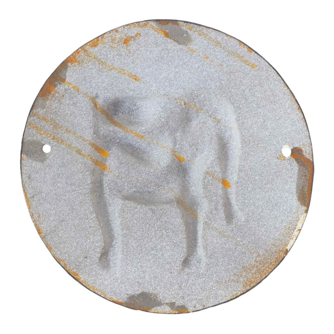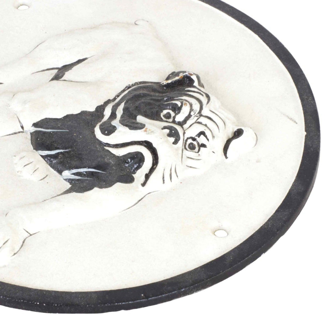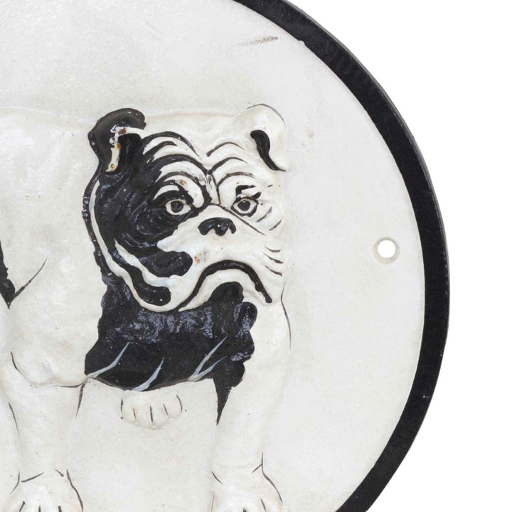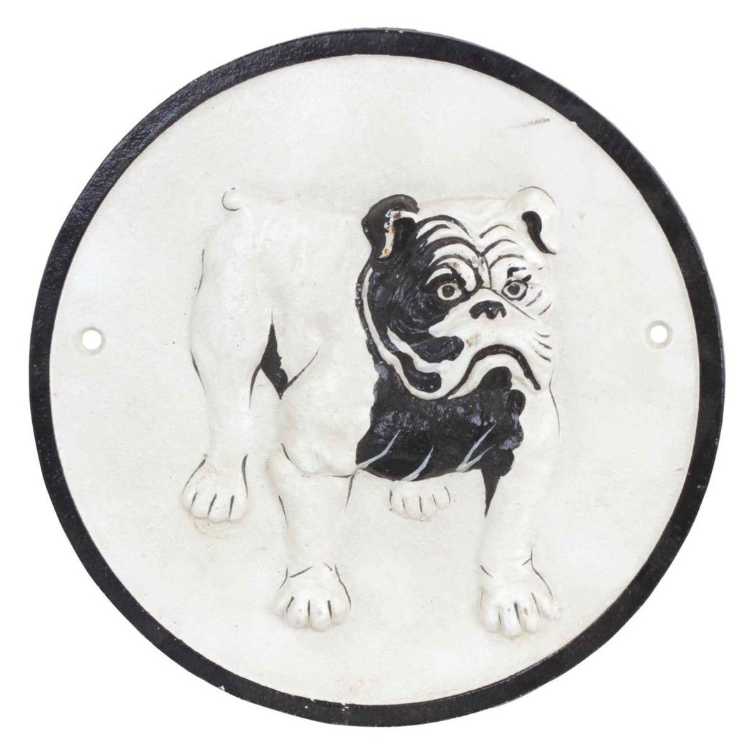 The novelty bulldog vintage plaque is made from solid cast iron and has been painted white and black. Each sign has been hand painted, making each plaque unique. The signs can be used both inside and outside.