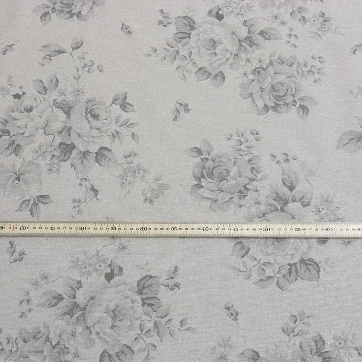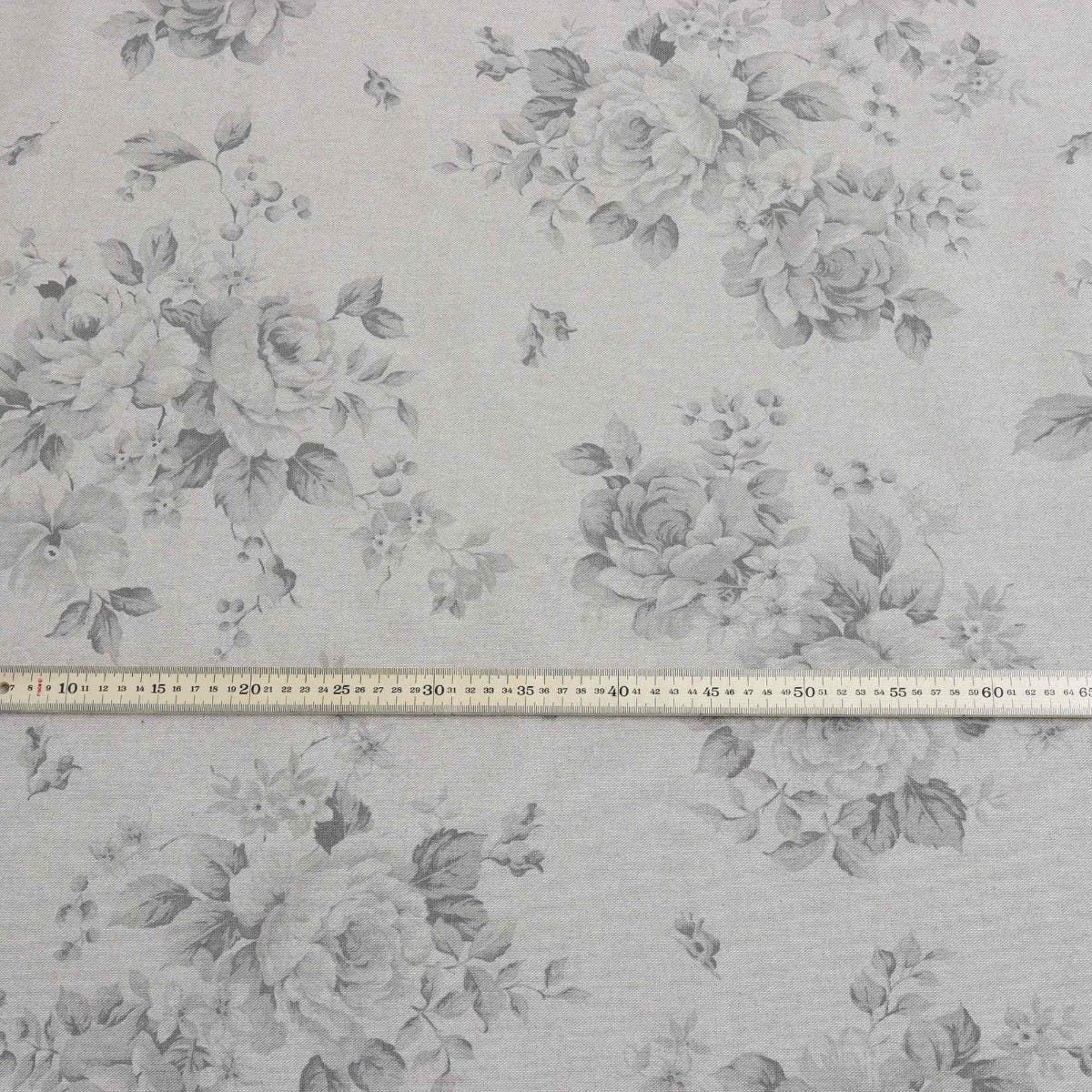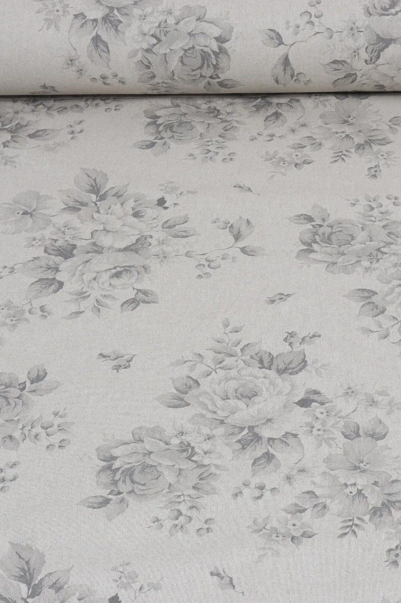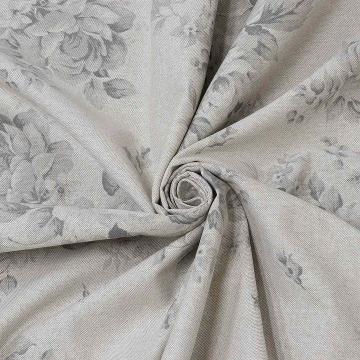 In a lovely muted grey colourway, Dorothy Rose double-width floral fabric features a soft, shabby chic design printed on rustic coloured linen cotton blend base cloth. Perfect for bringing a sense of shabby chic to your home.