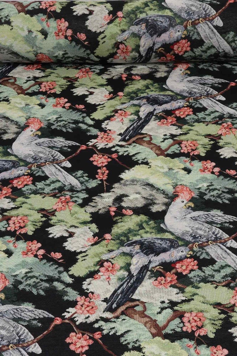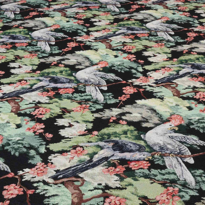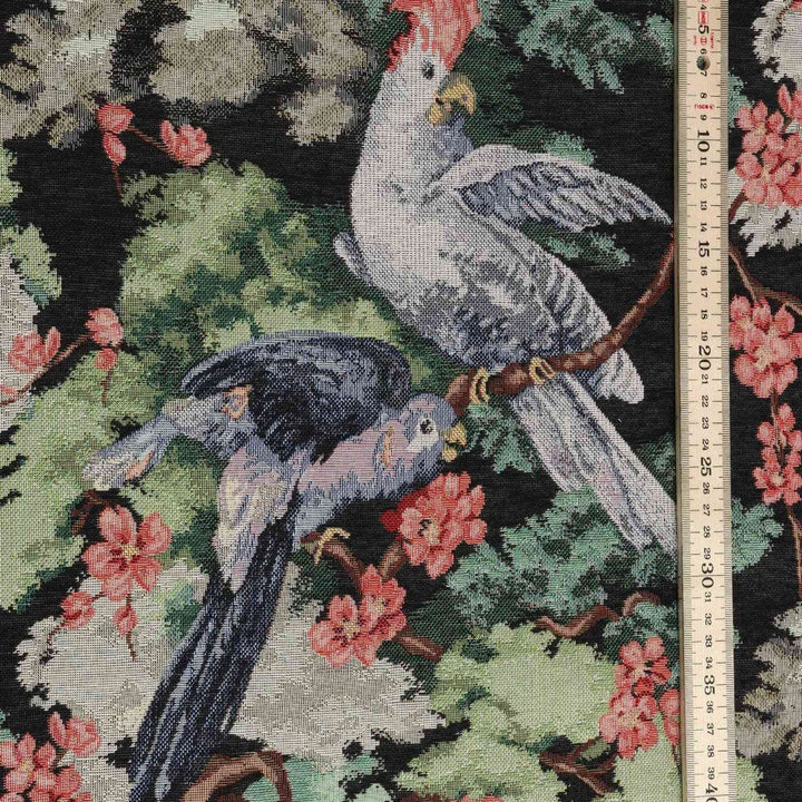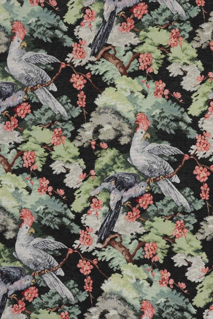 Exotic Aviary Tapestry Black Fabric