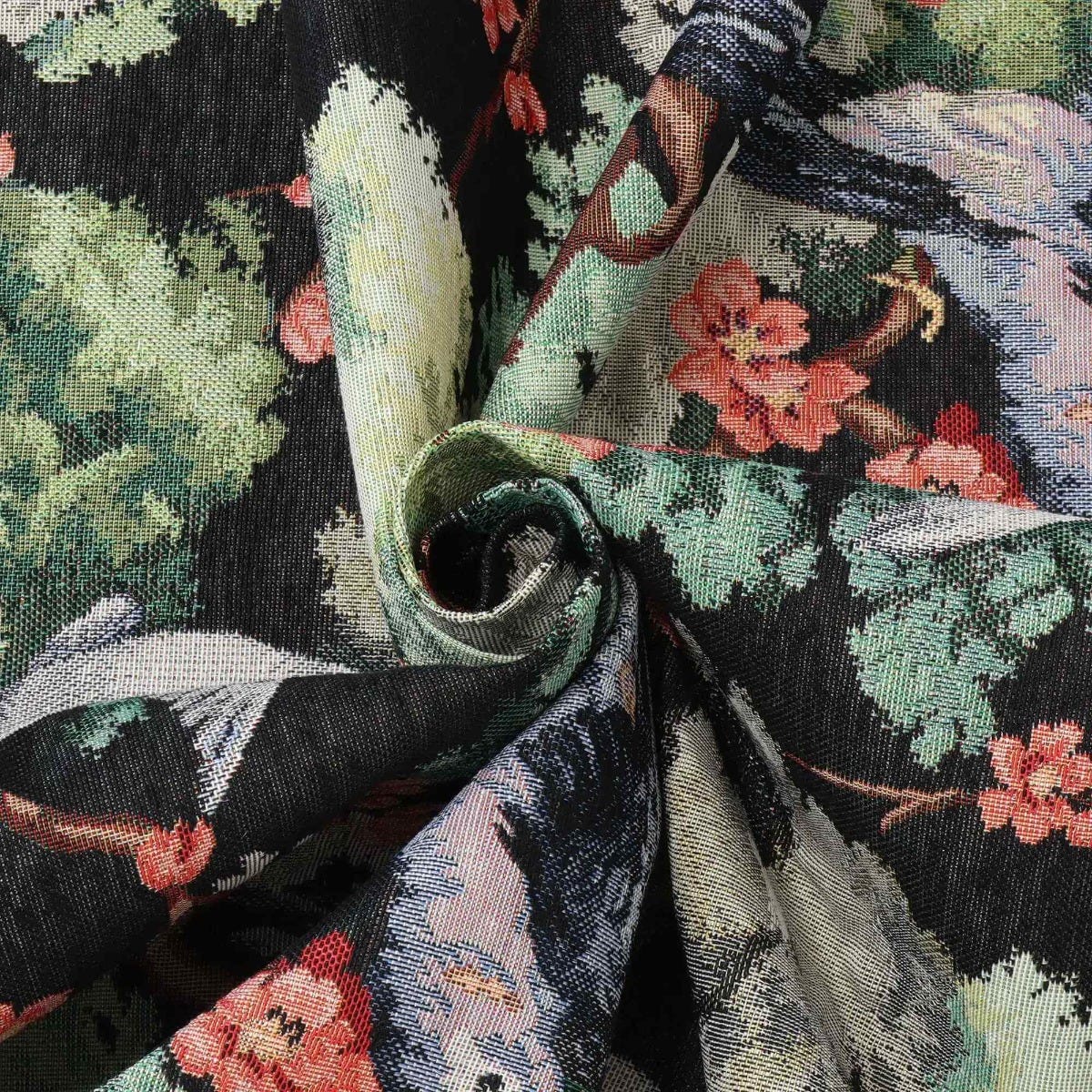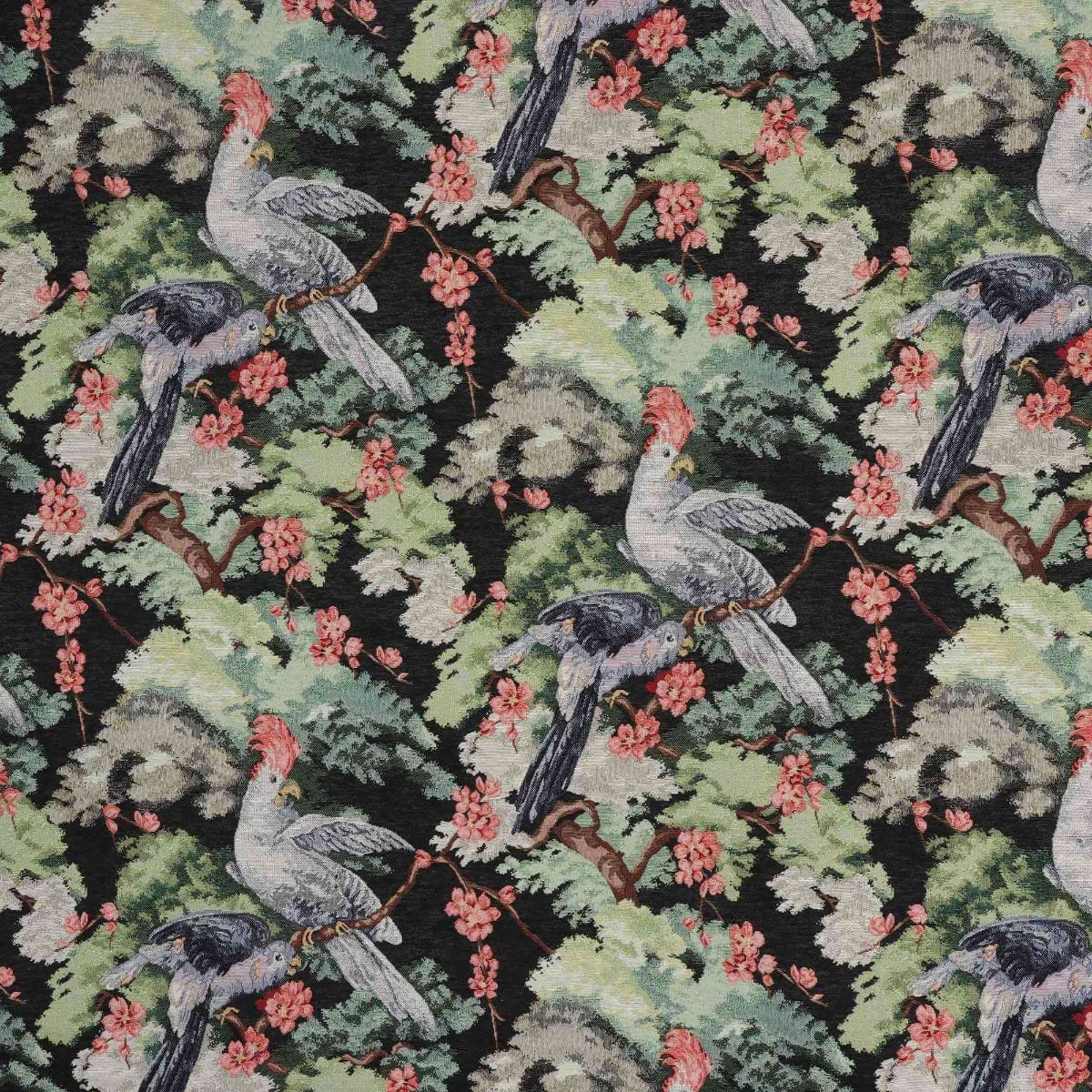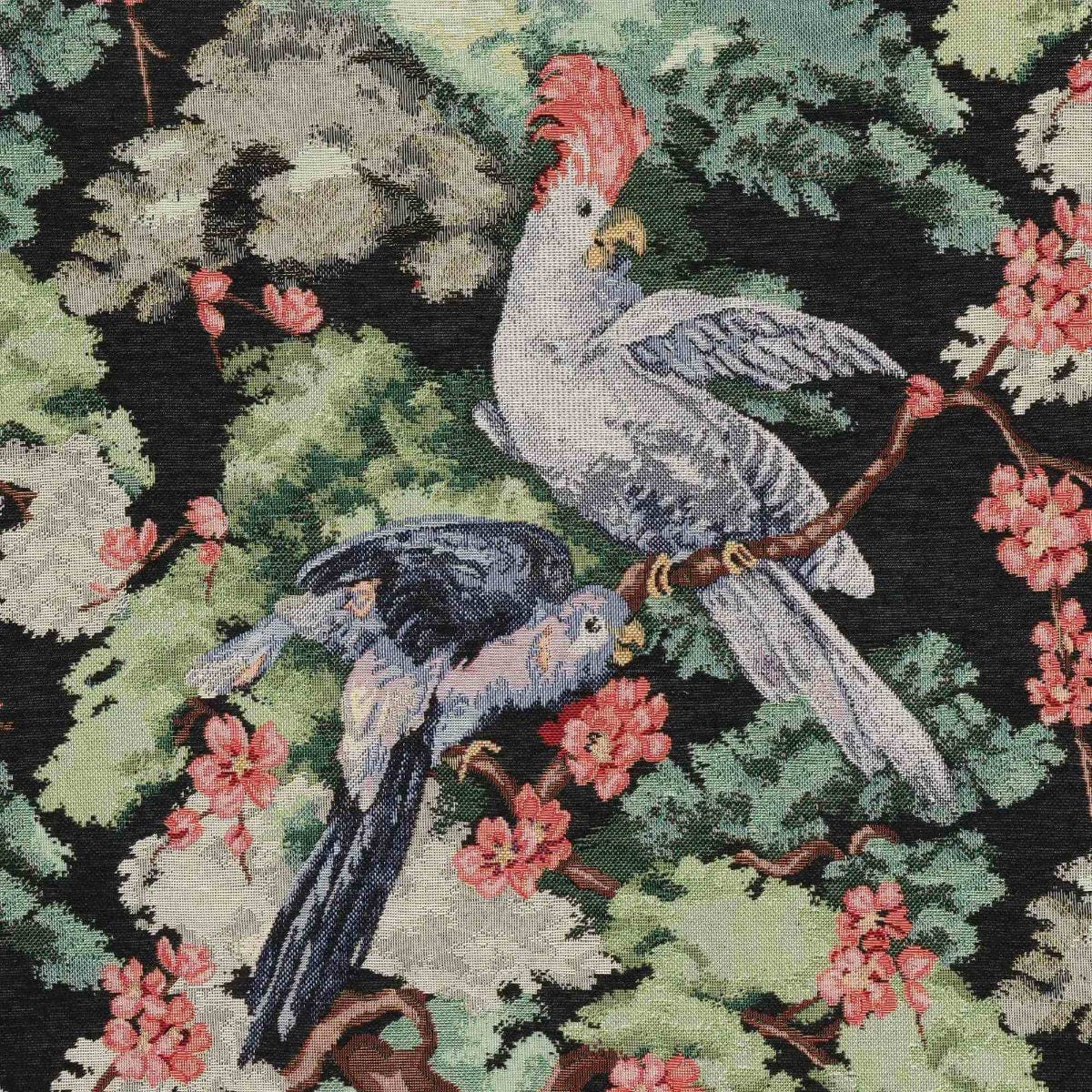 Exotic Aviary Tapestry Black Fabric