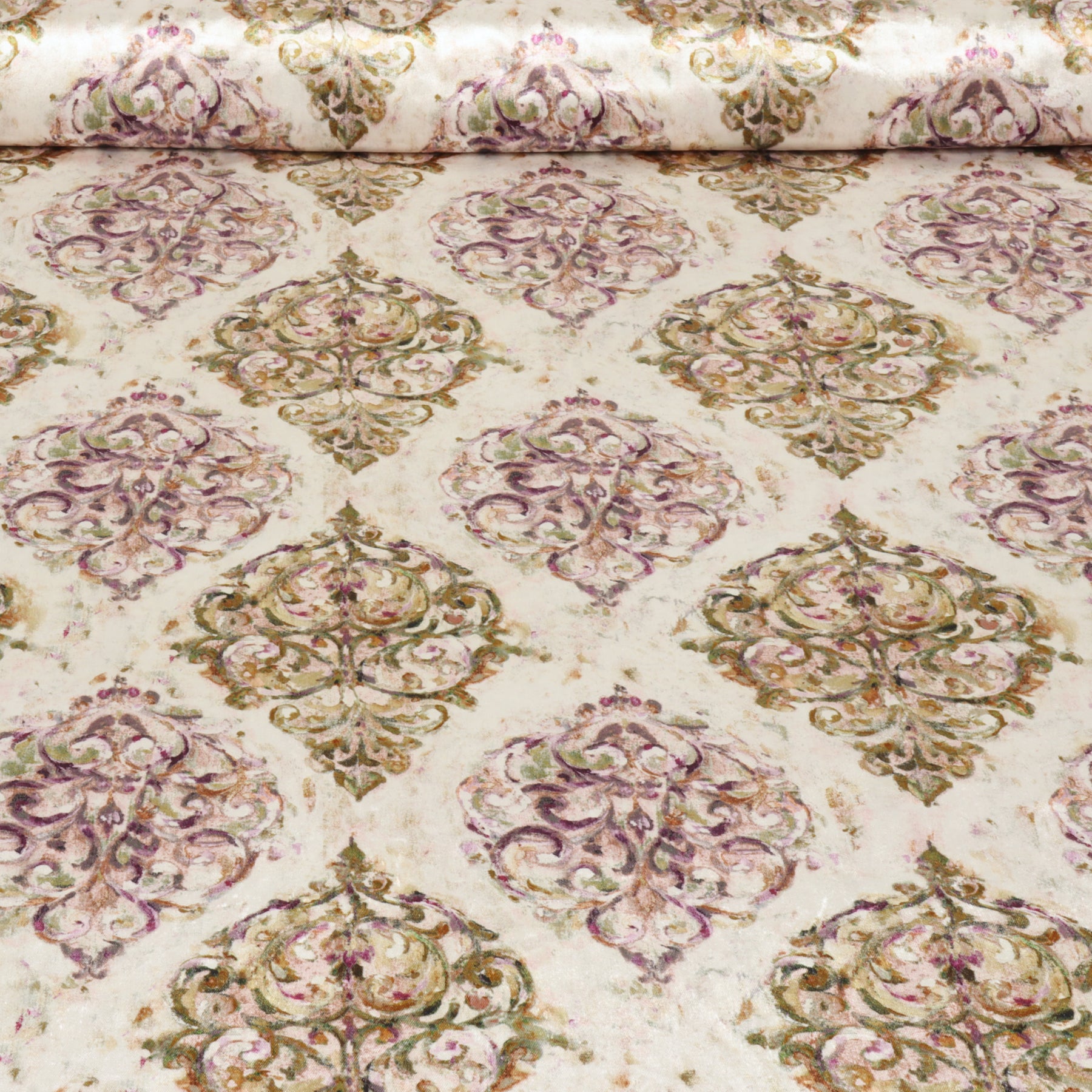 Honour from Beaumont Textiles features a vintage-inspired damask pattern with a beautifully distressed design. Its rich colour pallet and soft, velvety quality help enhance it's timeless, antique charm.