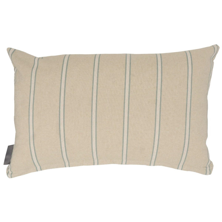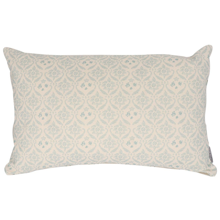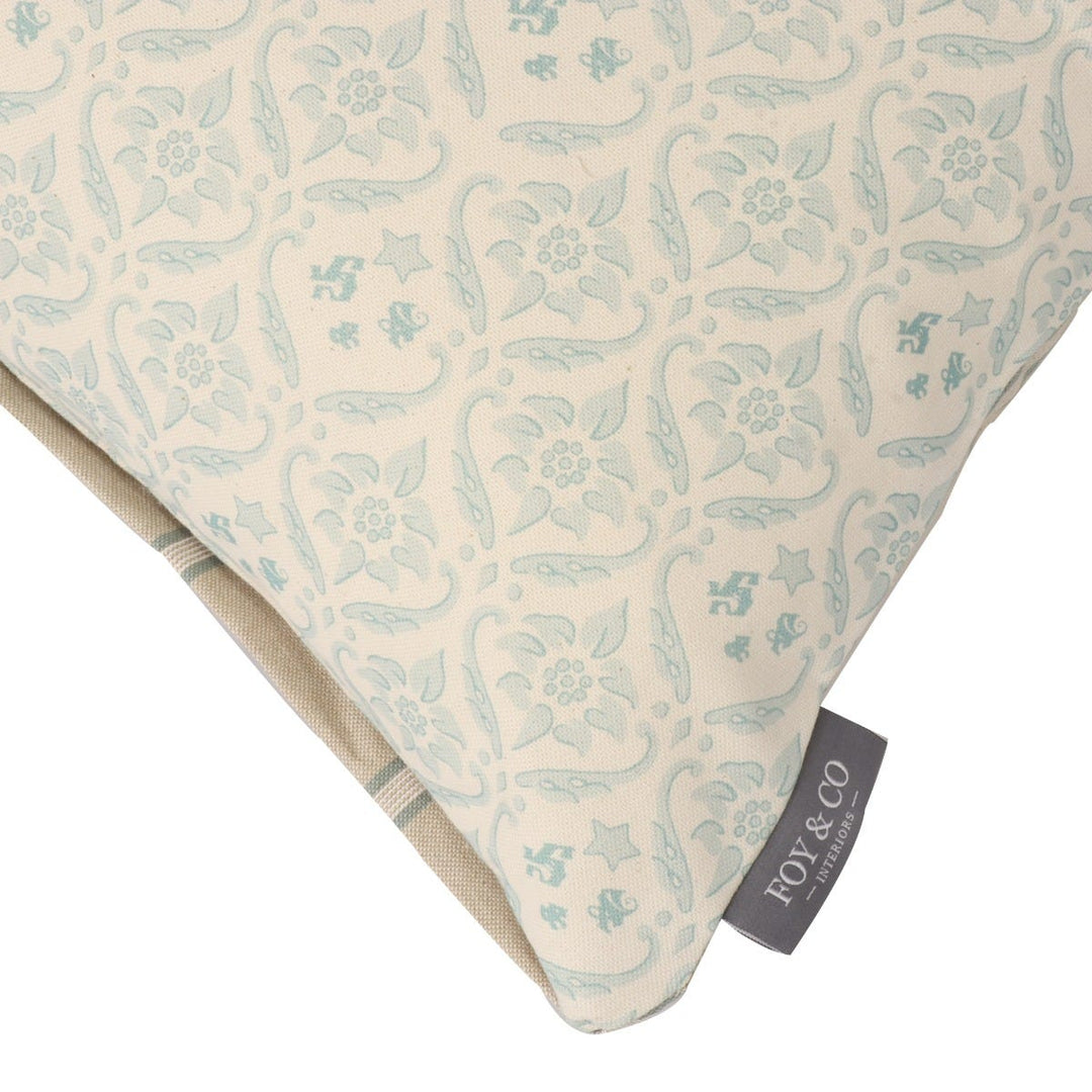 Handmade oblong cushion covers made by Foy & Co using our Howard Floral fabric with a duck egg stripe reverse.