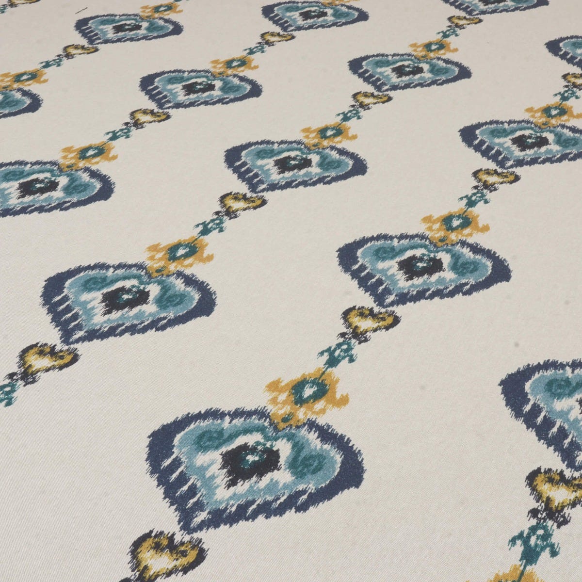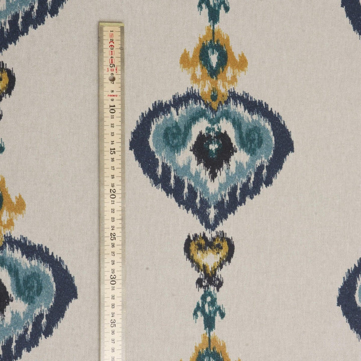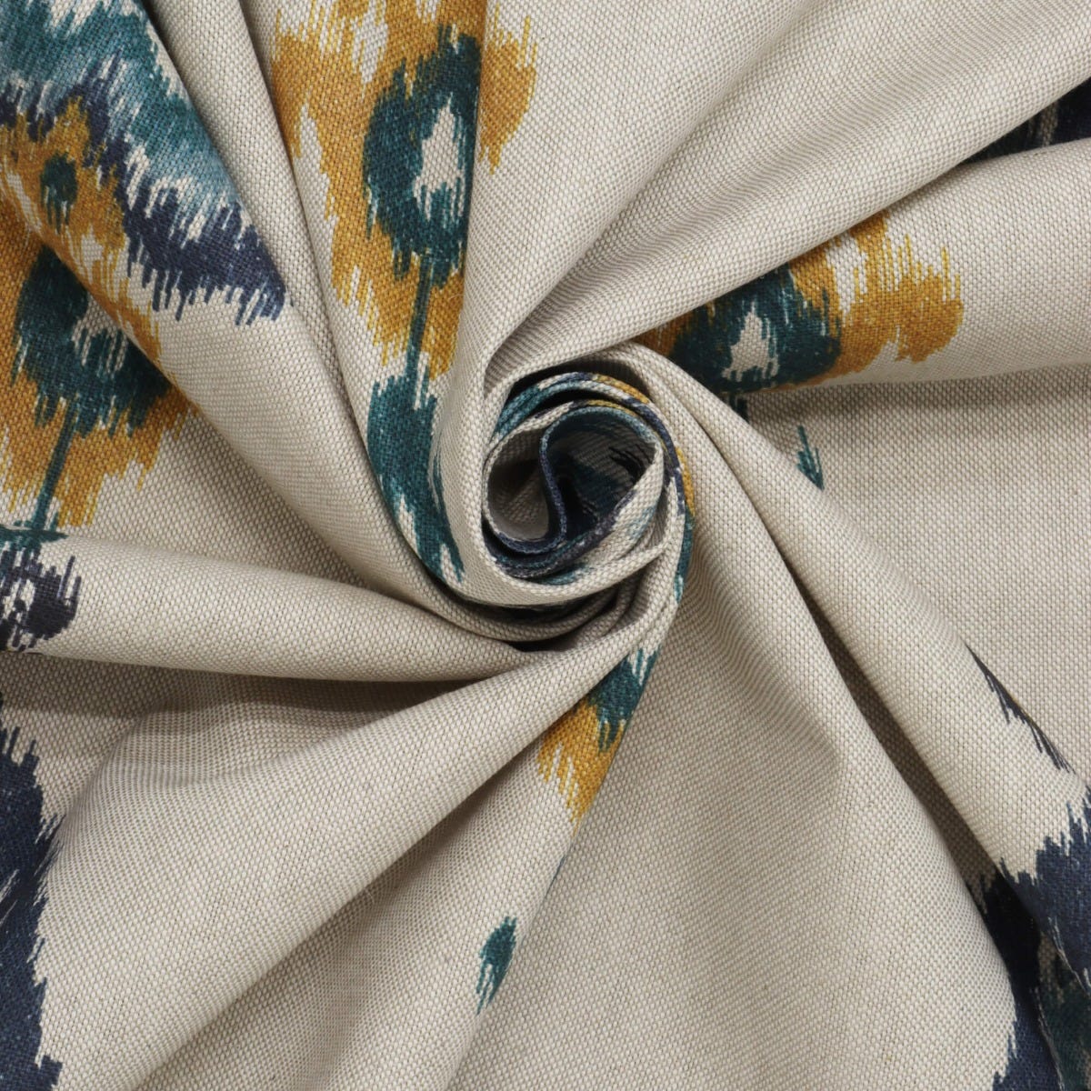 A contemporary ikat style design printed on a high quality cotton blend fabric. Kasbah Ikat fabric will bring a welcoming warmth to soft furnishings, curtains and blinds. Its large pattern repeat will look particularly impactful on decorative upholstery pieces such as sofas, chairs, footstools and headboards.