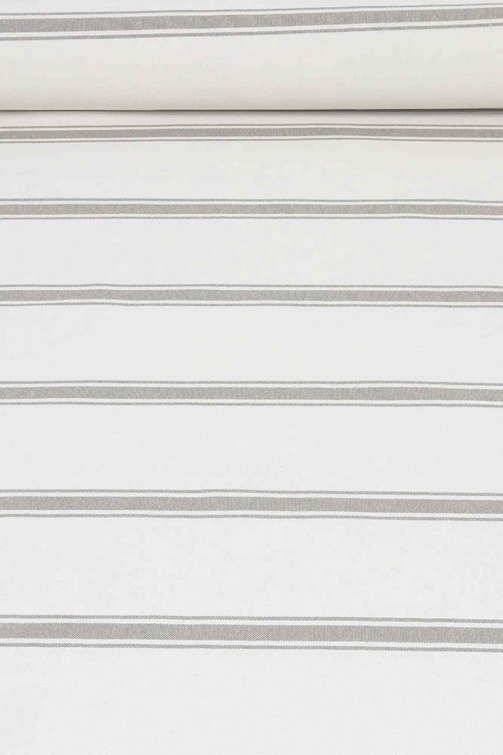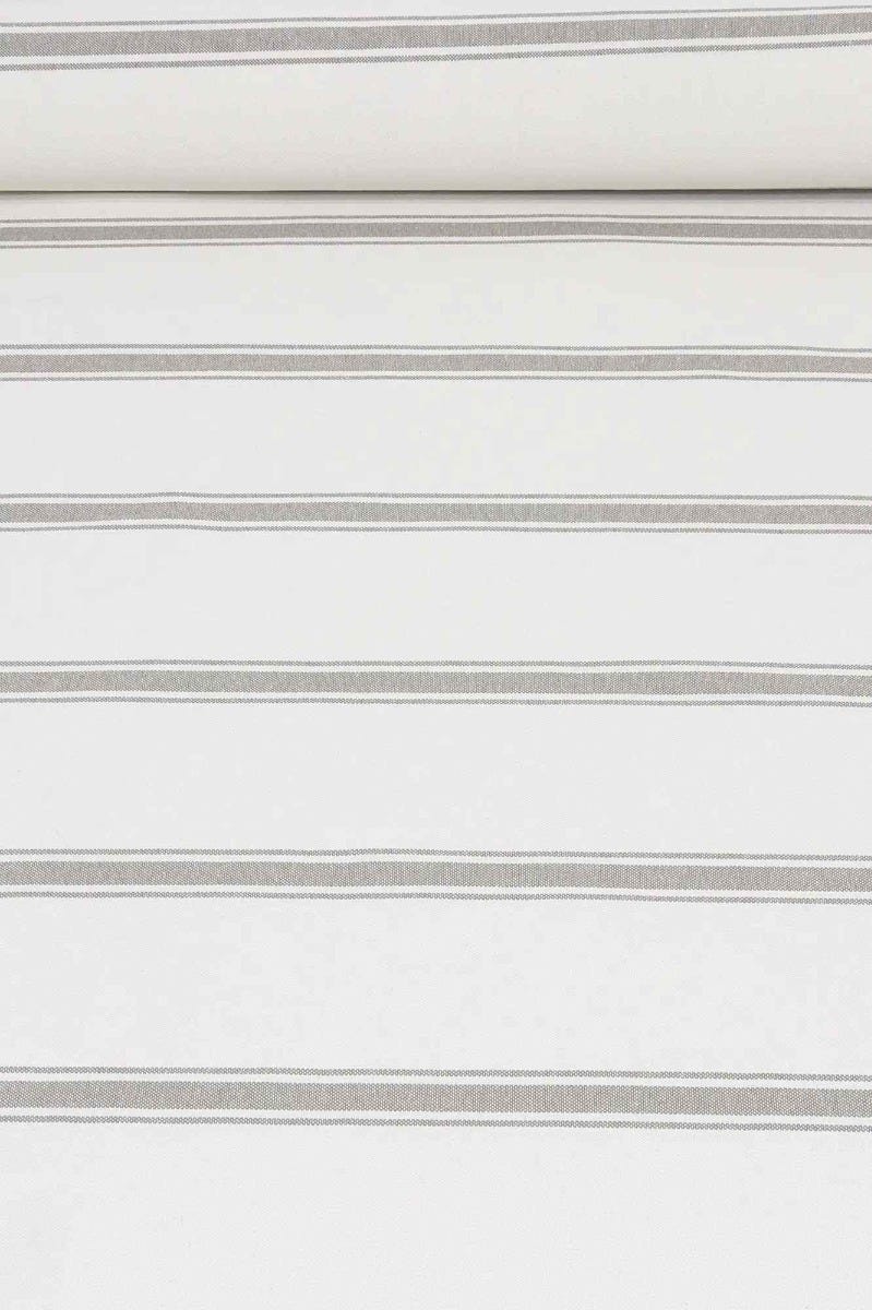 A classic ticking stripe woven on a charming French grain sack style fabric in white. Lyon is a lovely rustic style fabric and perfect for French country and farmhouse styling. A double width fabric at 280cm, suitable for use as curtains, blinds, soft furnishings, upholstery and crafts.