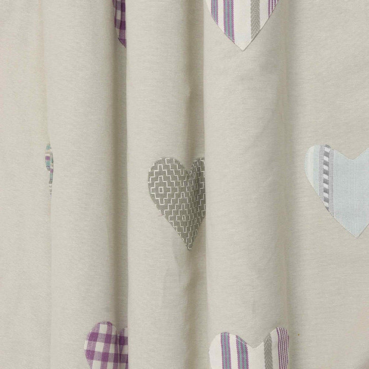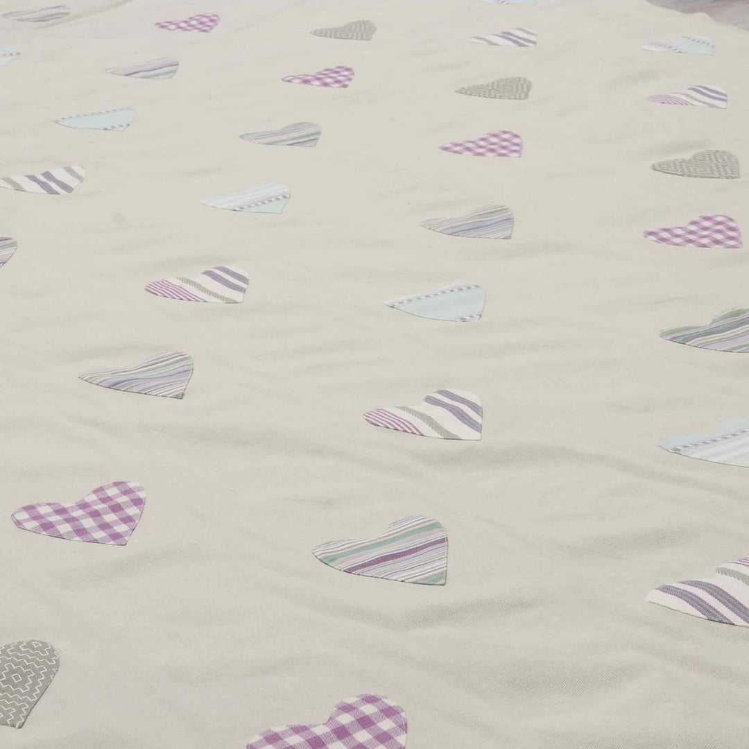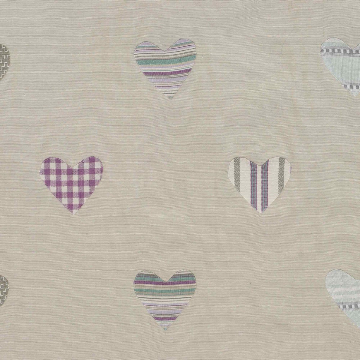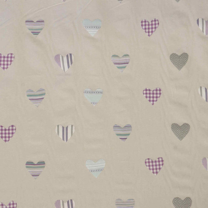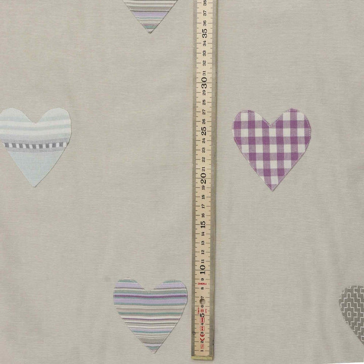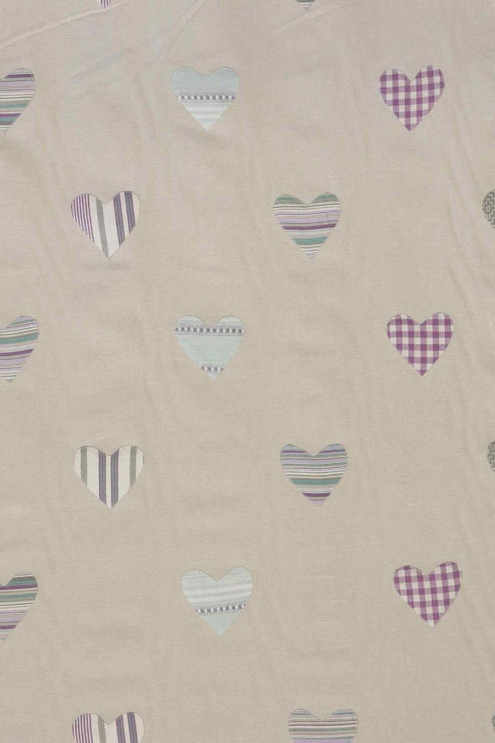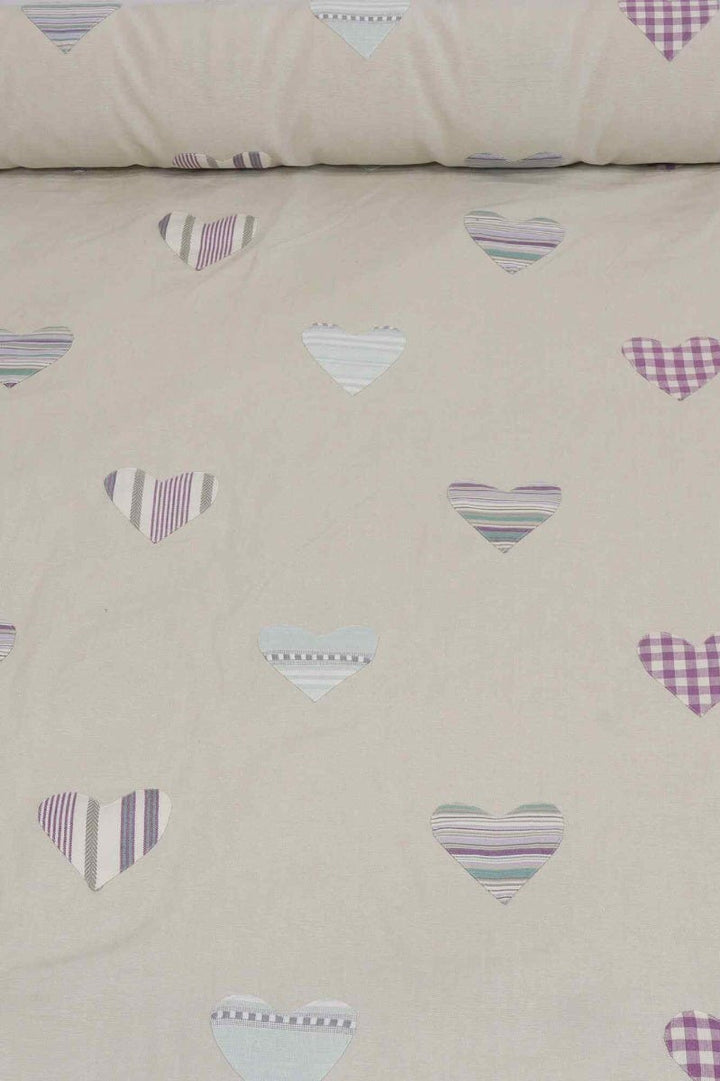 Corina is a charming fabric by Voyage Decoration featuring appliqued hearts in varying chintzy patterns on a linen coloured 100% base cloth.
