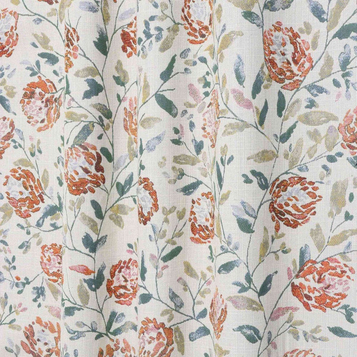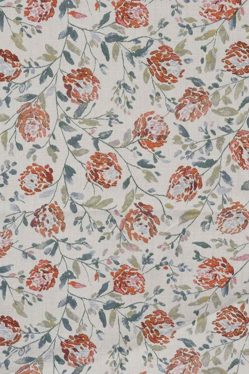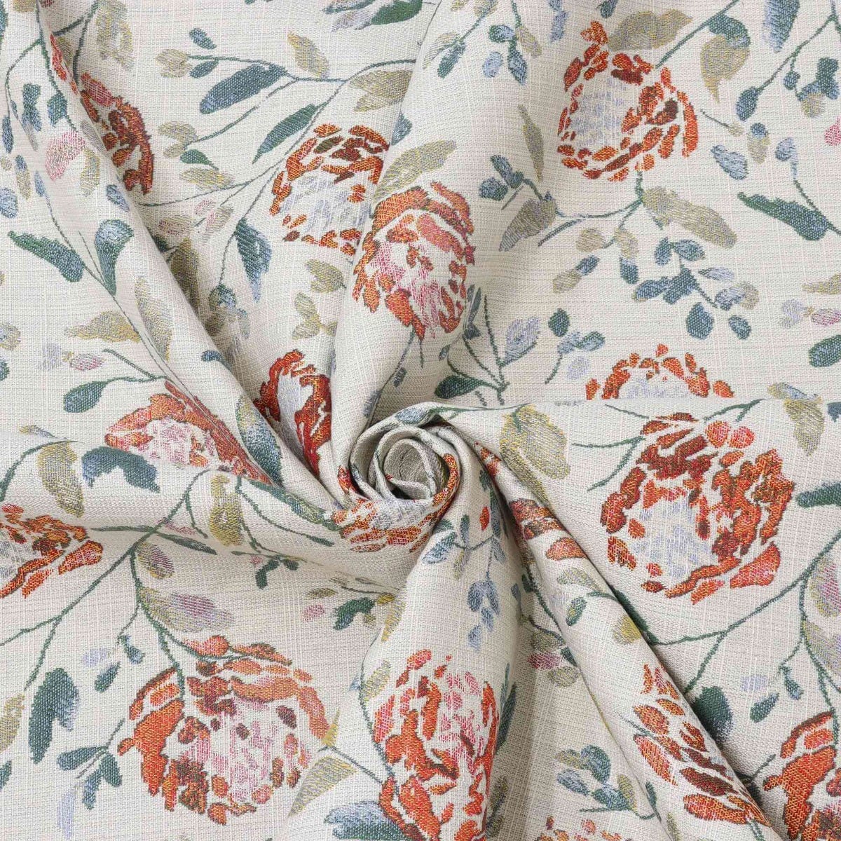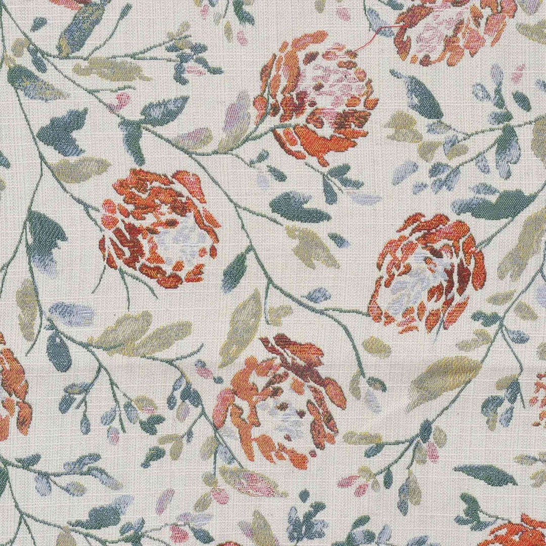 Hidcote fabric is made by Voyage Decoration and features a woven floral pattern in warm colours.