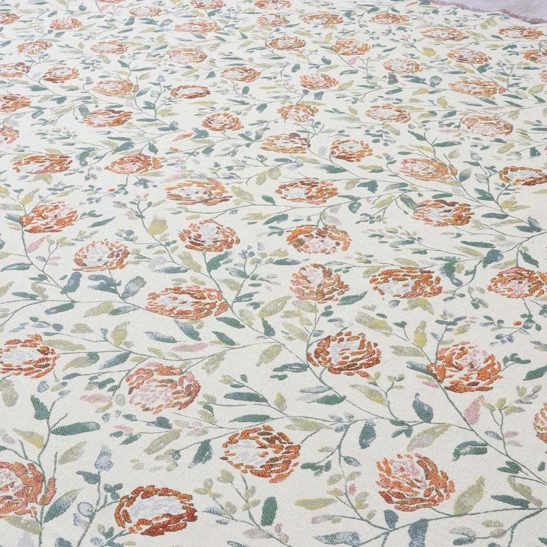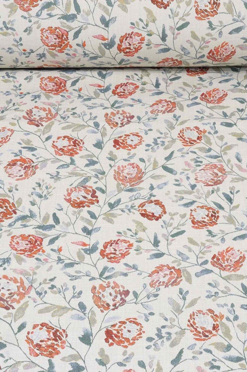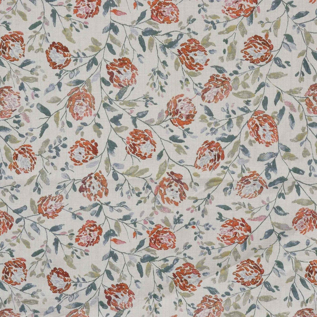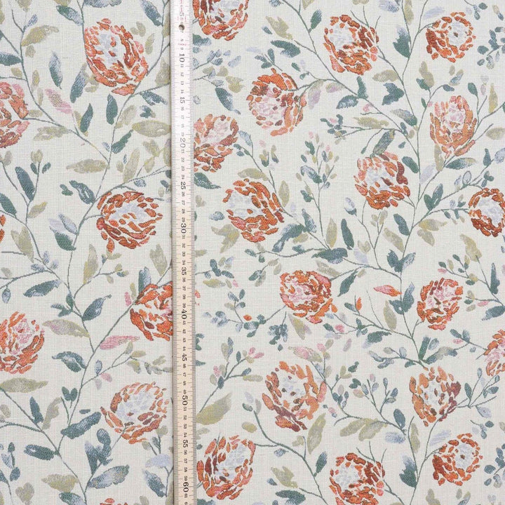 Hidcote fabric is made by Voyage Decoration and features a woven floral pattern in warm colours.