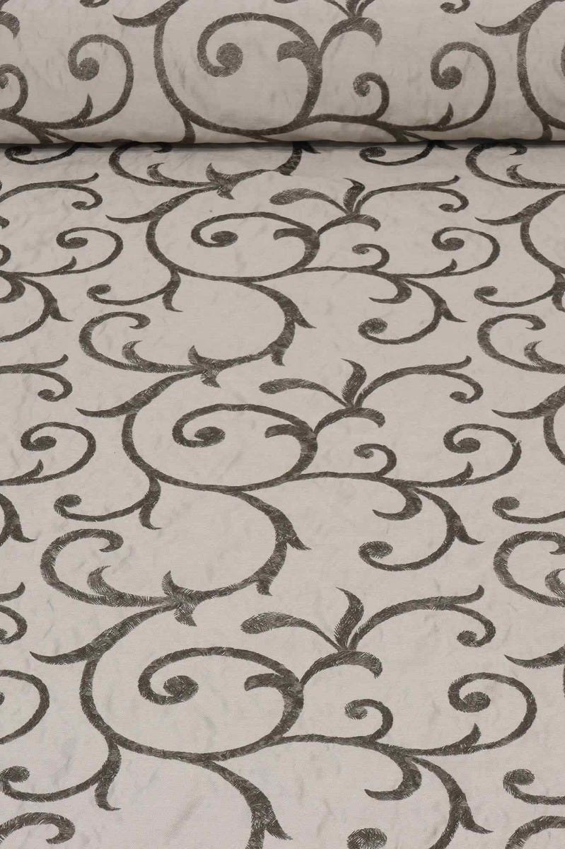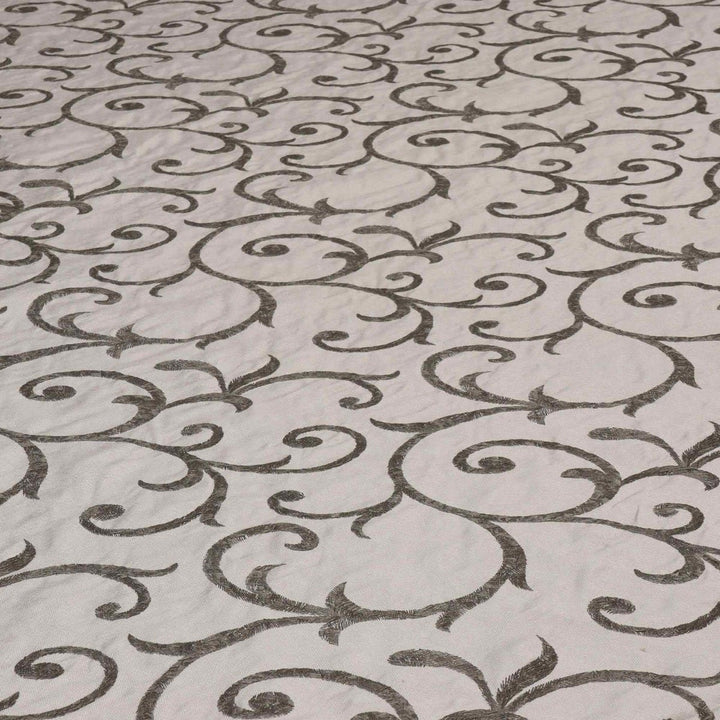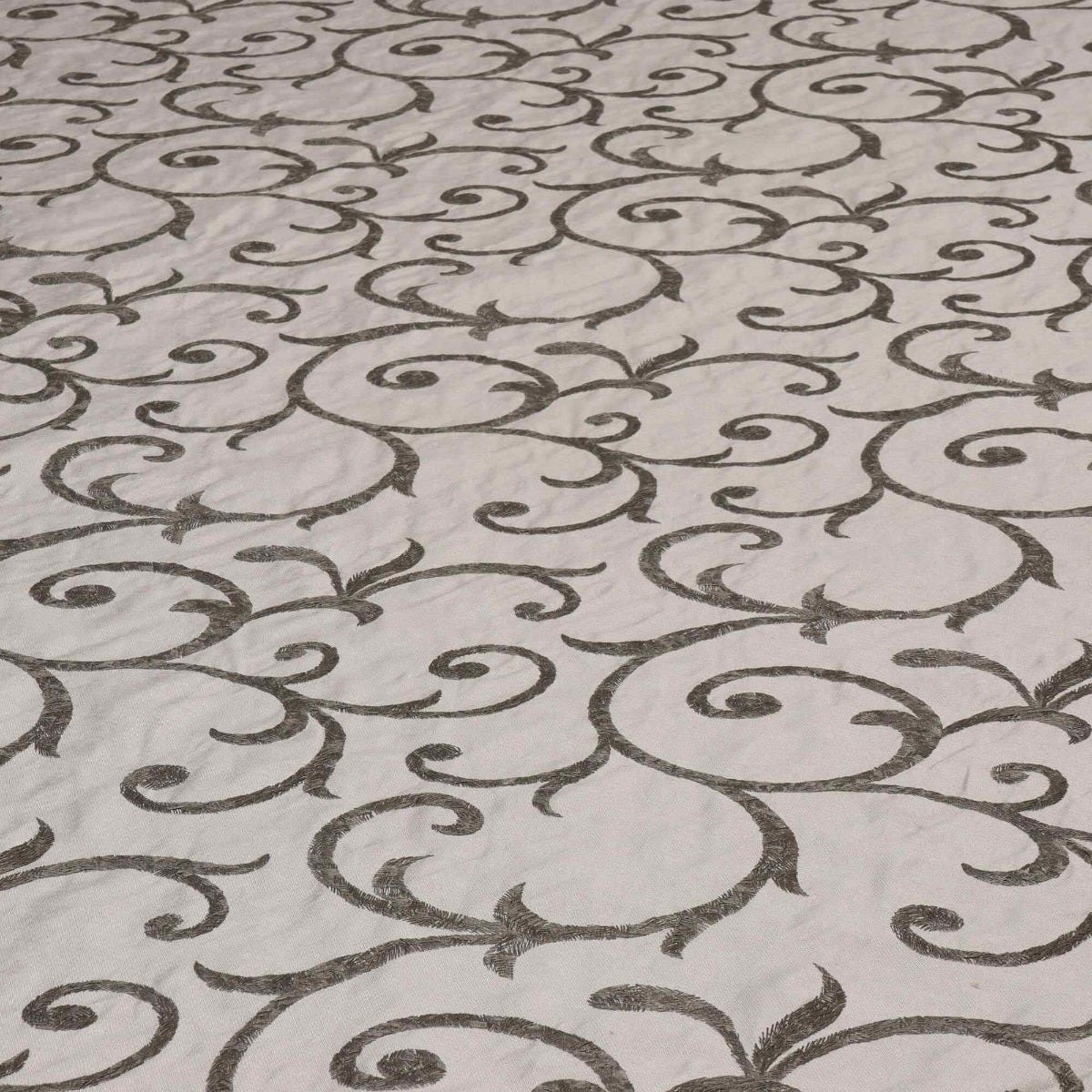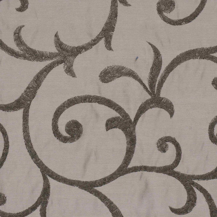 A lovely embroidered fabric by Voyage Maison with beige and a deeper brown scroll embroidered design, adding a subtle touch of elegance to any interior.
