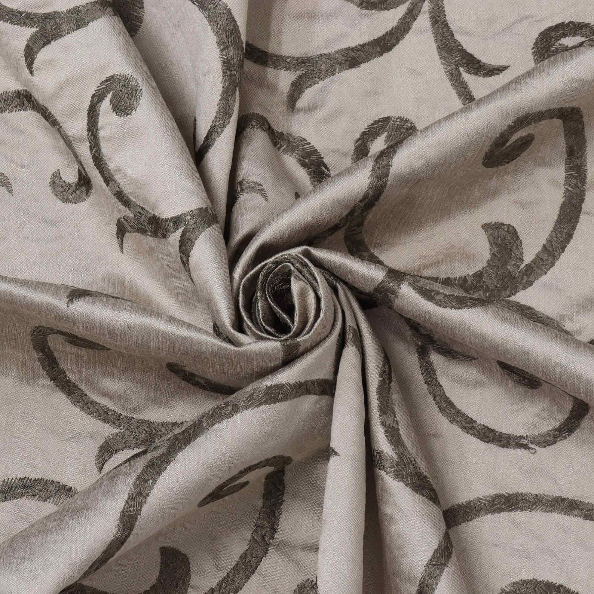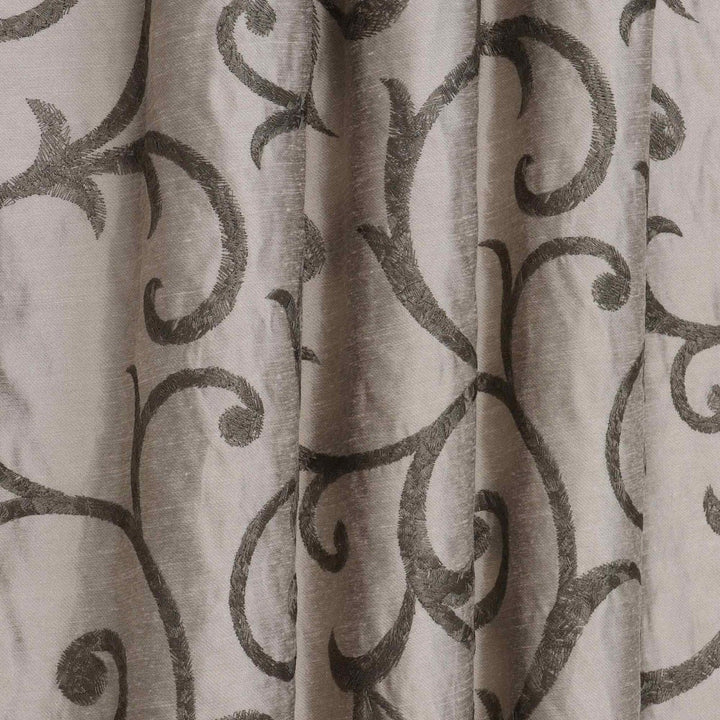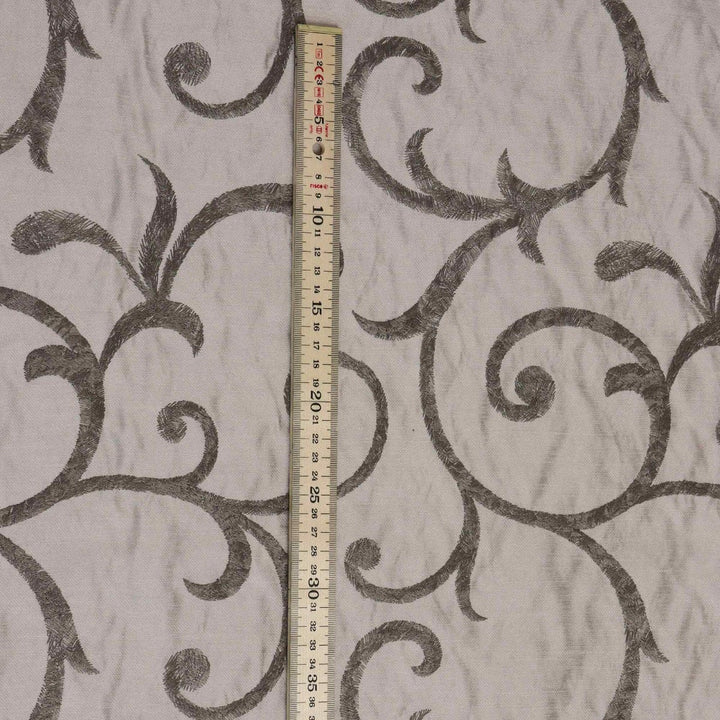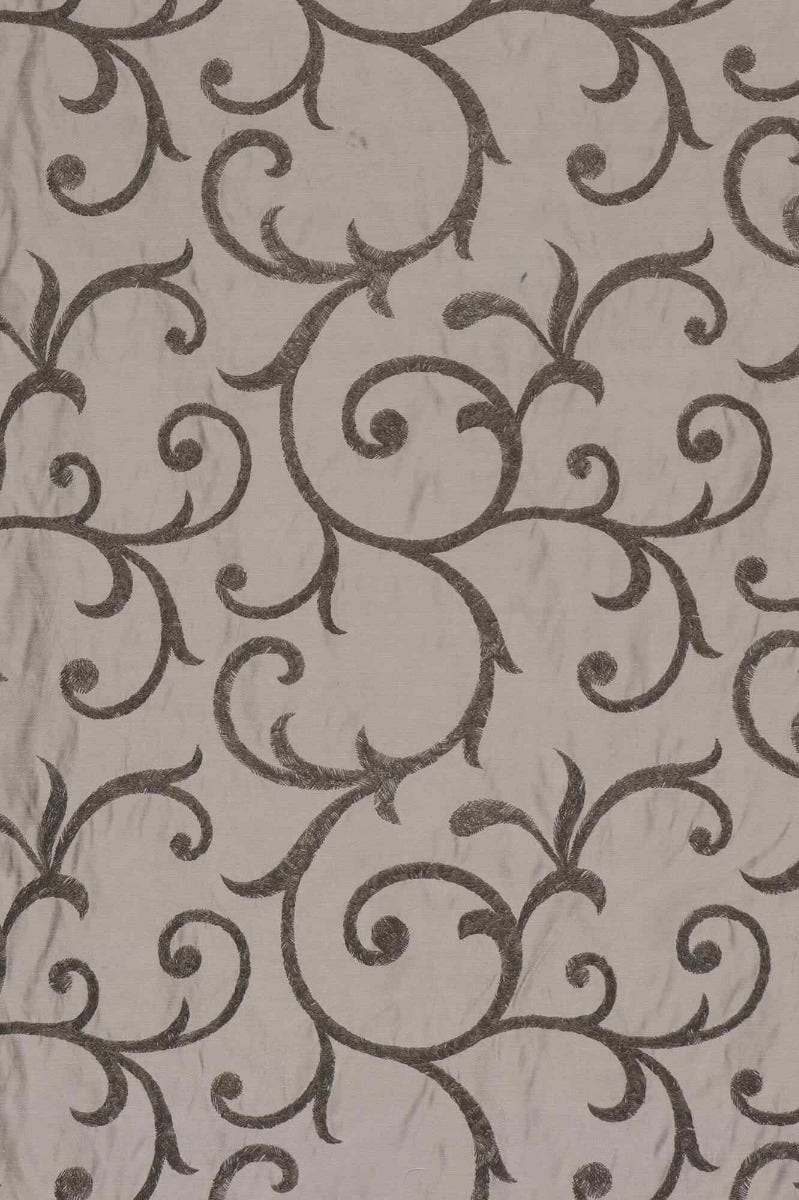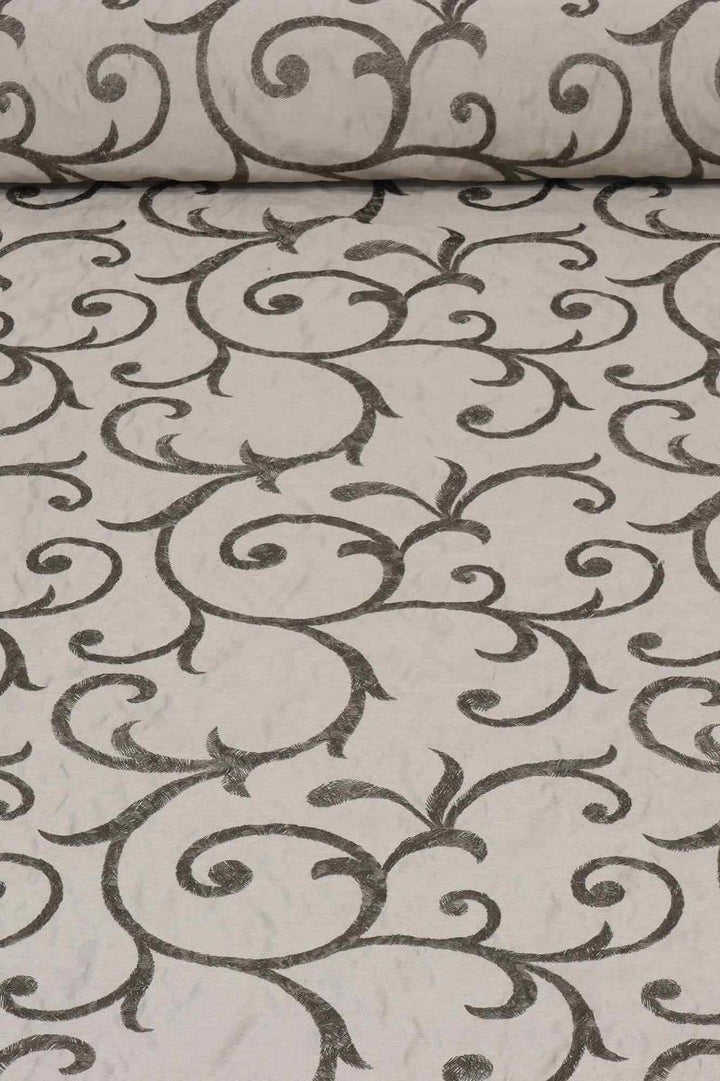 A lovely embroidered fabric by Voyage Maison with beige and a deeper brown scroll embroidered design, adding a subtle touch of elegance to any interior.