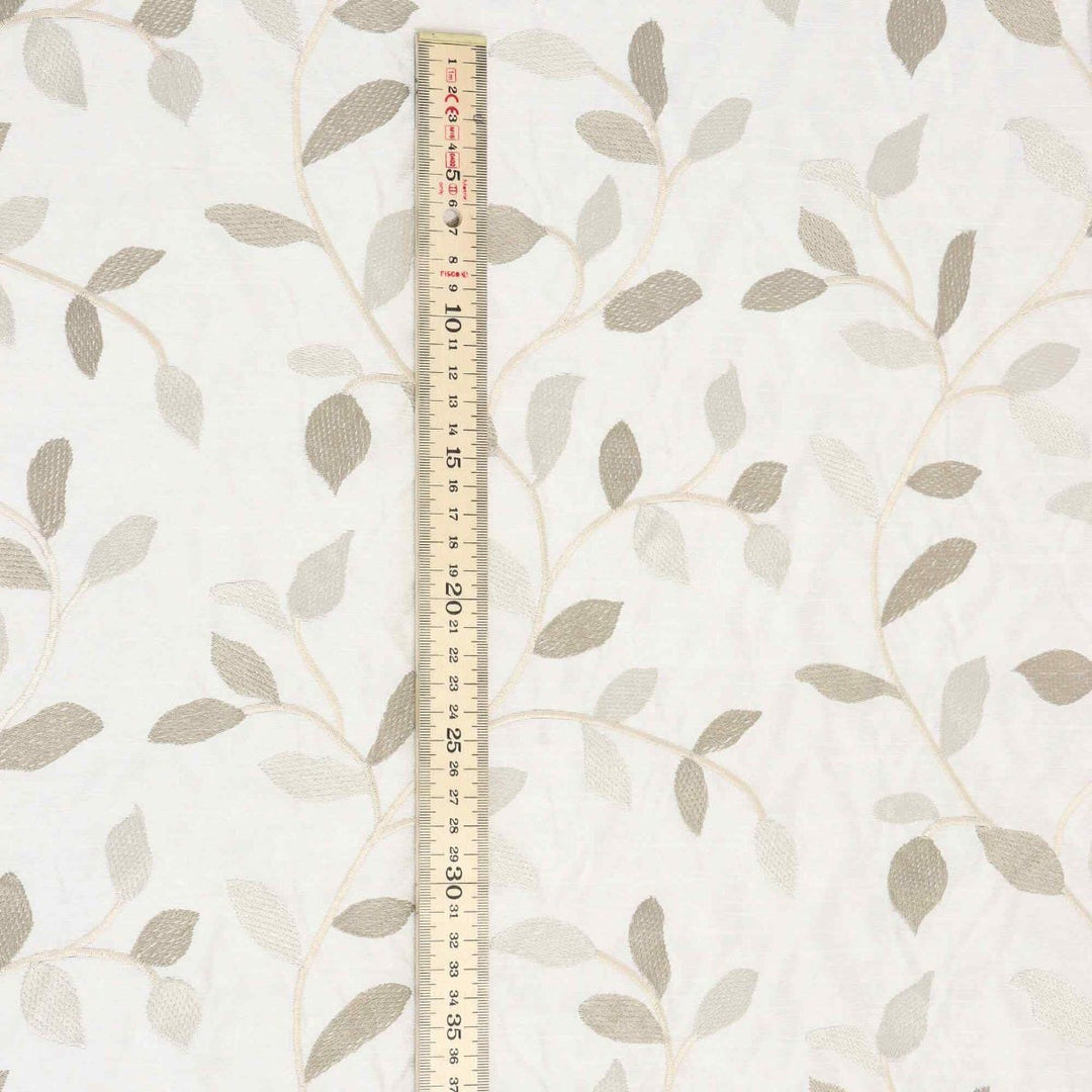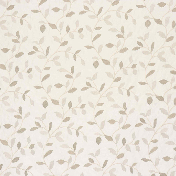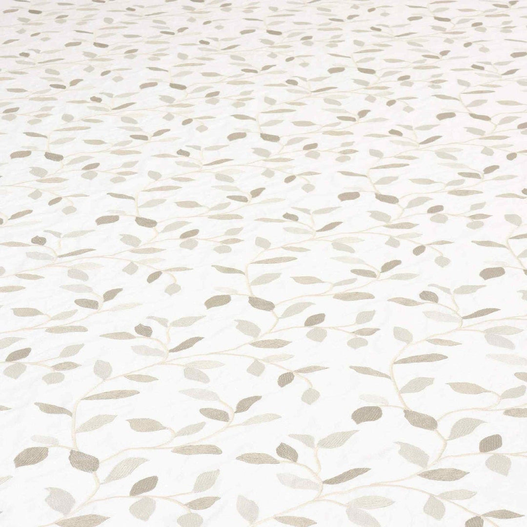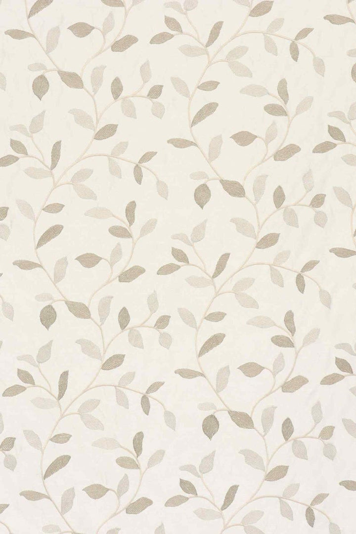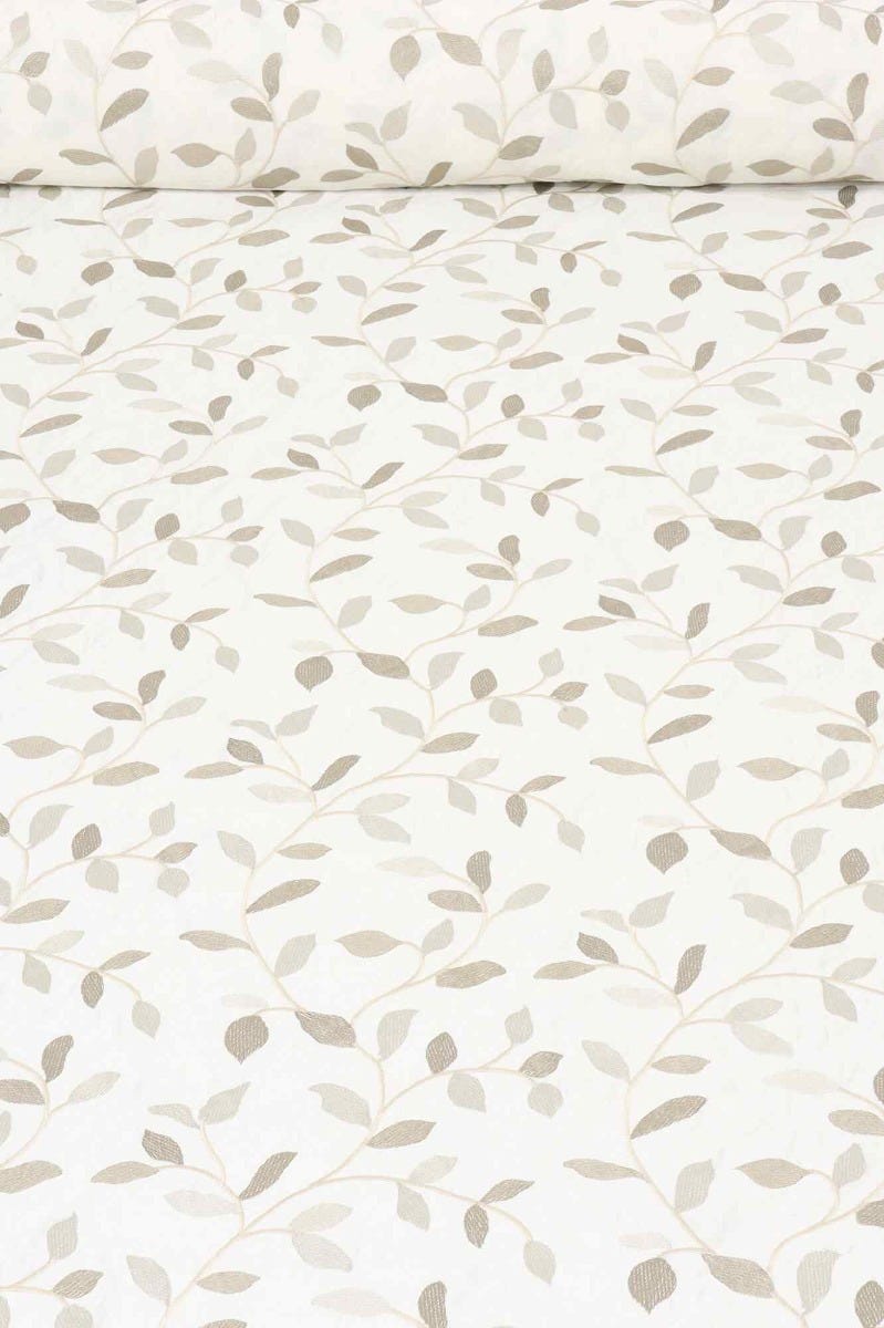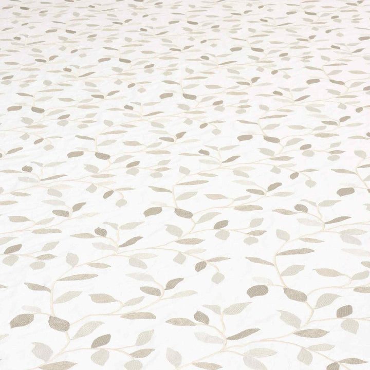 Linden fabric from Voyage Maison features a pattern of trailing leaves embroidered in off white and gold on a elegant off white background. A wonderful fabric suitable for curtains, blinds, cushions and soft furnishings.