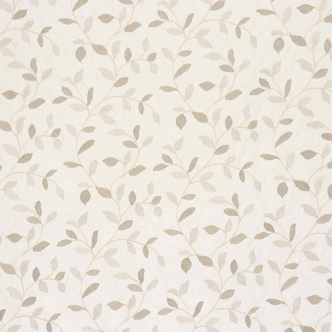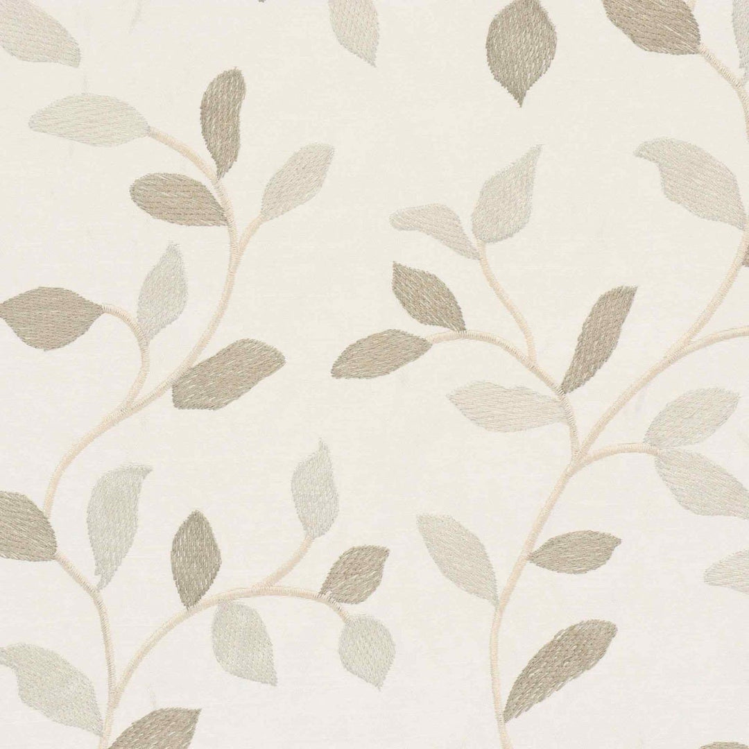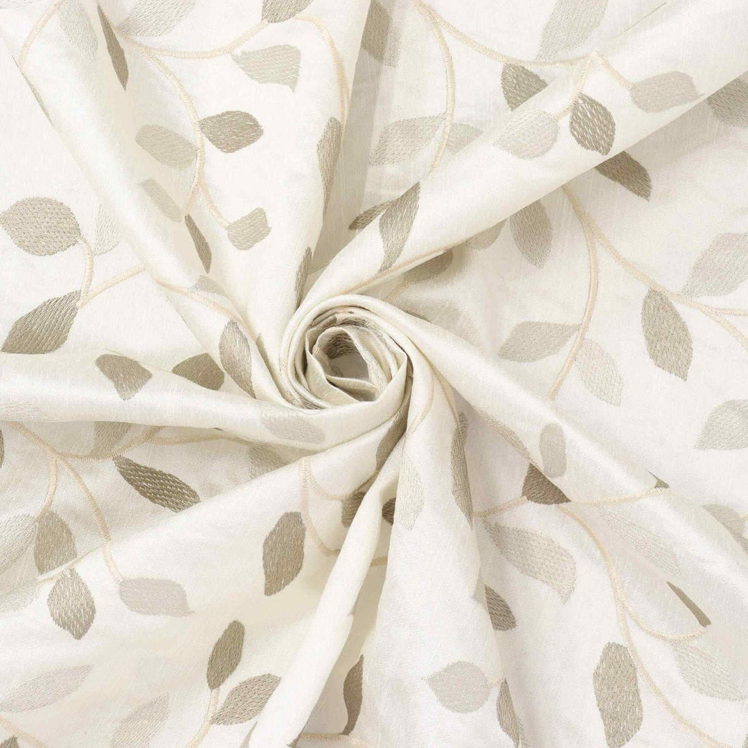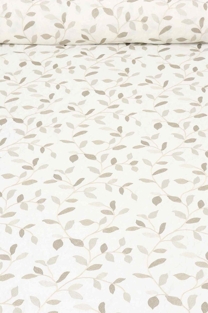 Linden fabric from Voyage Maison features a pattern of trailing leaves embroidered in off white and gold on a elegant off white background. A wonderful fabric suitable for curtains, blinds, cushions and soft furnishings.