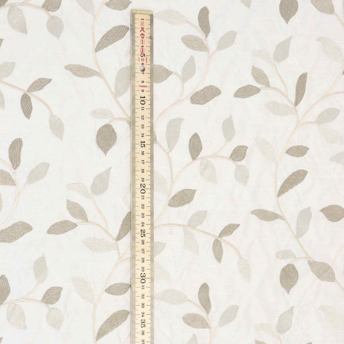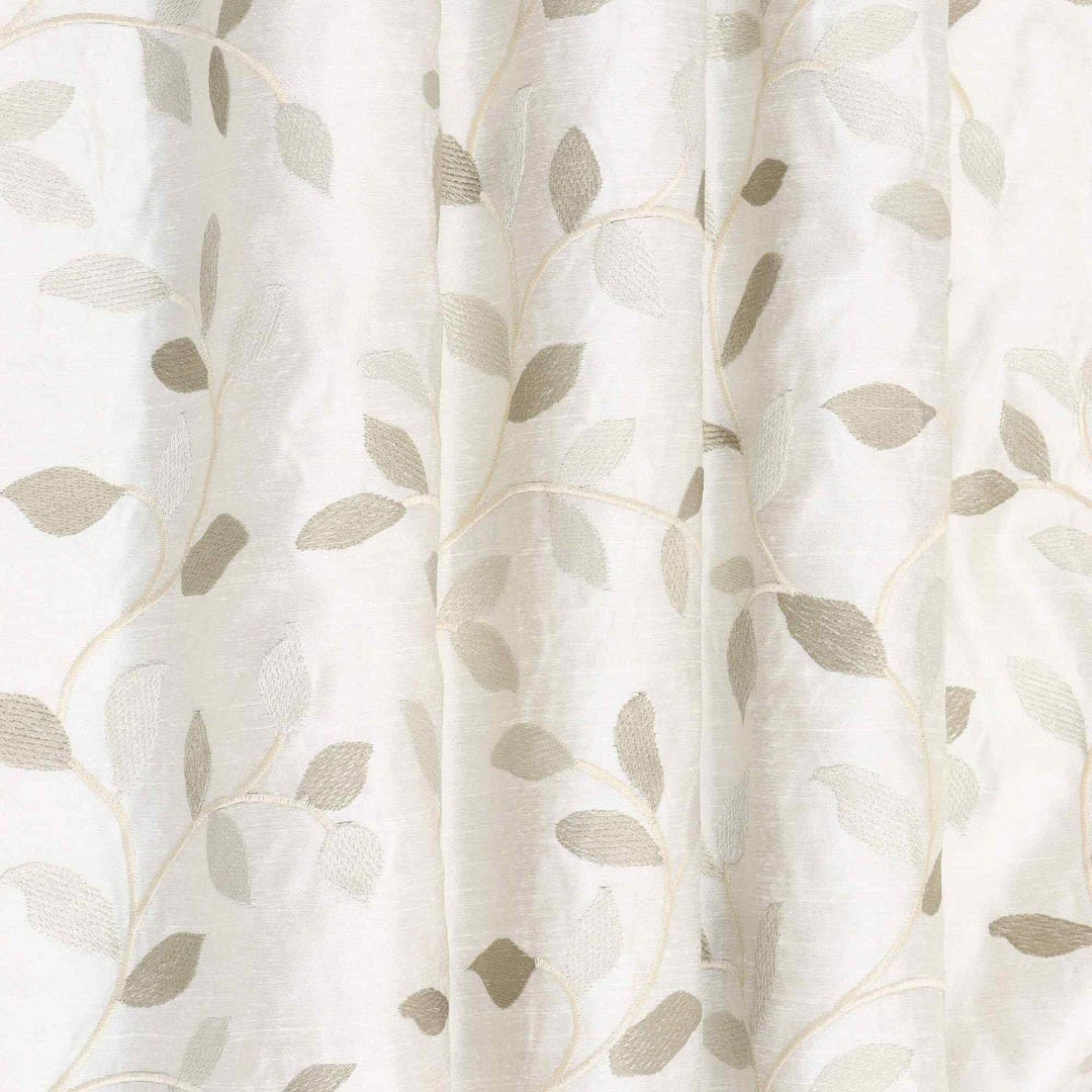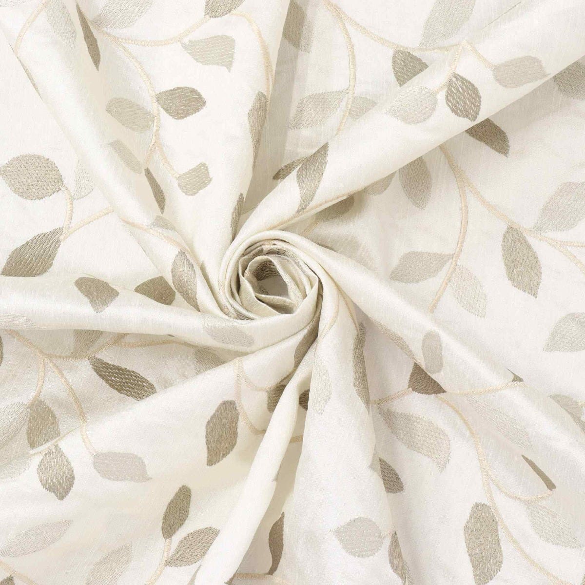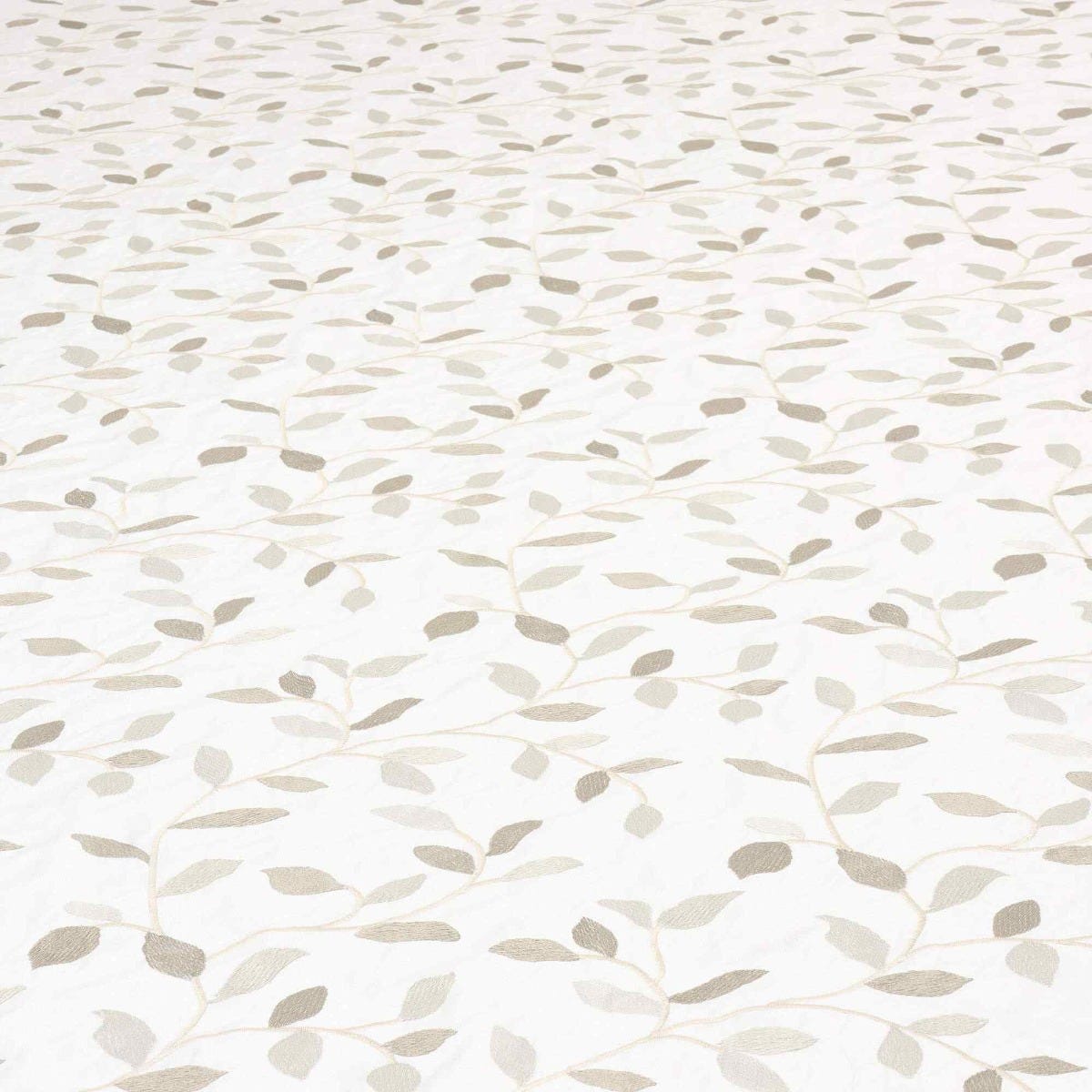 Linden fabric from Voyage Maison features a pattern of trailing leaves embroidered in off white and gold on a elegant off white background. A wonderful fabric suitable for curtains, blinds, cushions and soft furnishings.