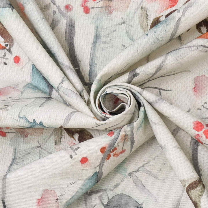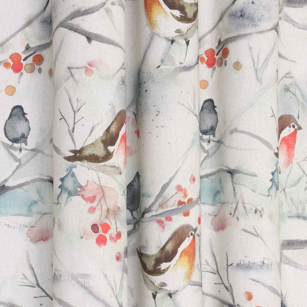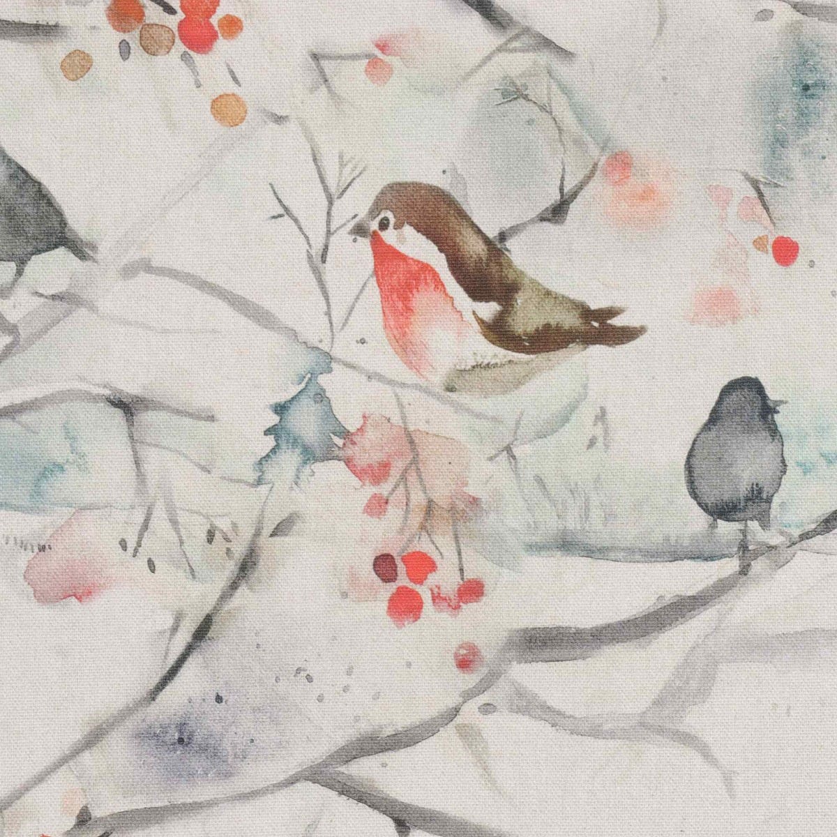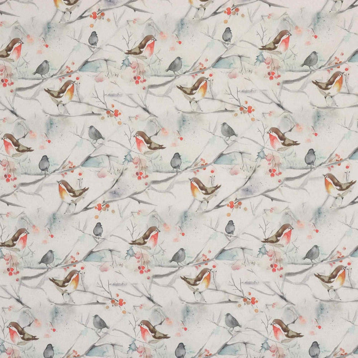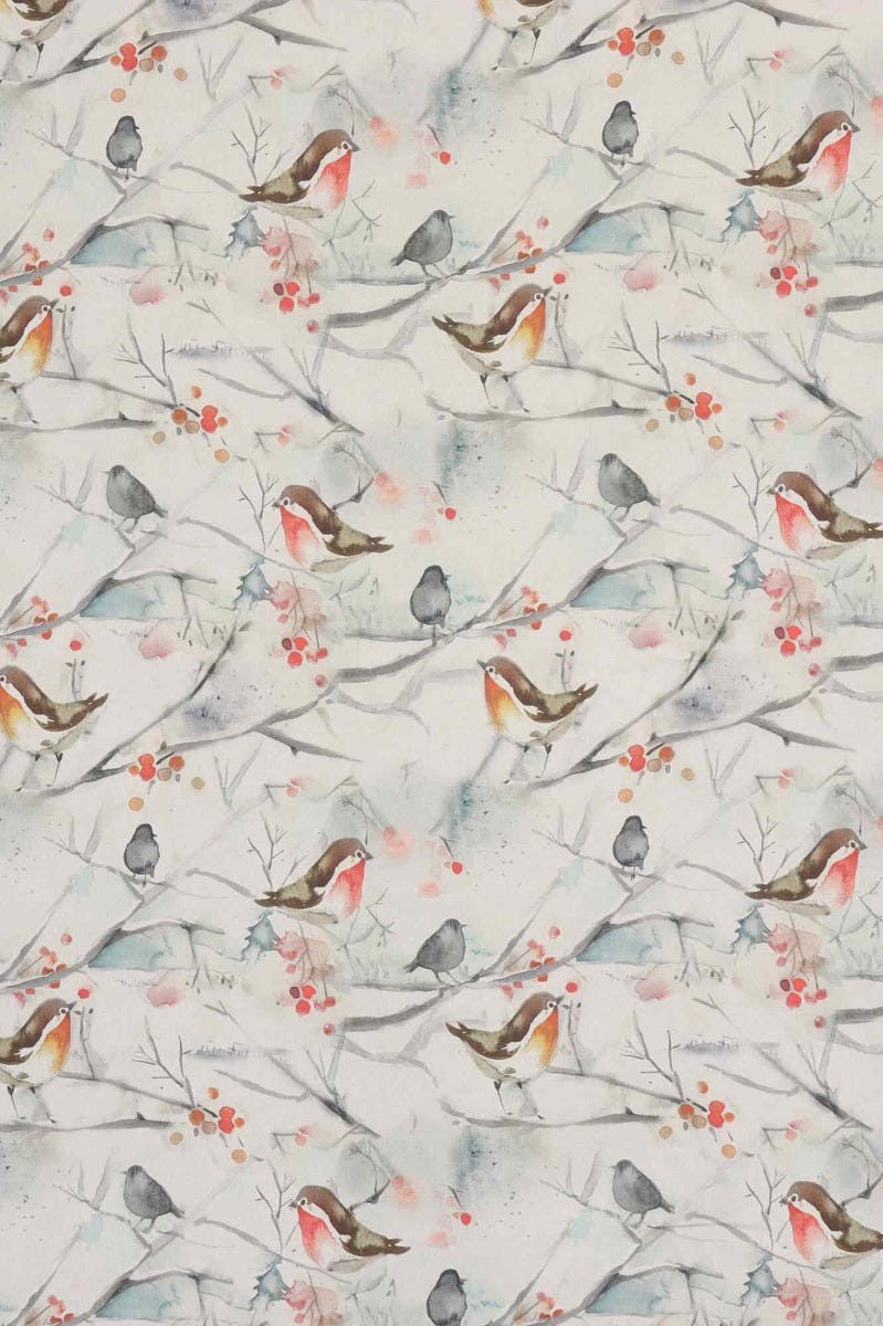 This winter inspired Voyage design features robins singing in a gorgeous white/ecru snowy scene. Printed on a luxurious 100% cotton fabric.